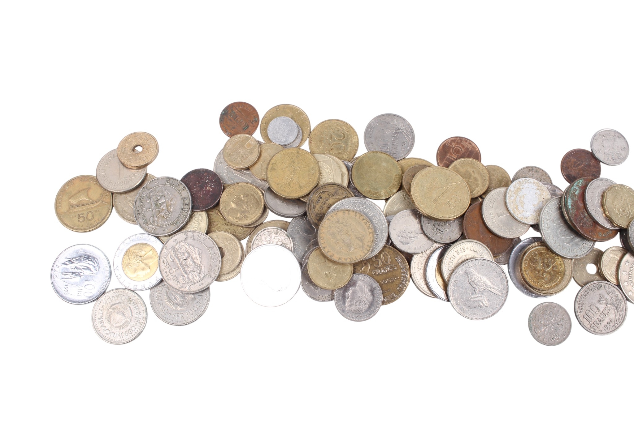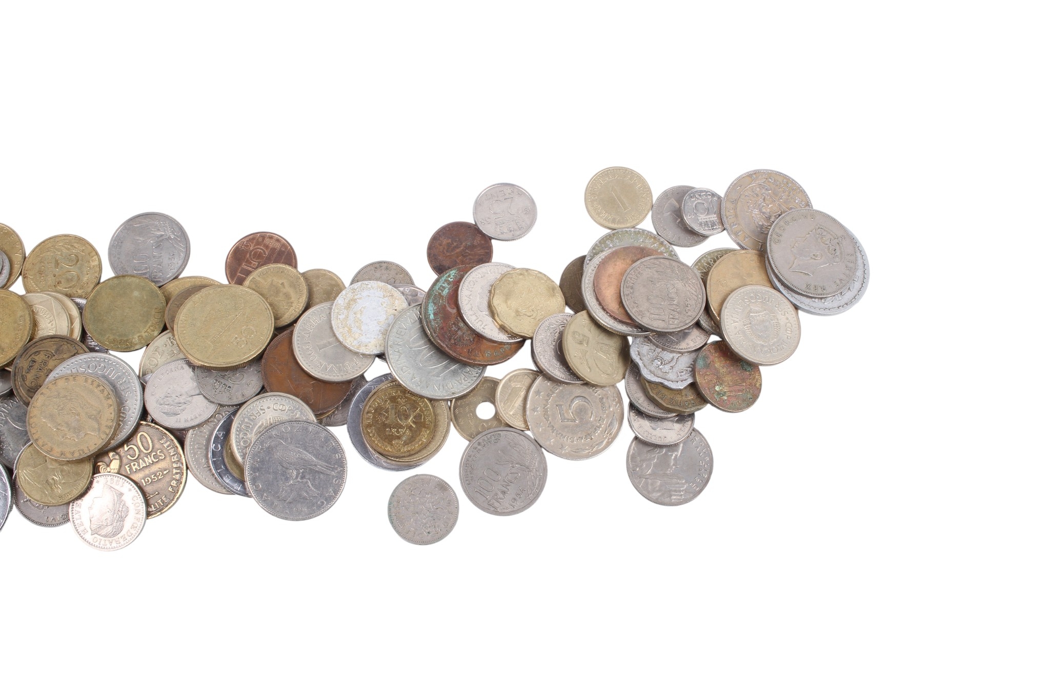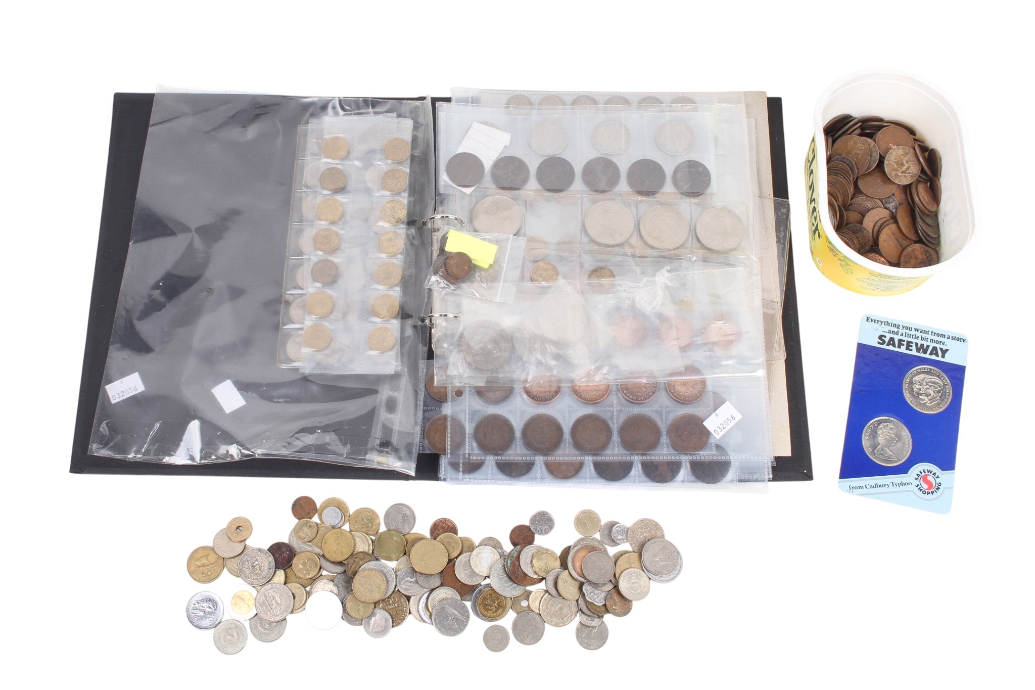 A large collection of assorted world coins and banknotes. Including lots of pre-decimal coins and £1 notes