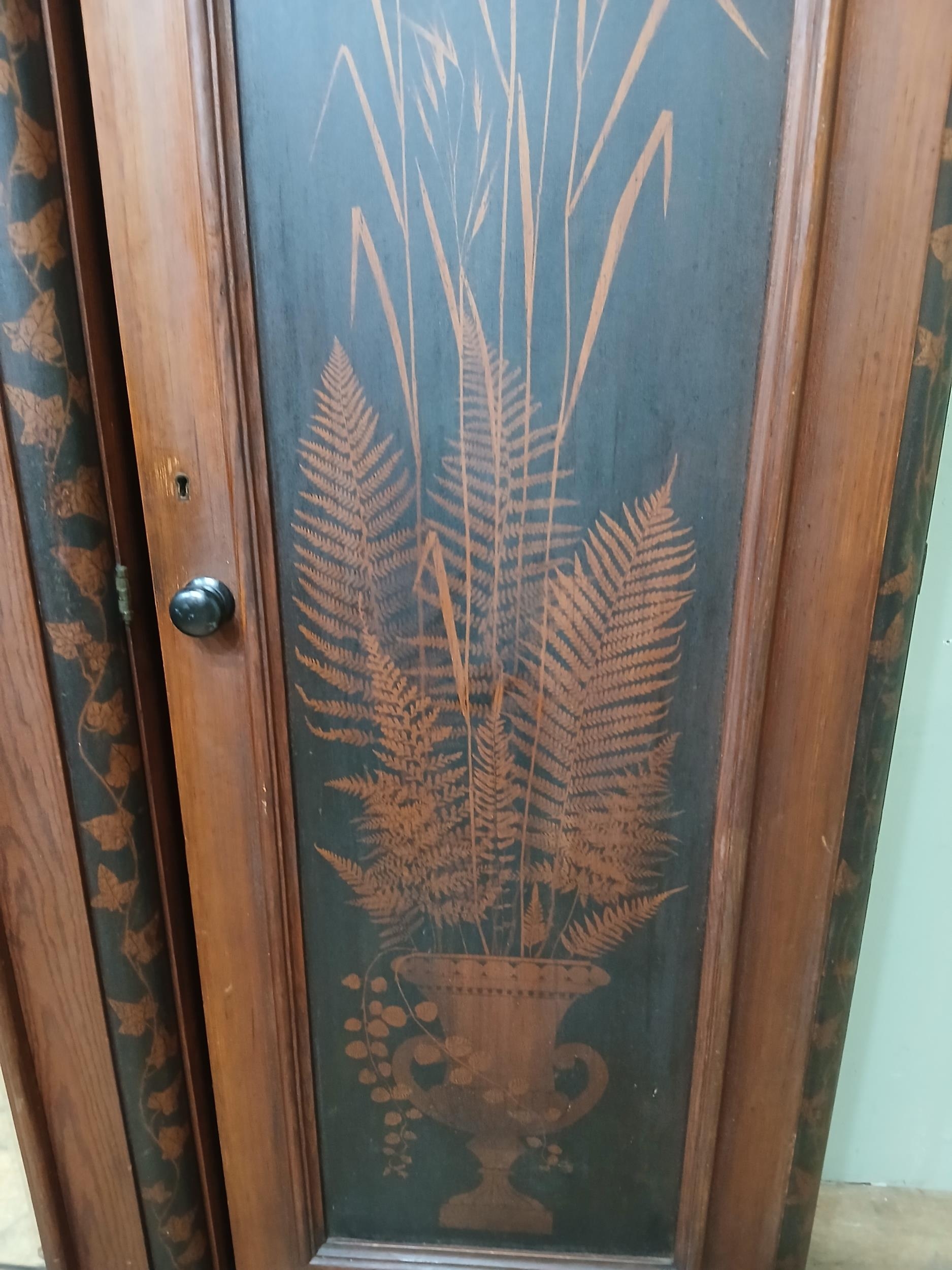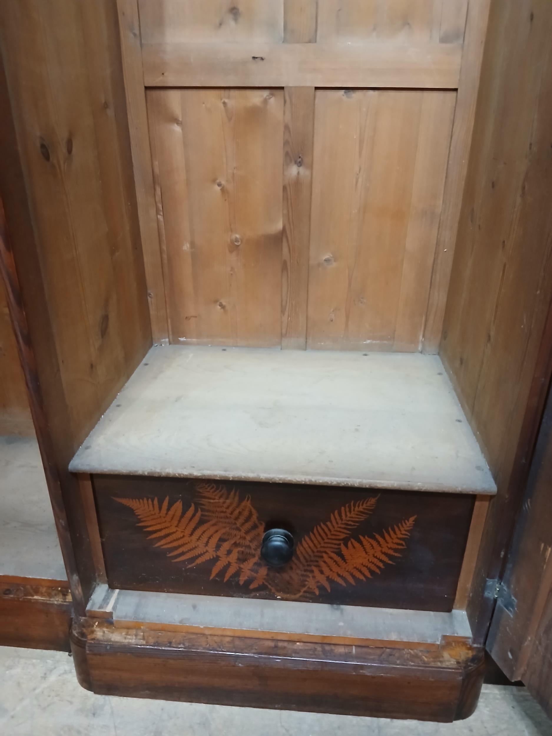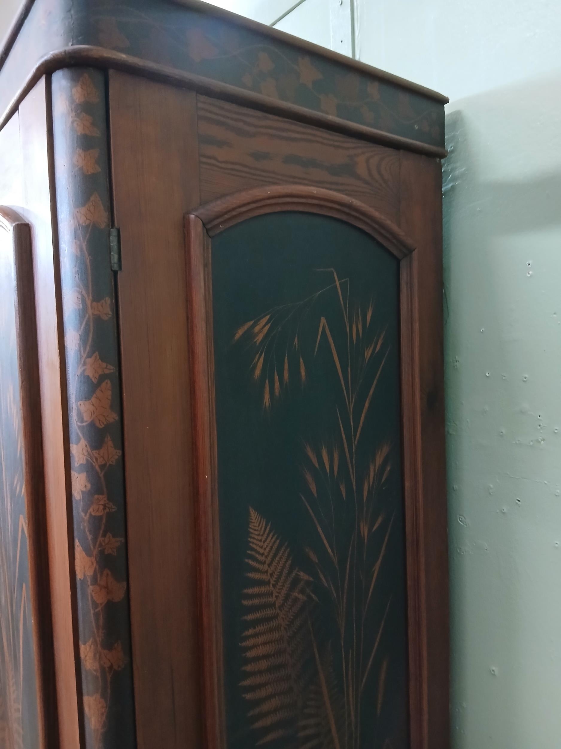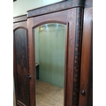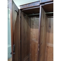 Irish George III style triple fern ware wardrobe flanked by two doors with internal brass clothes rail central panel with dome toppped mirror and drawer to base. {H 205cm x W 187cm x D 61cm }. NOT AVAILABLE TO VIEW IN PERSON.
