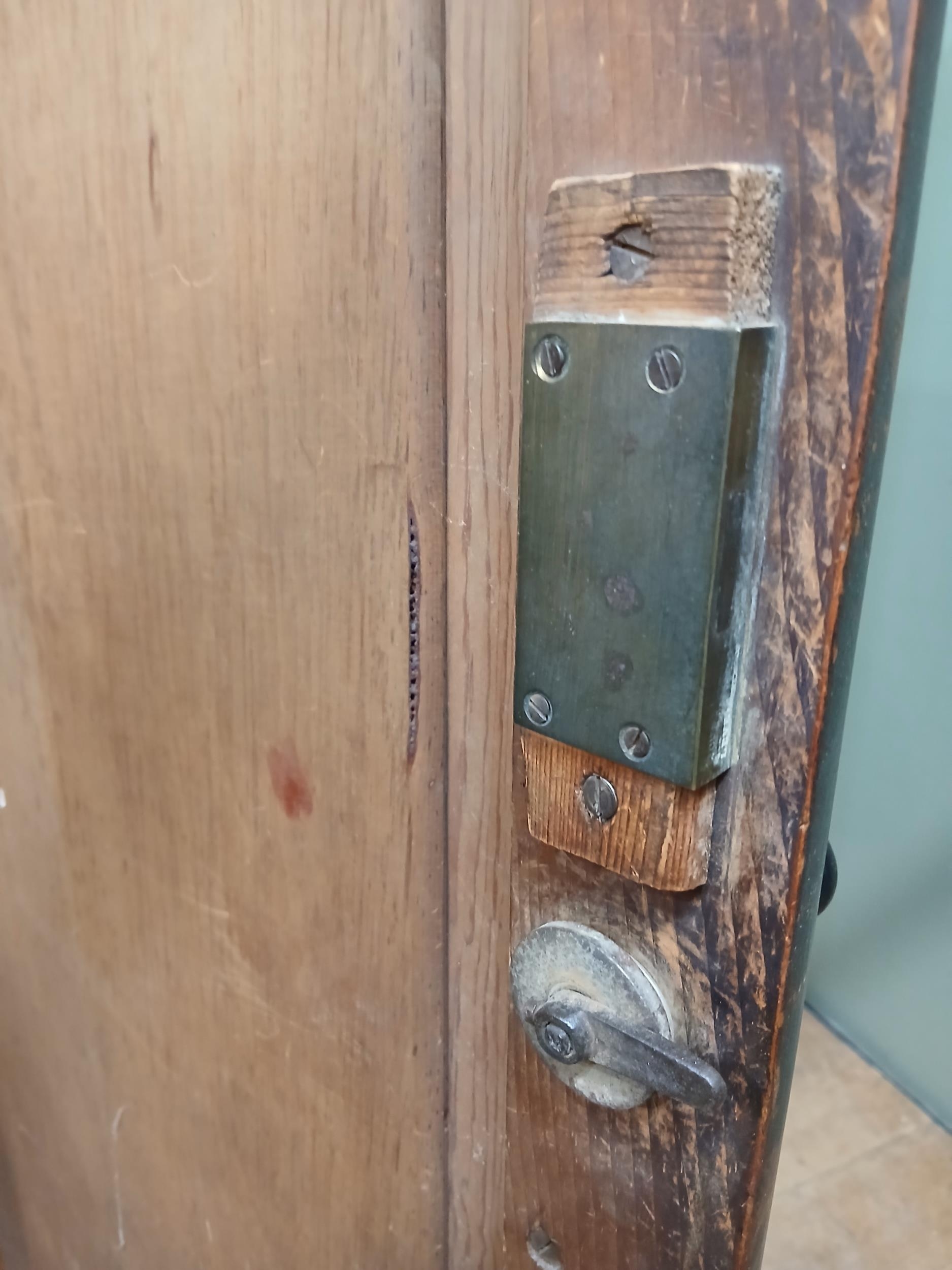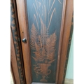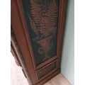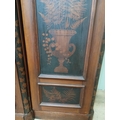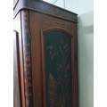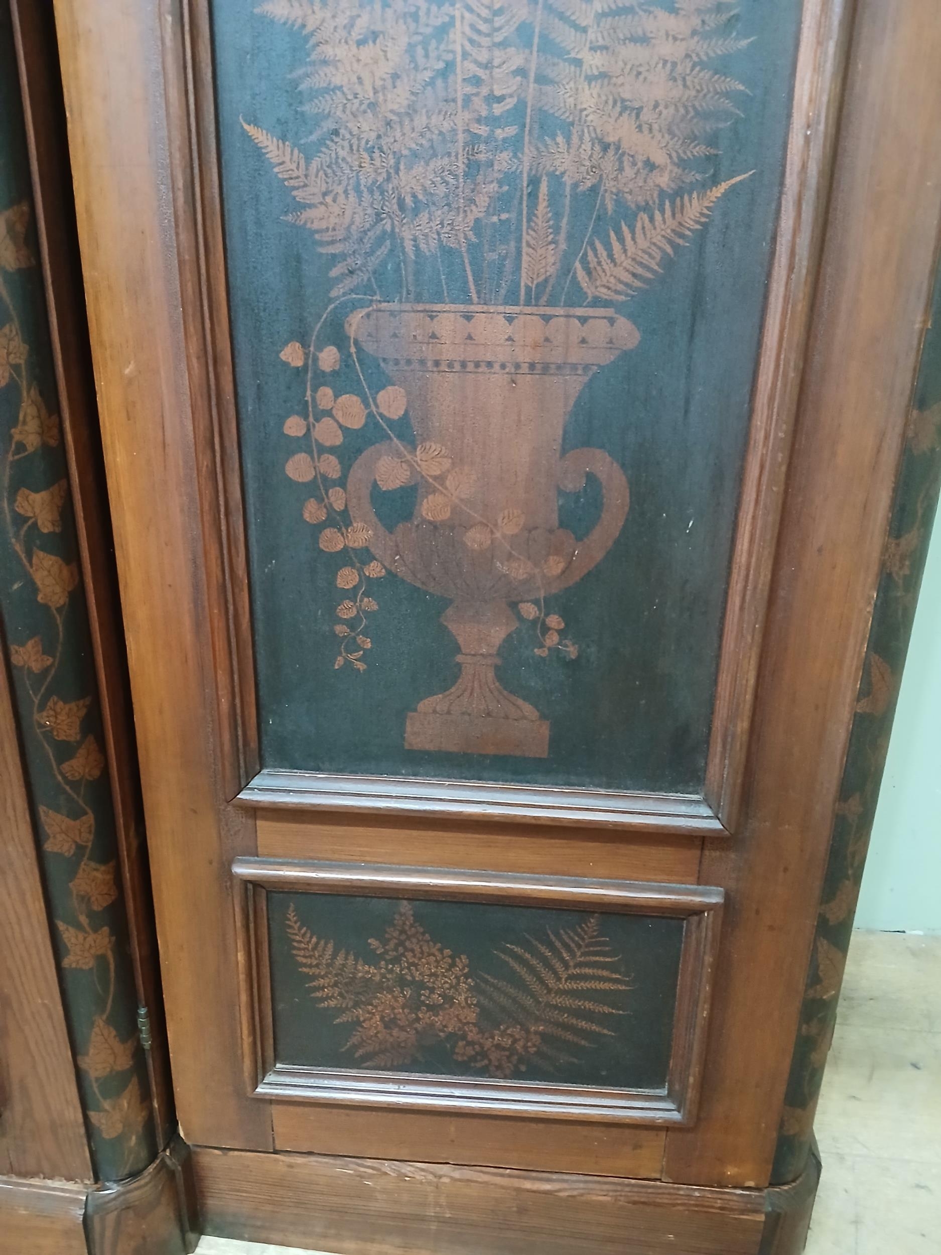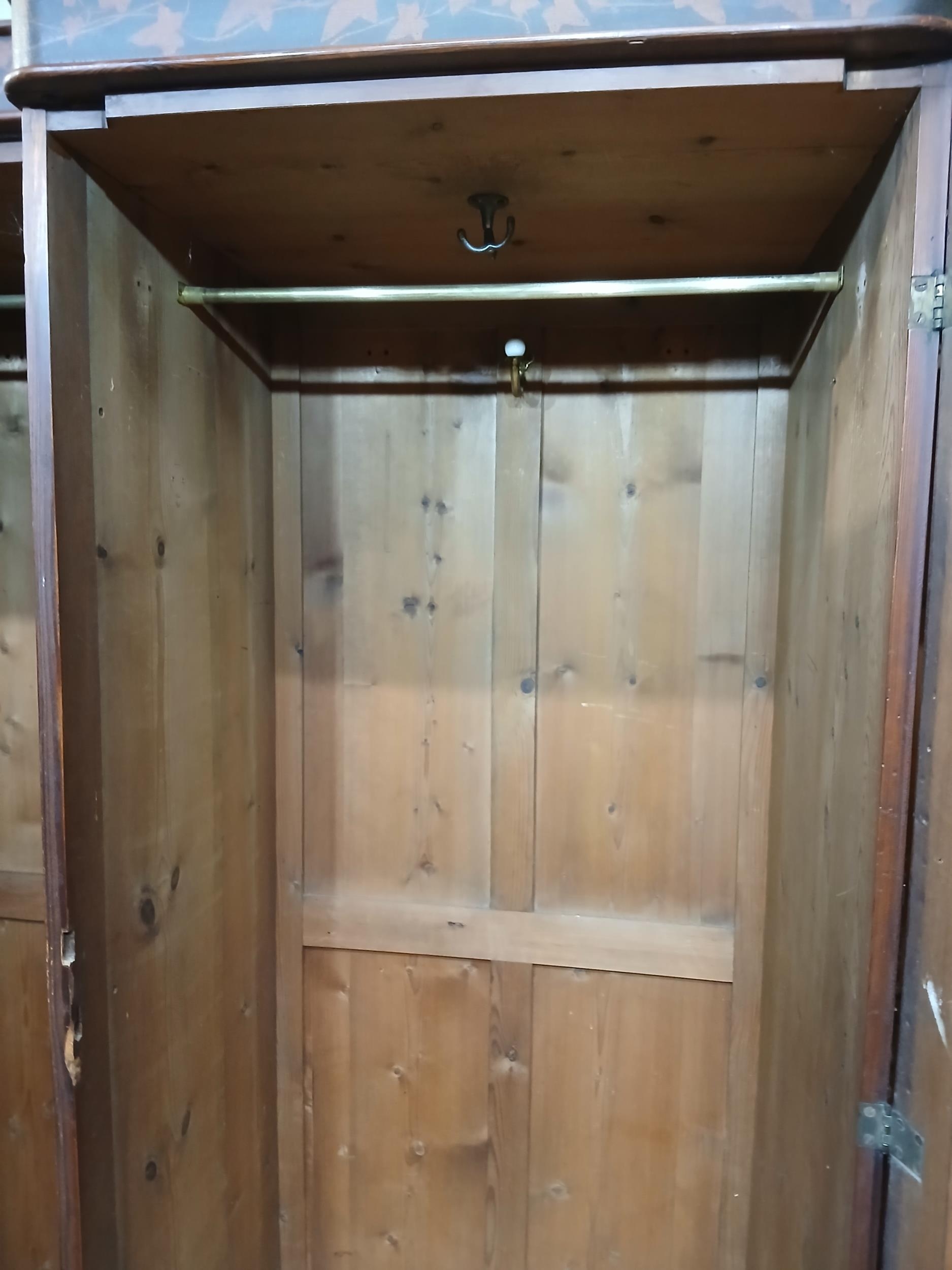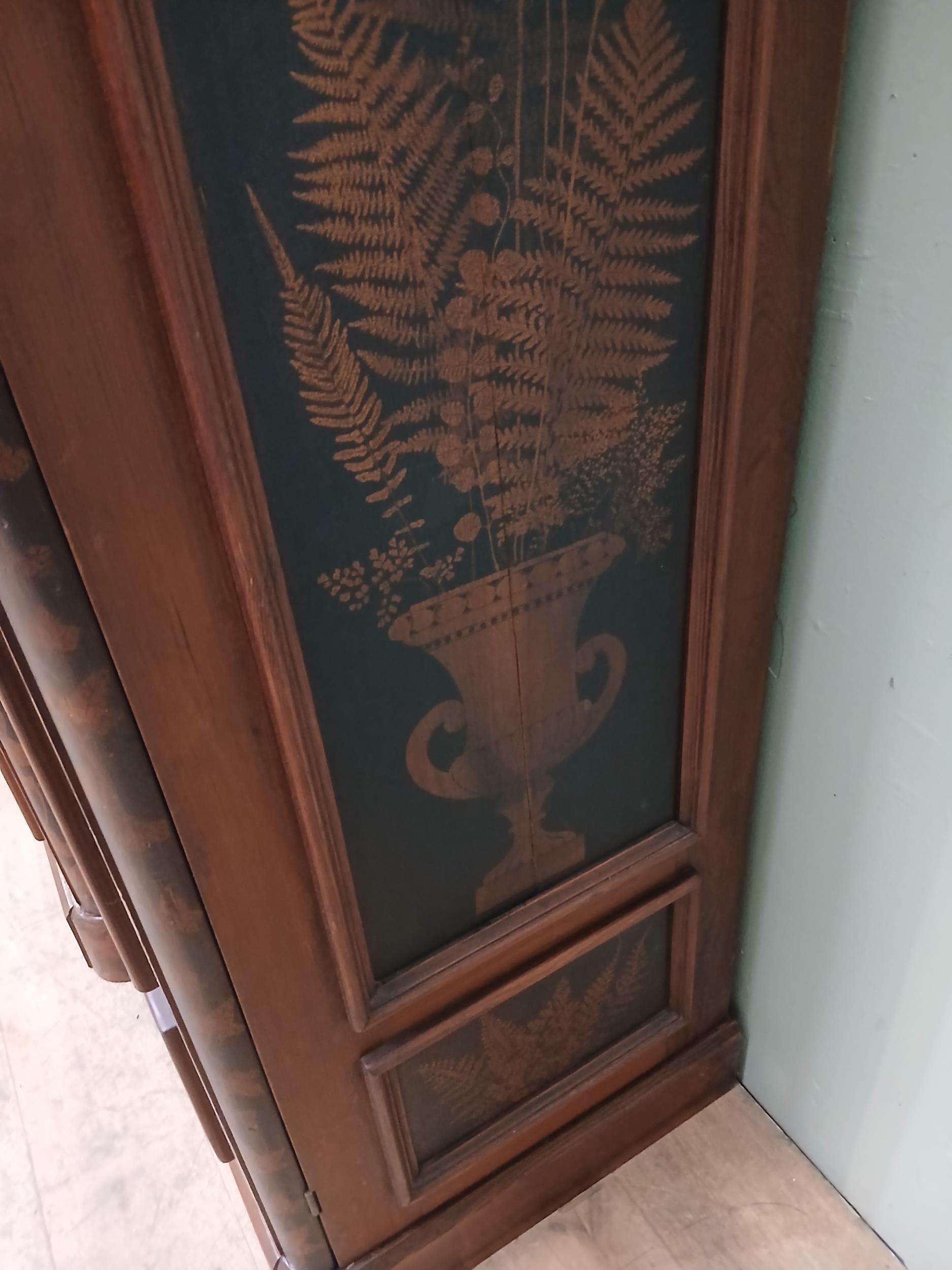 Irish George III style triple fern ware wardrobe flanked by two doors with internal brass clothes rail central panel with dome toppped mirror and drawer to base. {H 205cm x W 187cm x D 61cm }. NOT AVAILABLE TO VIEW IN PERSON.