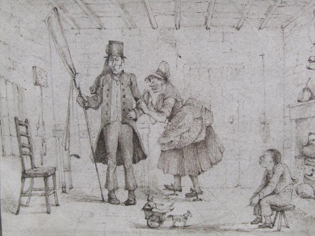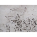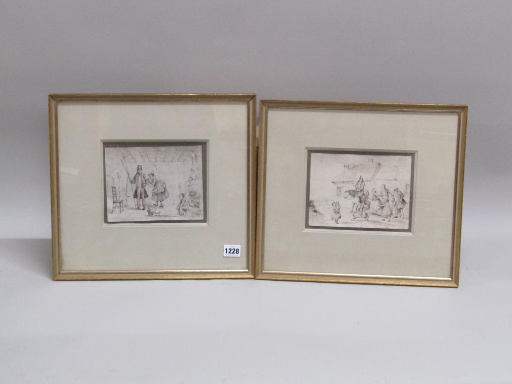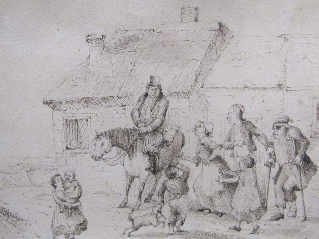 TWO LATE 18C/EARLY 19C - B&W SKETCHES, INTERIOR SCENE & ARRIVAL OF A LANDLORD, F/G