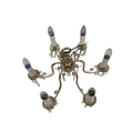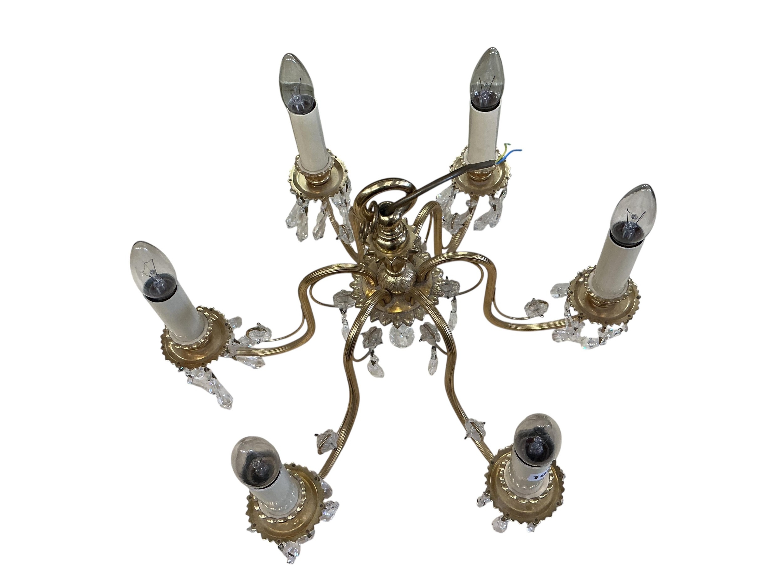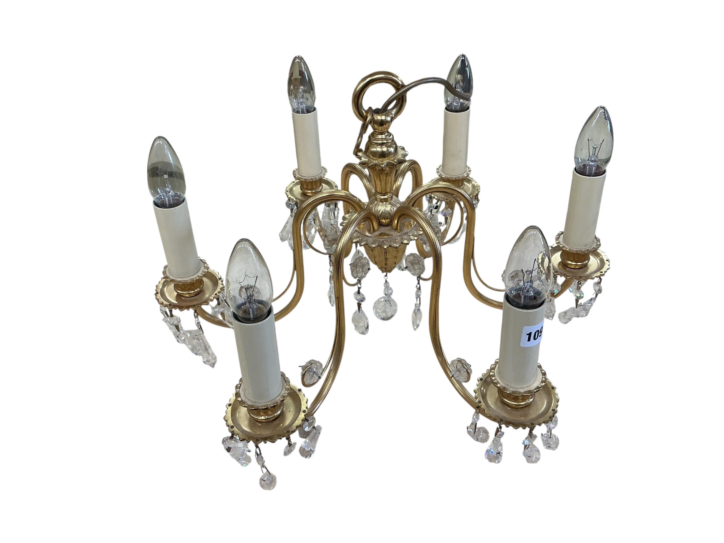 A brass six branch electrolier hung faceted glass drops, height 30cm.