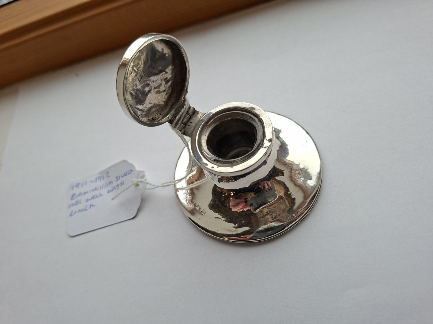 1911/12 silver Birmingham ink well with liner