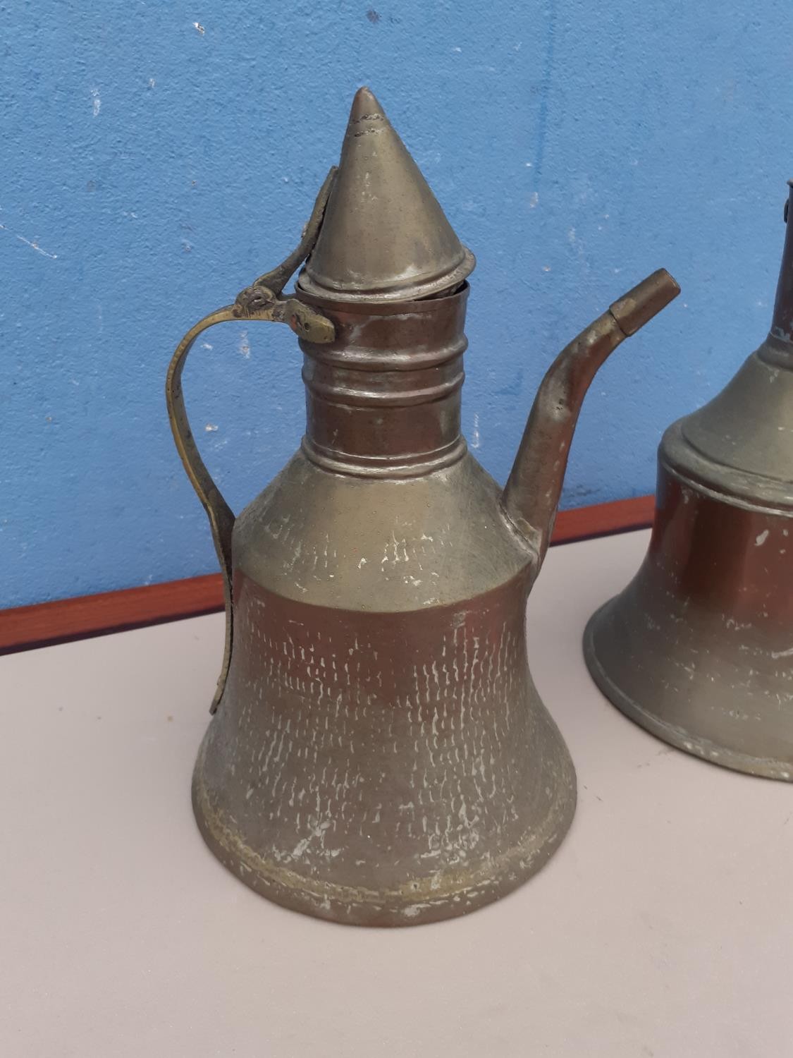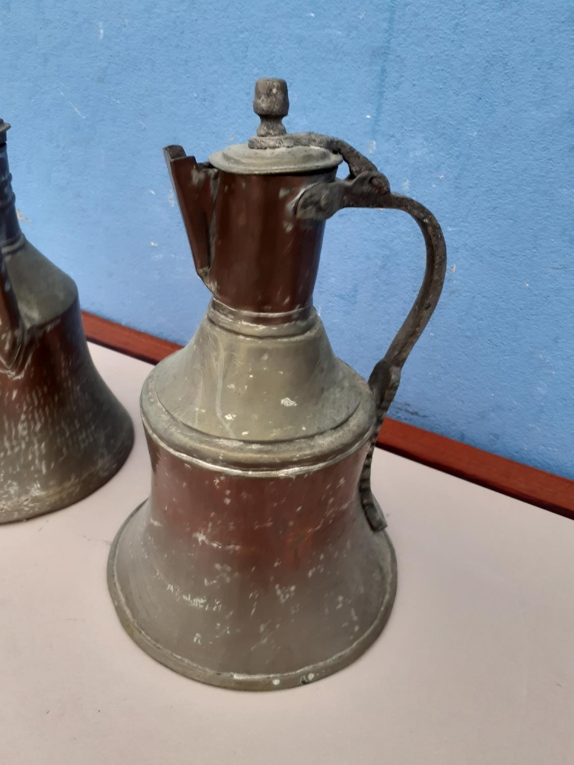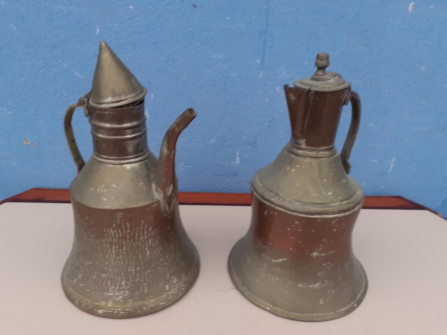 2 COPPER JUGS 12" TALL AND 8" DIA AT BASE