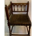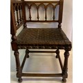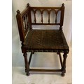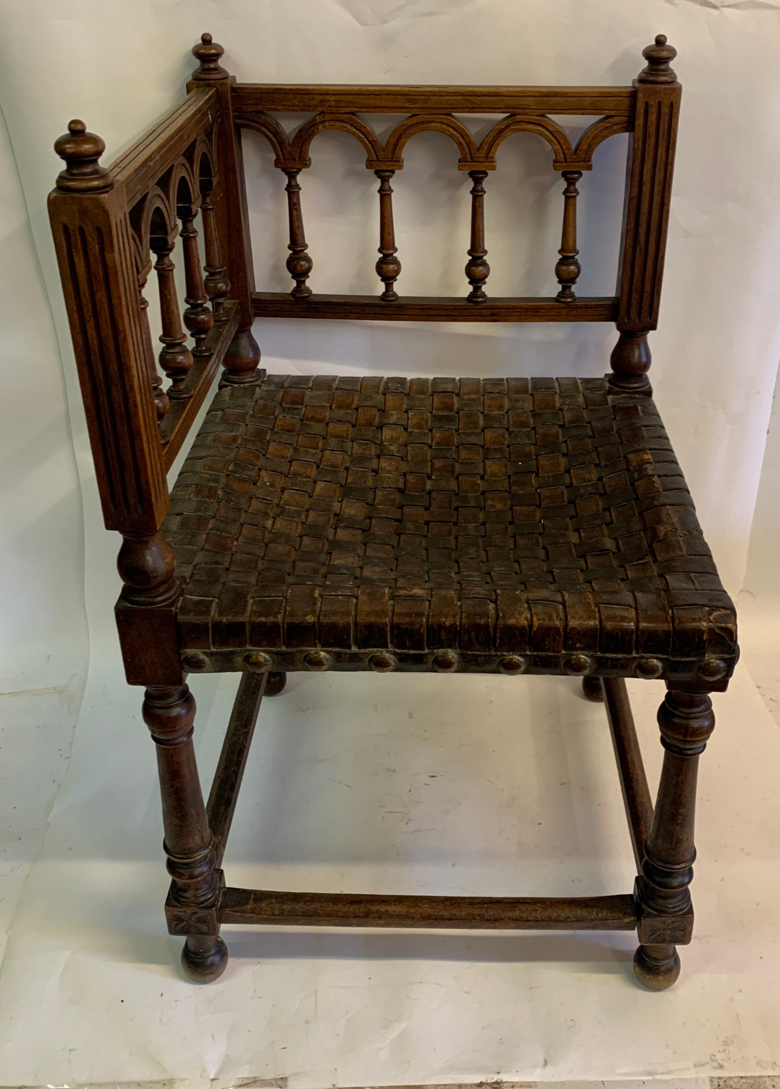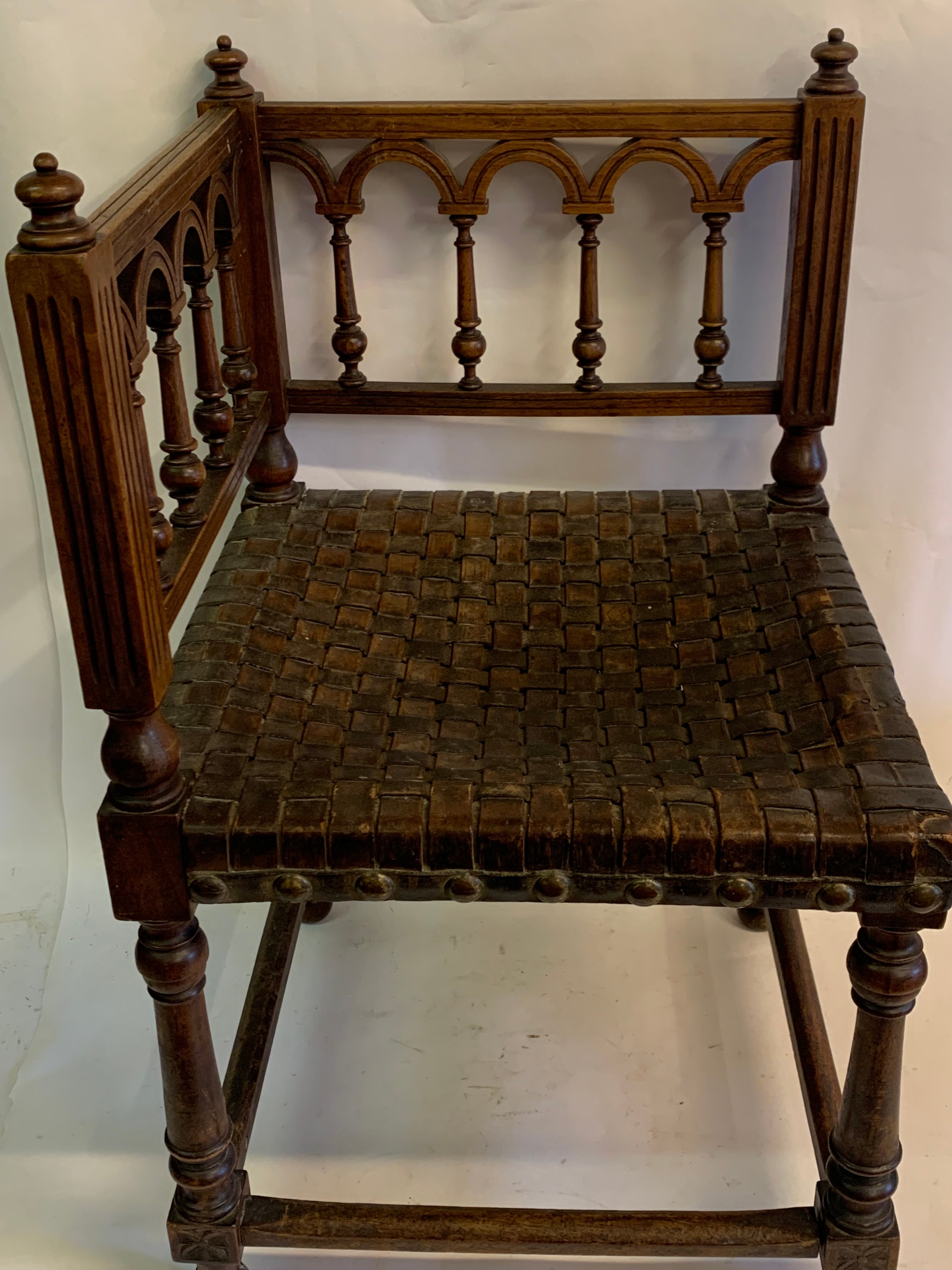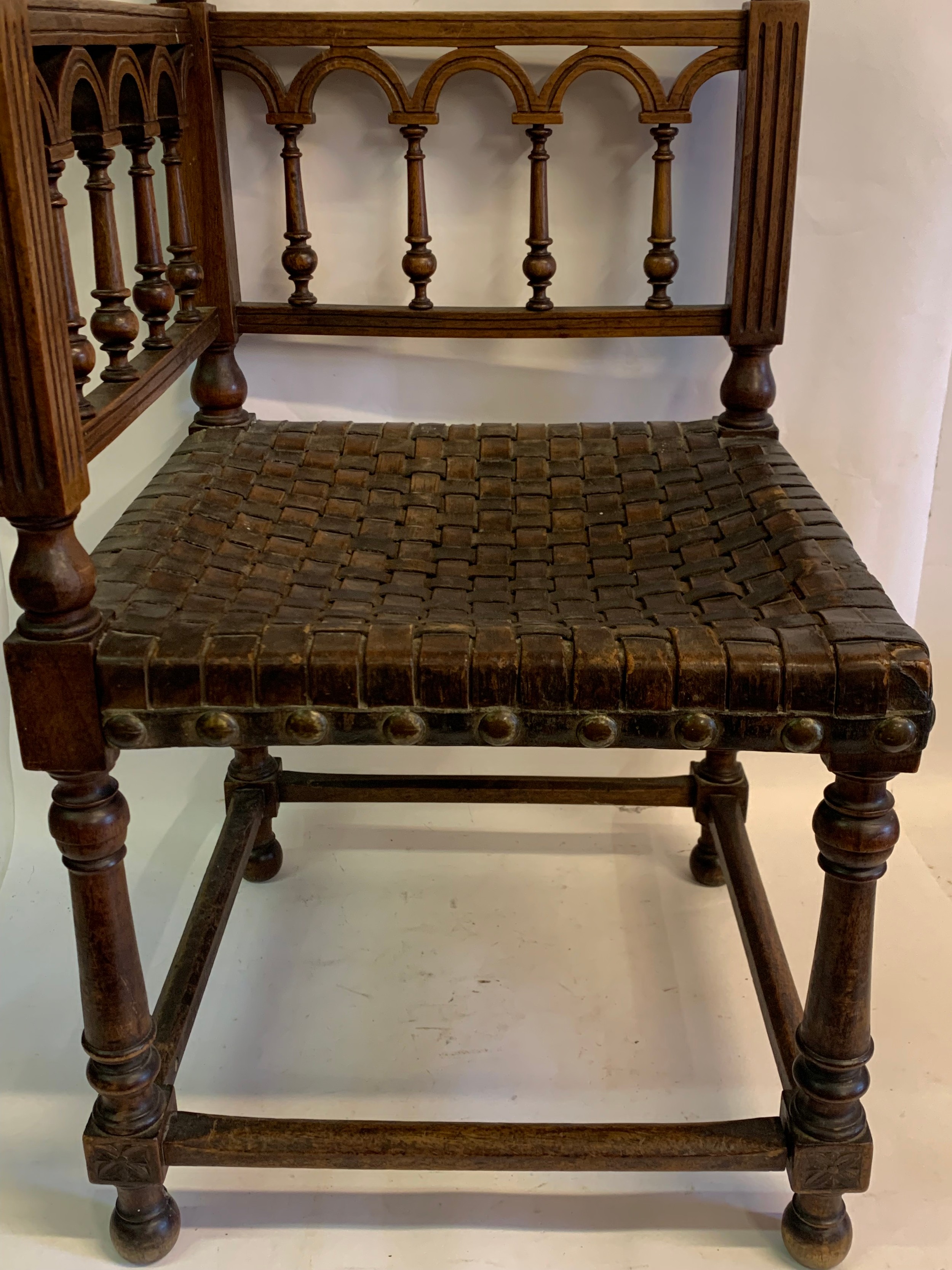 Antique European Gothic Corner Chair With Strapped Leather Seat