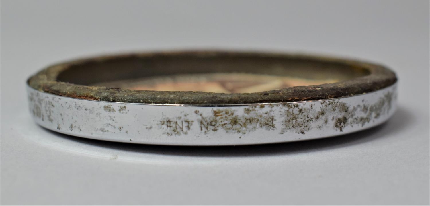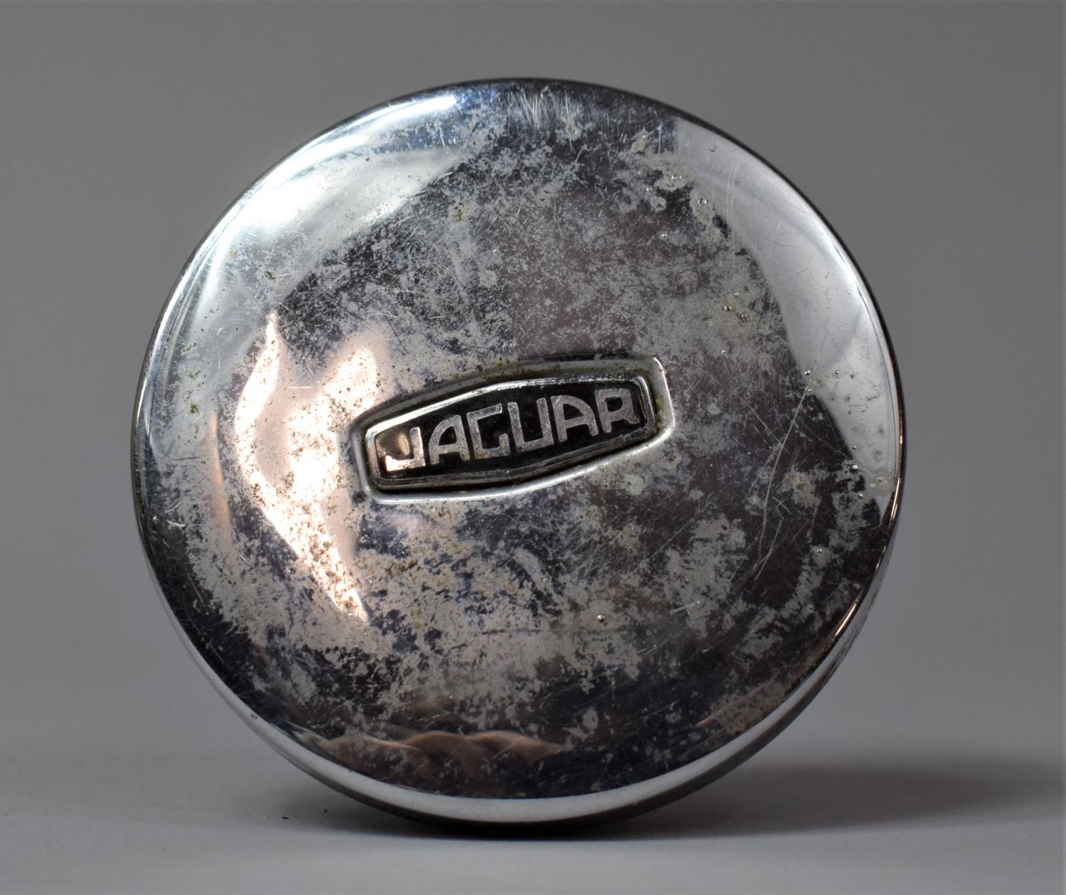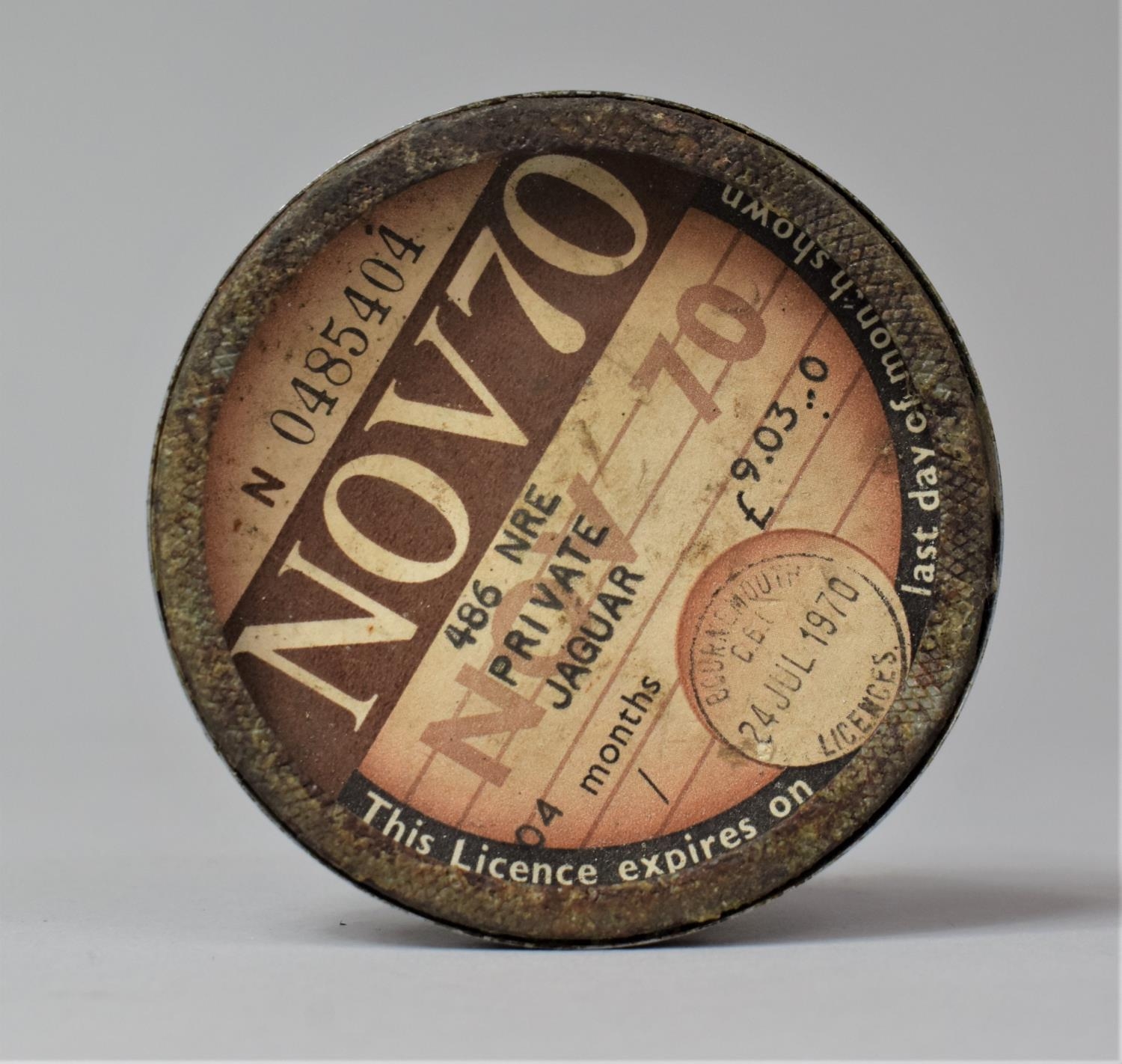 A Vintage Jaguar Chromed Circular Cap Containing 1970 Licence Disk for Private Jaguar 485 NRE, 7.5cm Diameter