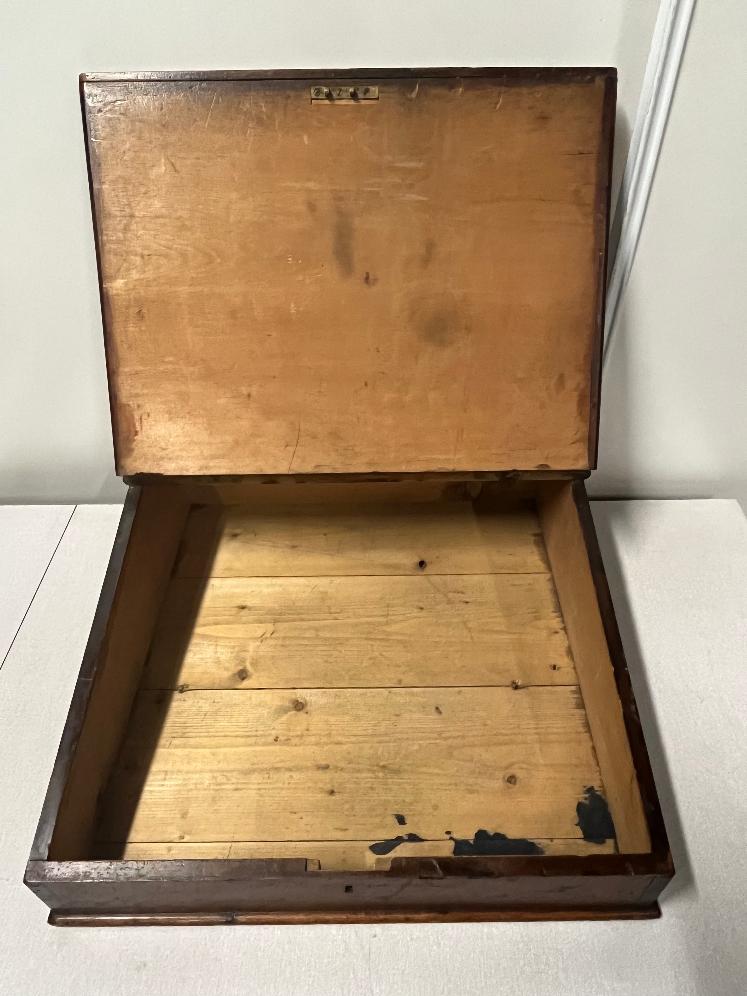 19th century stained pine lift top writing slope. [17x51x51cm]
