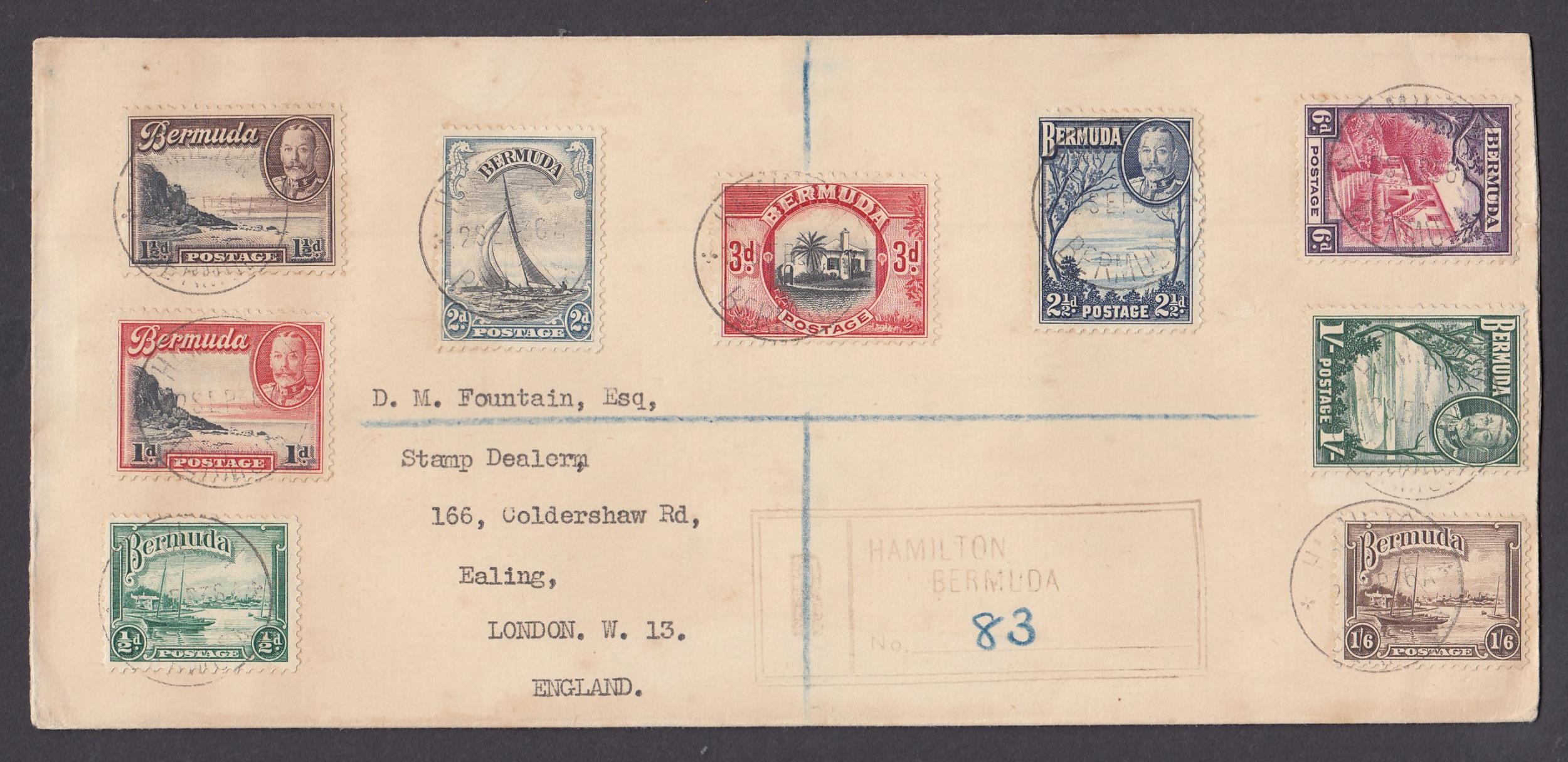 A Registered cover sent 12.SEP.36 to London, affixed by SG98 to SG106 set