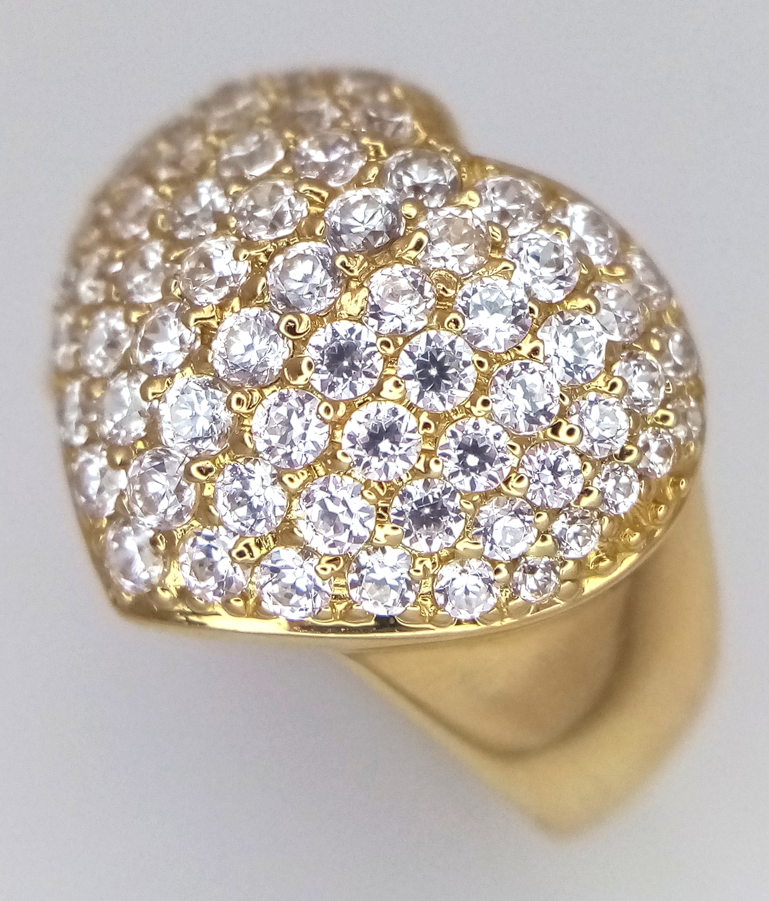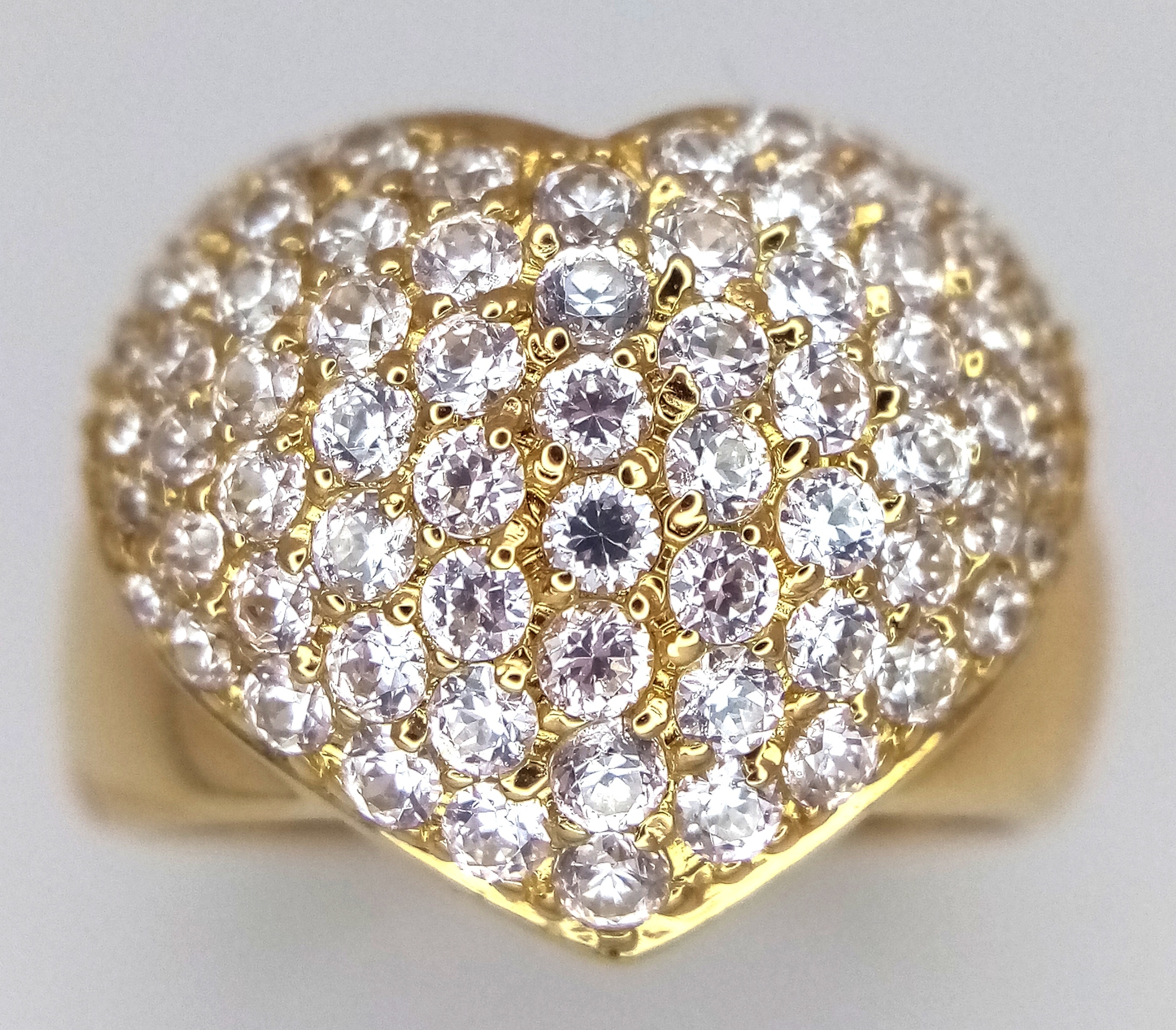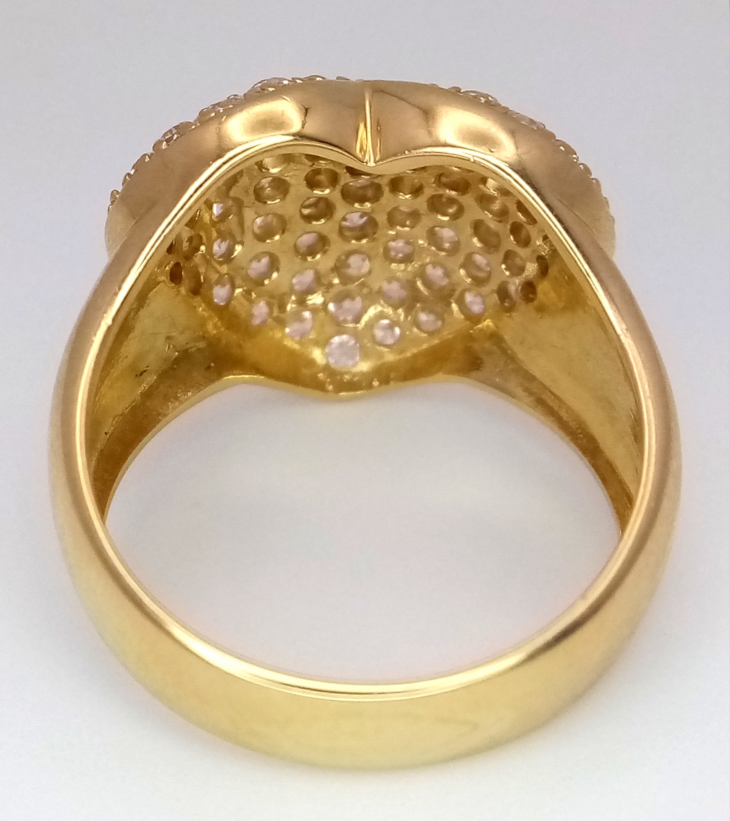 An 18K YELLOW GOLD DIAMOND SET HEART RING 1.15CT 8.1G SIZE N. Ref: TH 7003