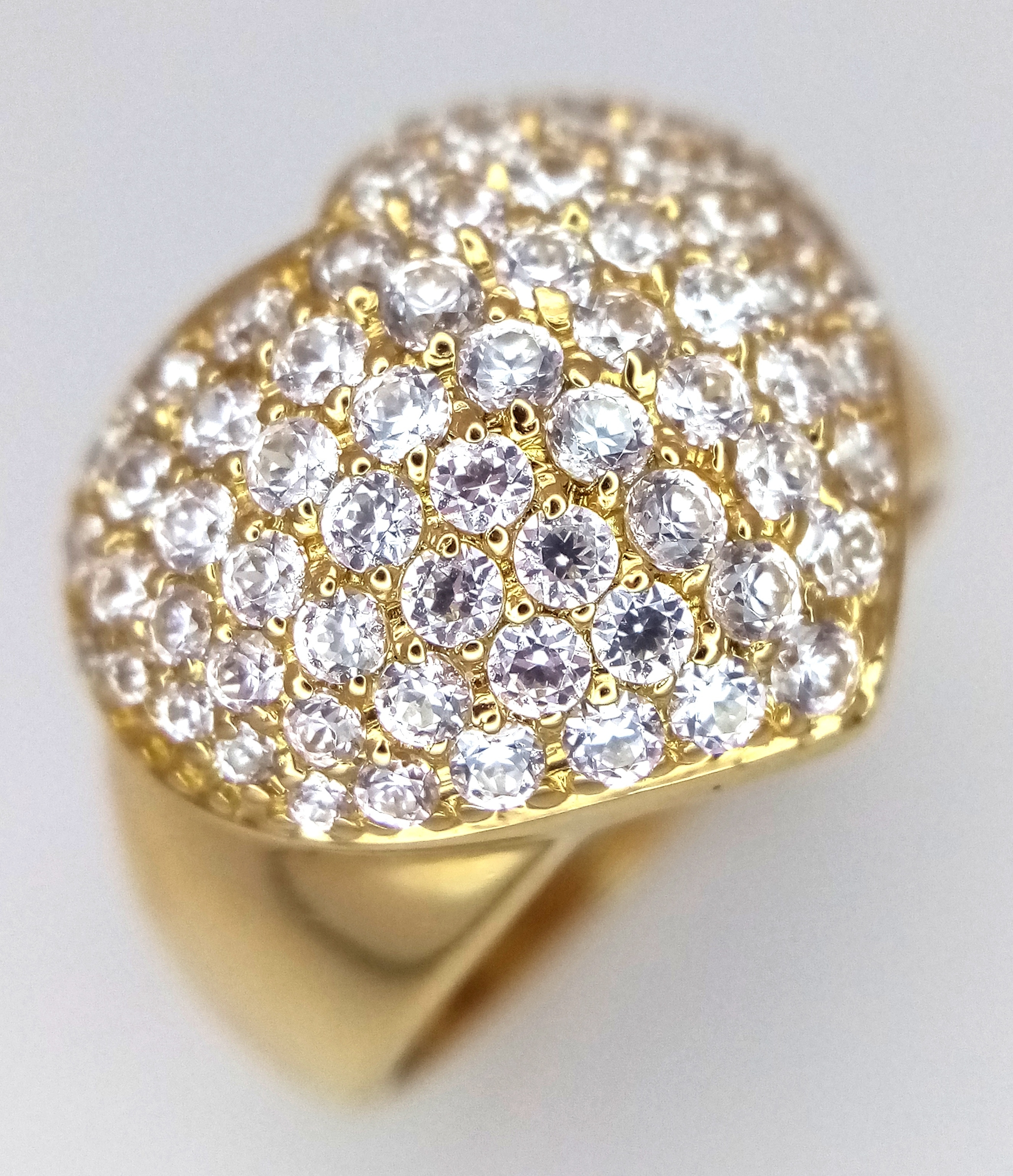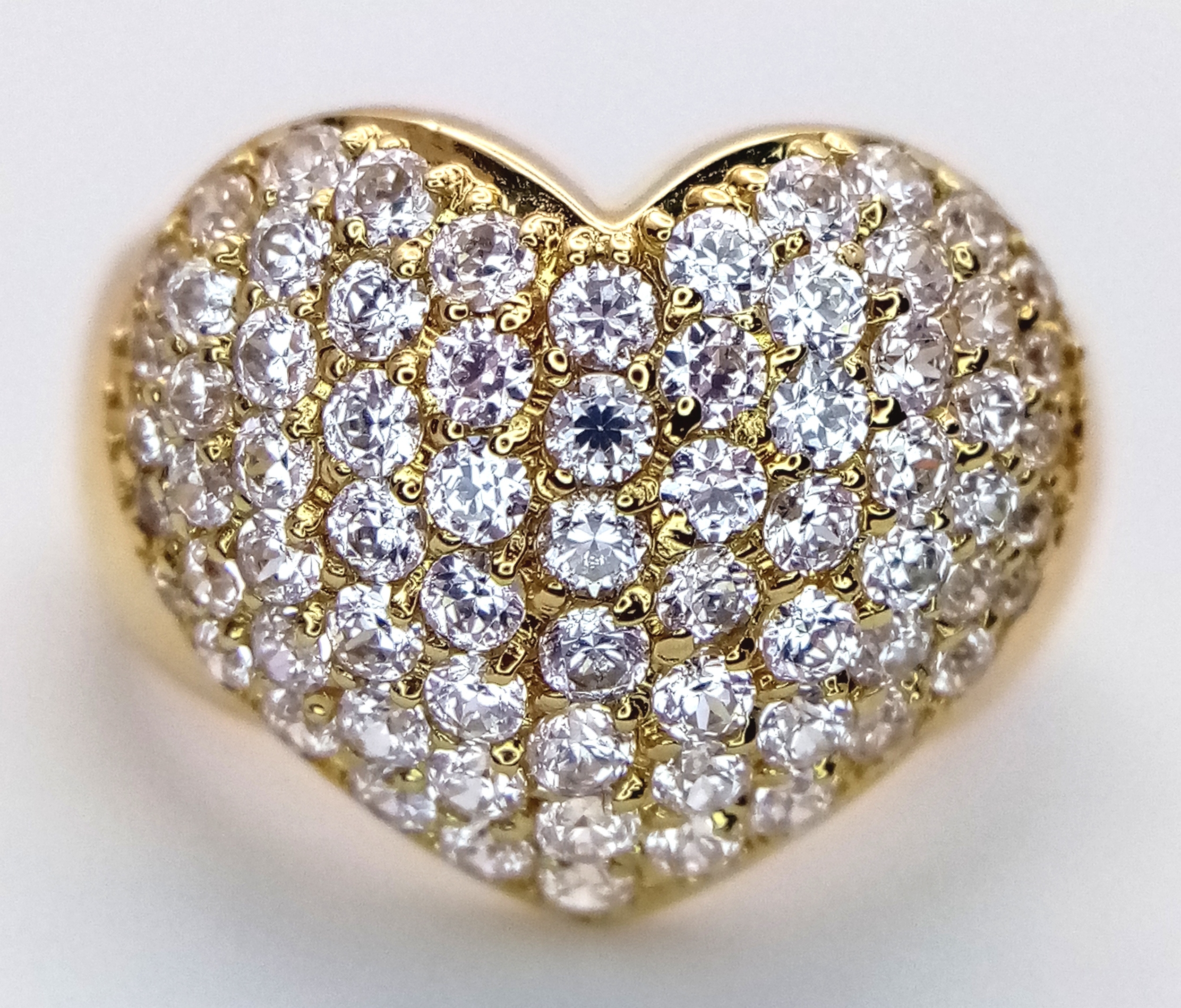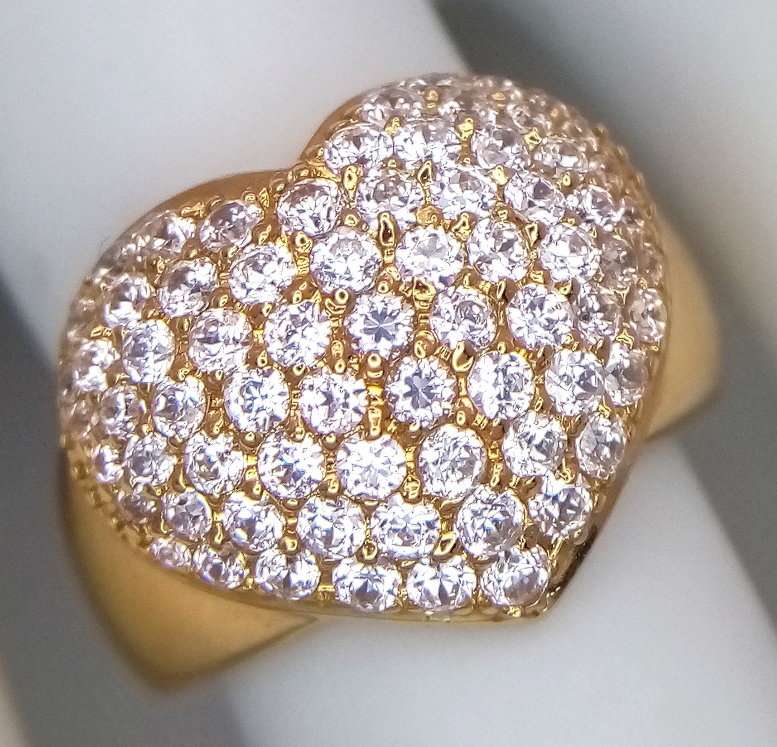 An 18K YELLOW GOLD DIAMOND SET HEART RING 1.15CT 8.1G SIZE N. Ref: TH 7003