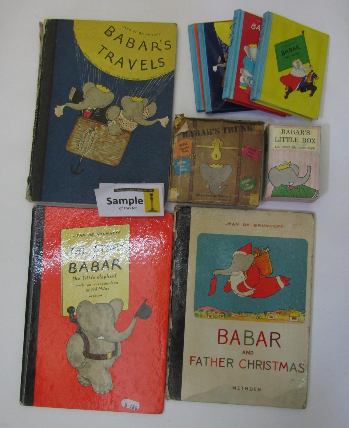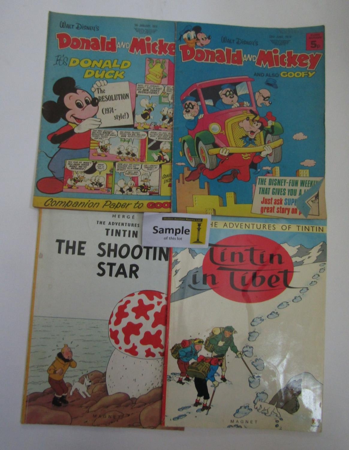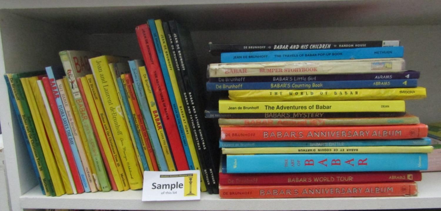 An extensive collection of Babar books (various dates) two Herge Tin Tin books published by Magnet, a quantity of Walt Disney's Mickey Mouse magazine, all dating from the 1970s, further vintage children's annuals, etc, together with a quantity of Giles books (two shelves)