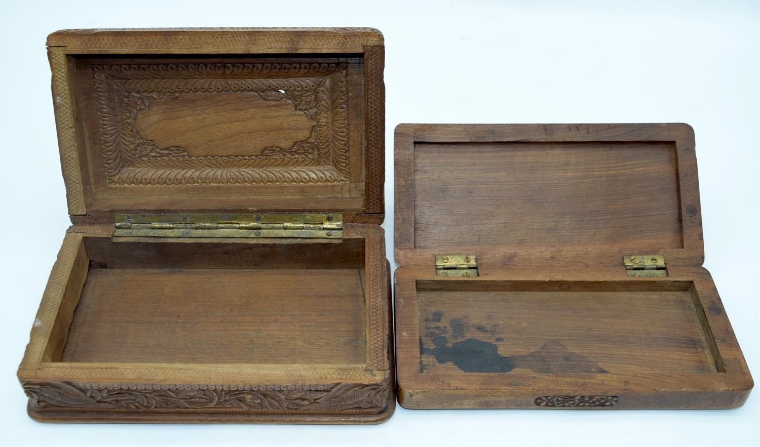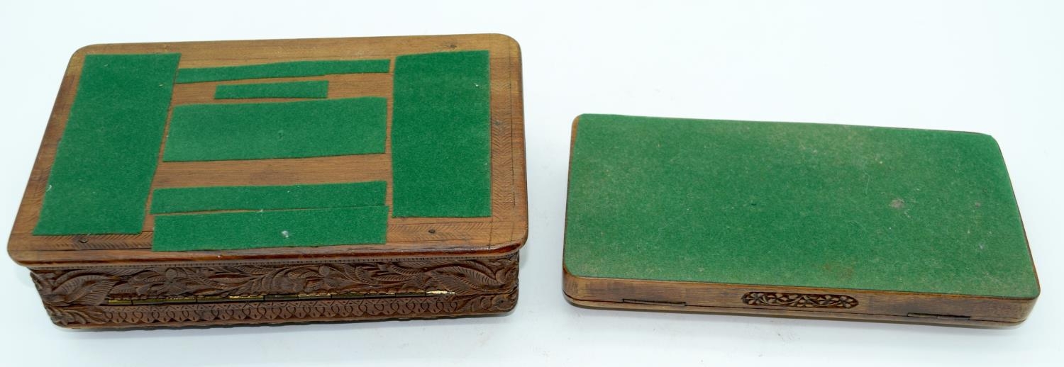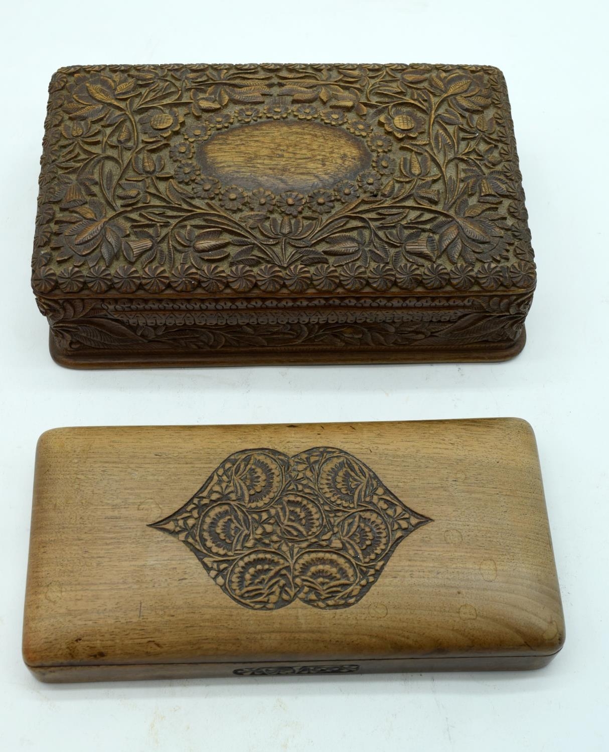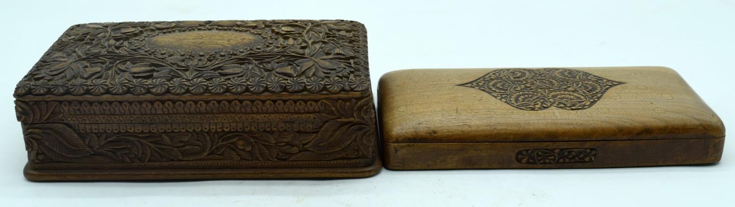A mid century carved wooden box floral pattern together with carved wooden pen box 21cm (2).