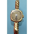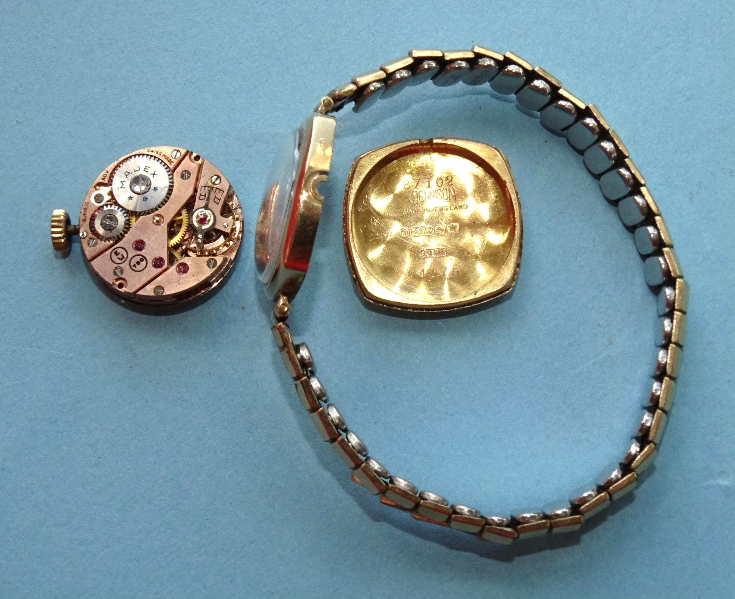 Majex, a lady's 9ct gold-cased wrist watch on plated bracelet, (engraved inscription to case), (working).