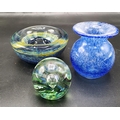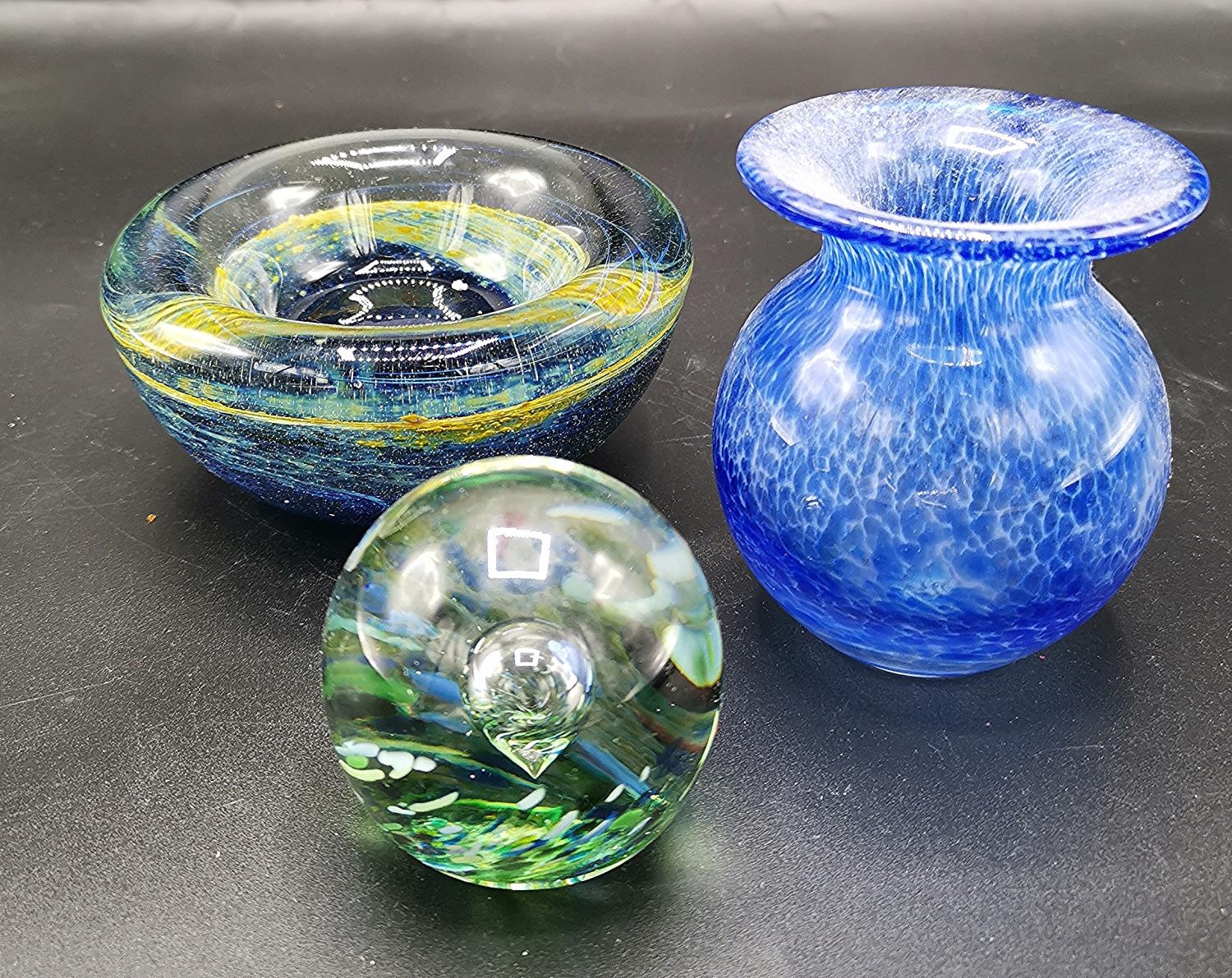 GLASS ITEMS (3) 9cm VASE, BOWL 12cm Dia Plus PAPERWEIGHT