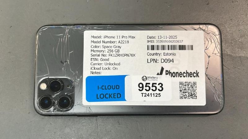 IPHONE 11 PRO MAX/ A2218/ SPACE GRAY/256GB/ IMEI-353919106202637 (I-CLOUD LOCKED) (BACK DAMAGED)