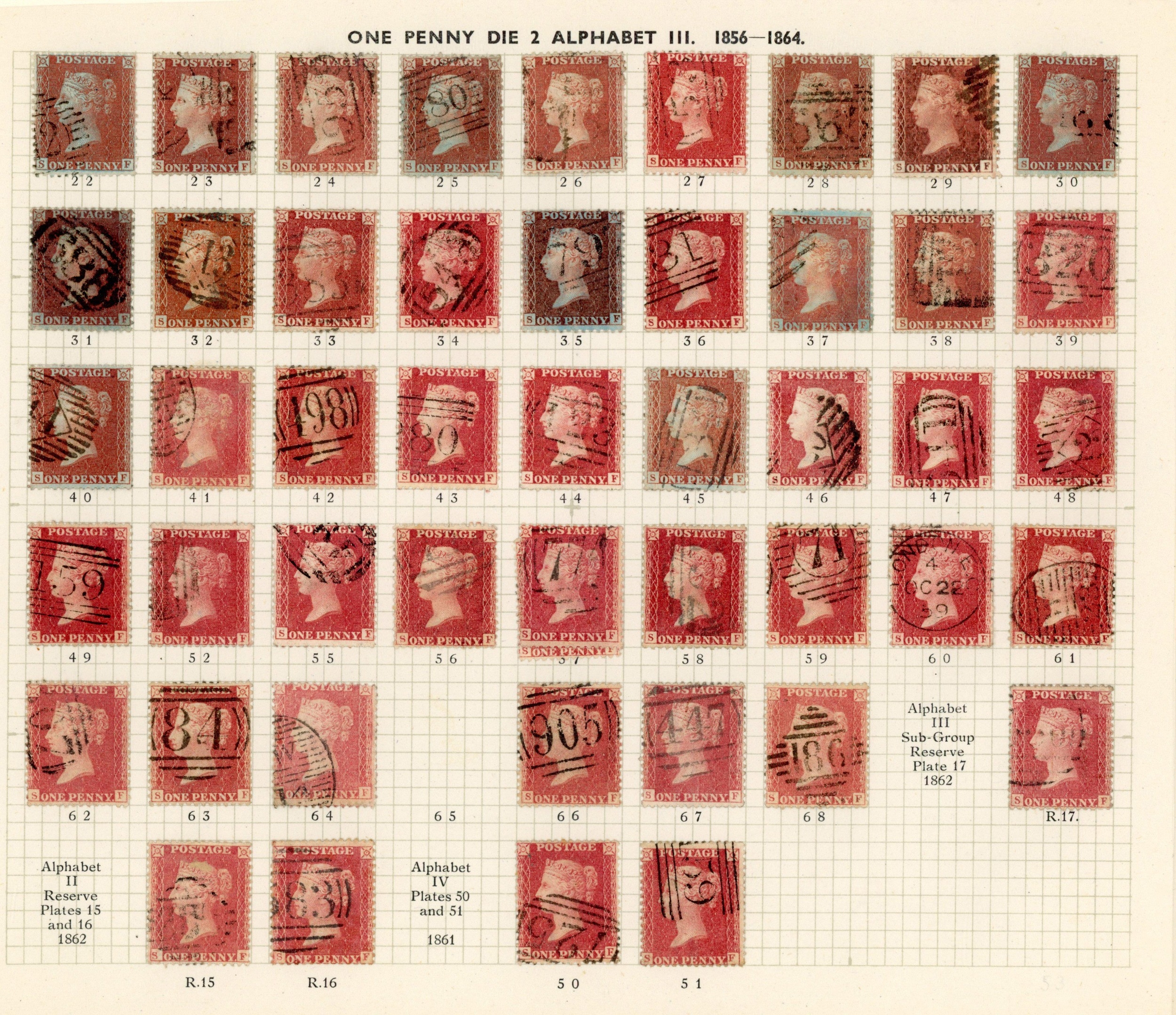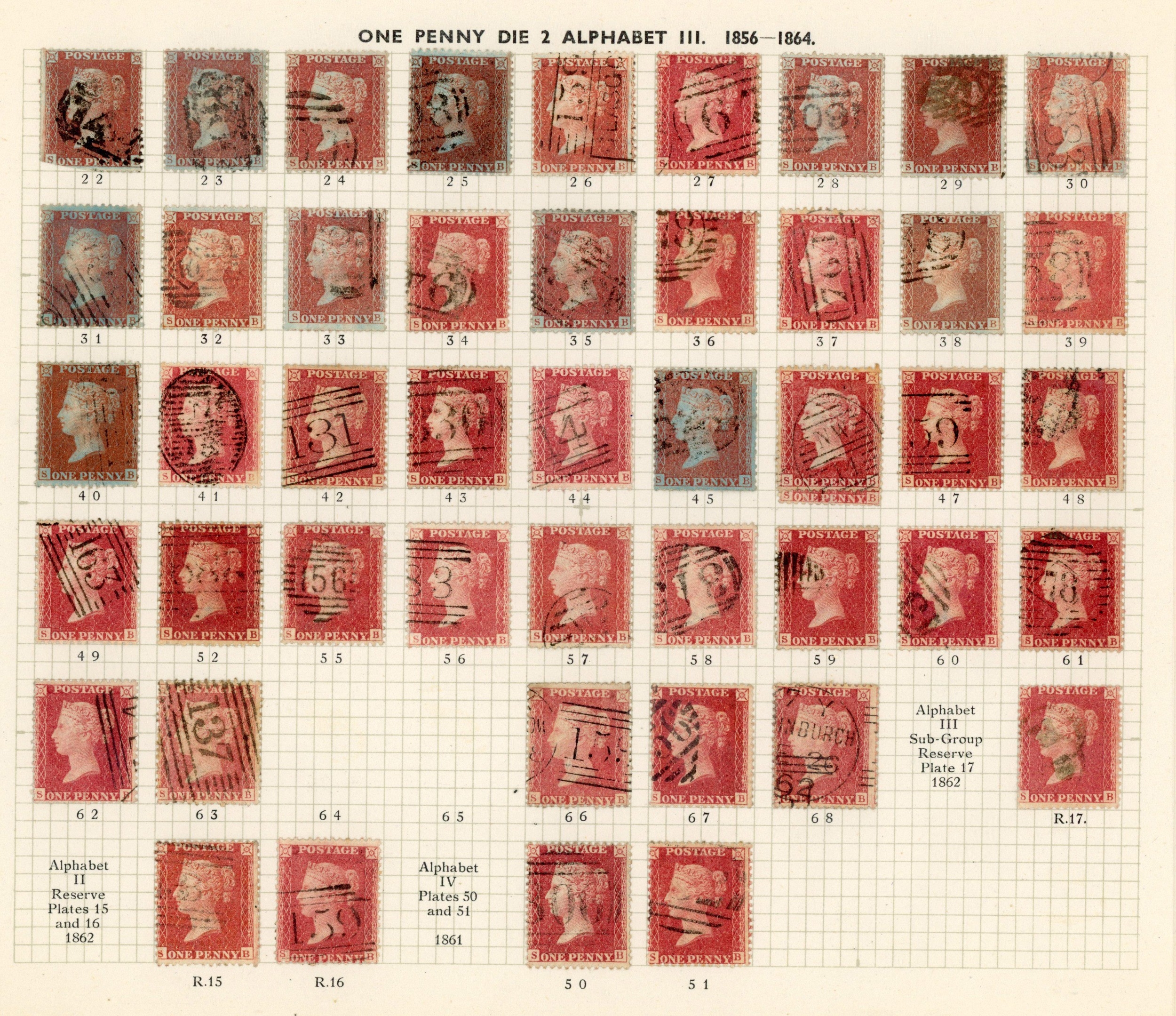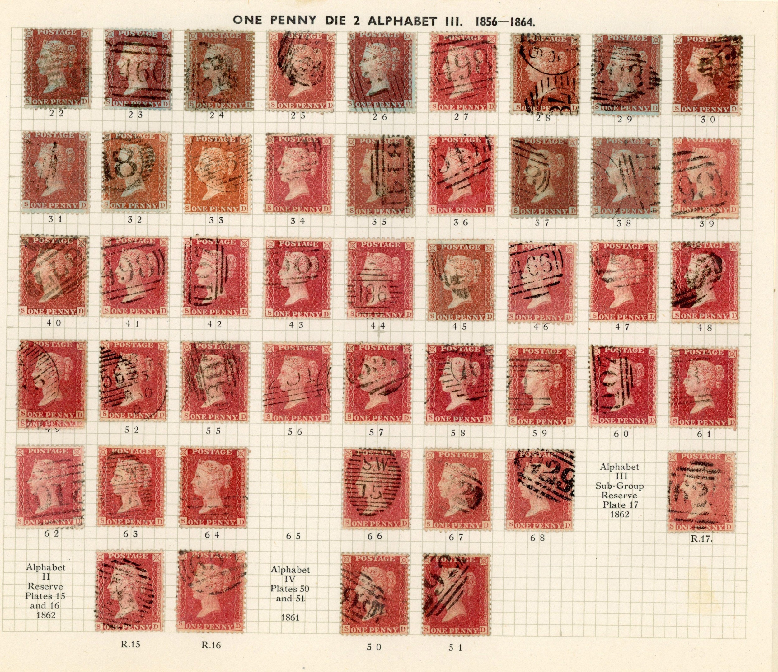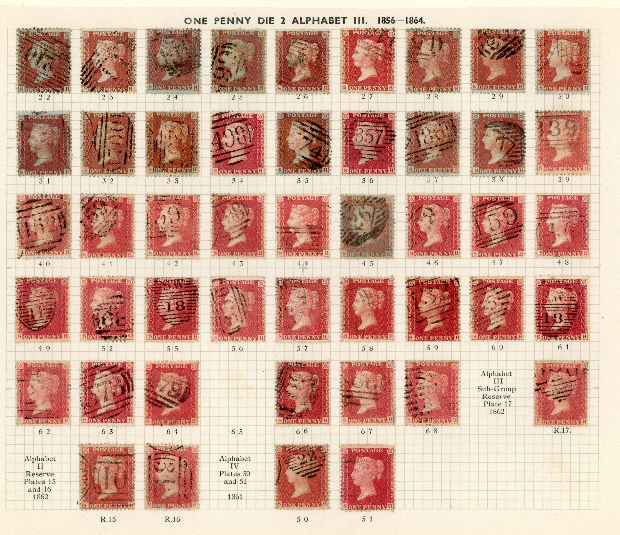 GB 1856-64 1d reds from Plates 22 - R17, the S Row