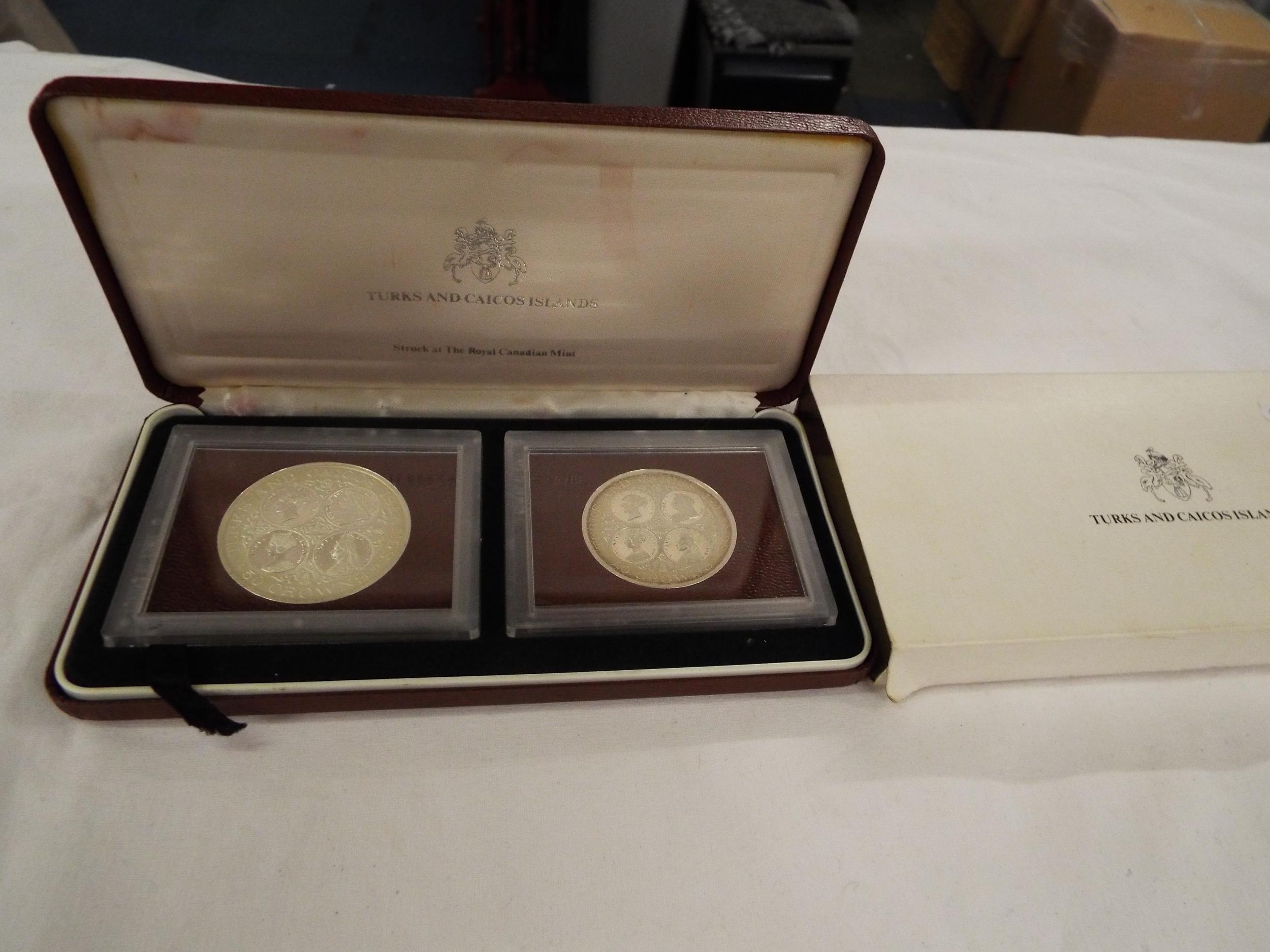 A Turks and Caicos Islands proof set of coins 20 crowns and 50 crowns