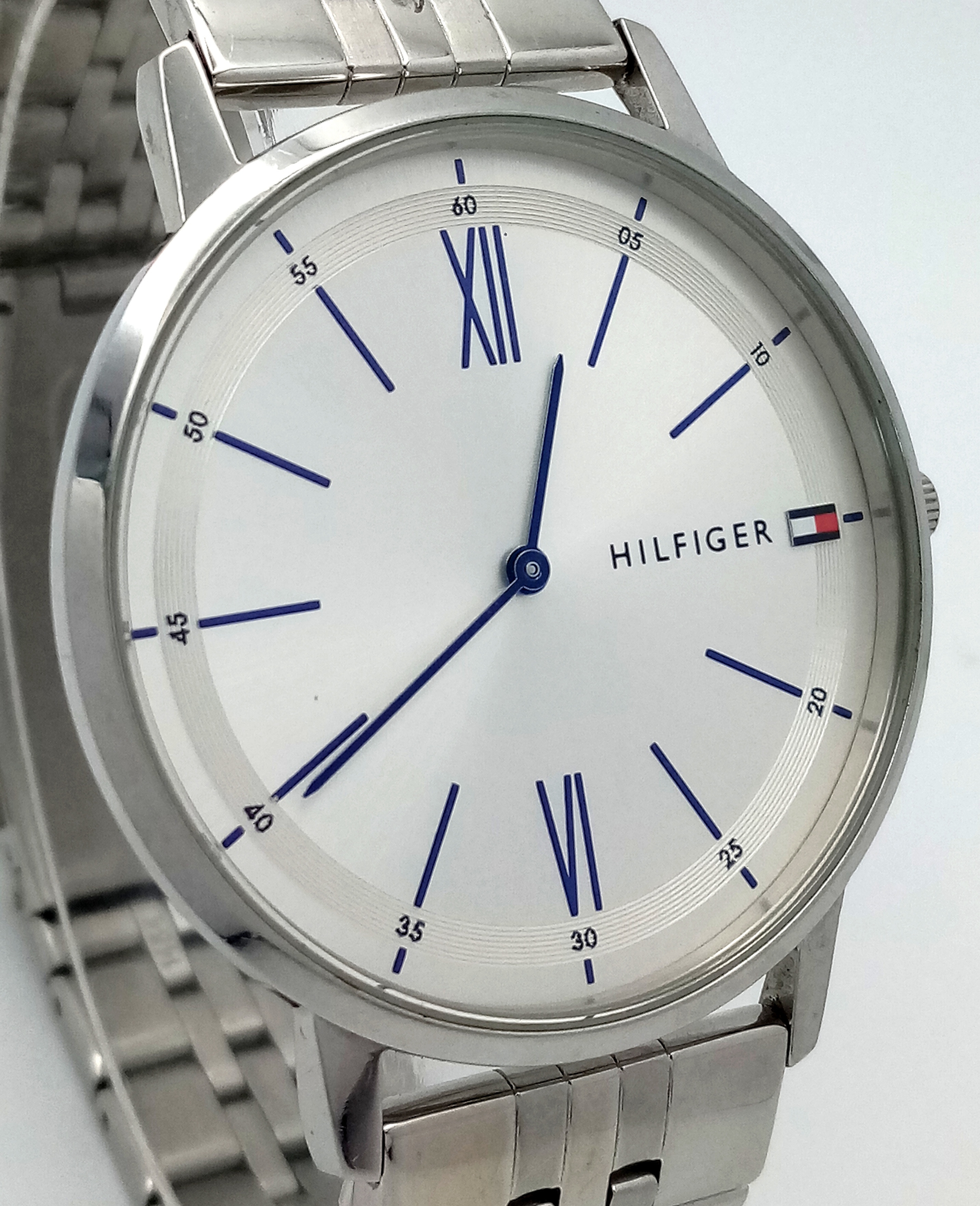 A TOMMY HILFIGER, STEEL BRACELET WATCH. IN FULL WORKING ORDER. NEW BATTERY FITTED RECENTLY. S/A 1456 - 1