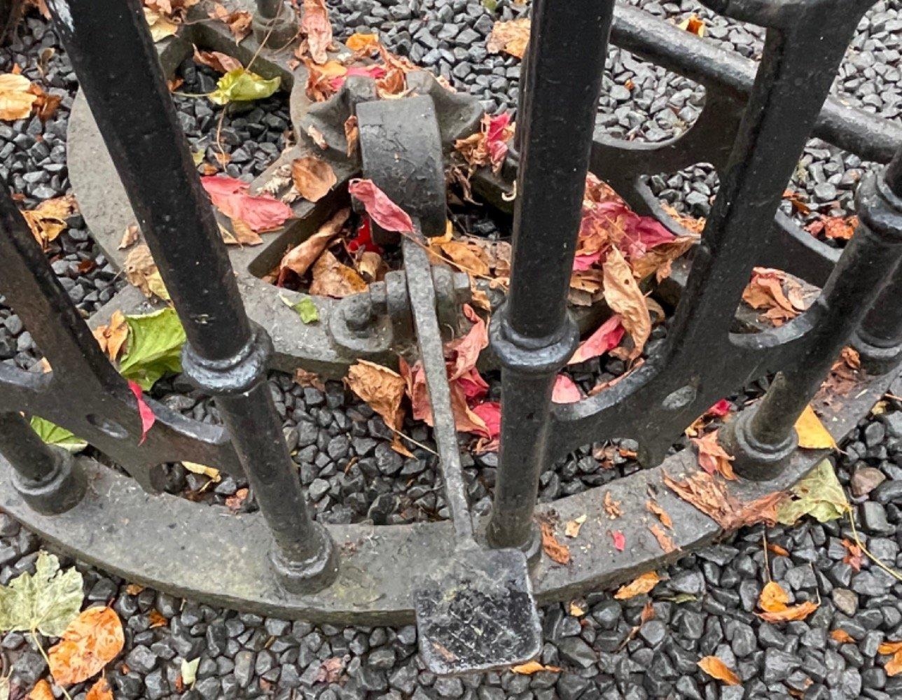 IDEAL GARDEN BAR - ORIGINAL SALVAGED HAMPDEN TURNSTILE - one of a pair - rescued from demolition work in 1982 - this pedal-release operating mechanism and paddle turn stile is part of football history with counting through 149k football supporters for the opening of the new stadium in 1937 Scotland v England game - which held the record for the biggest attended football number of supporters attendance - made by WT ELLISON & Co Ltd Engineers Sole Makers of 'Rush Preventive Turnstiles'