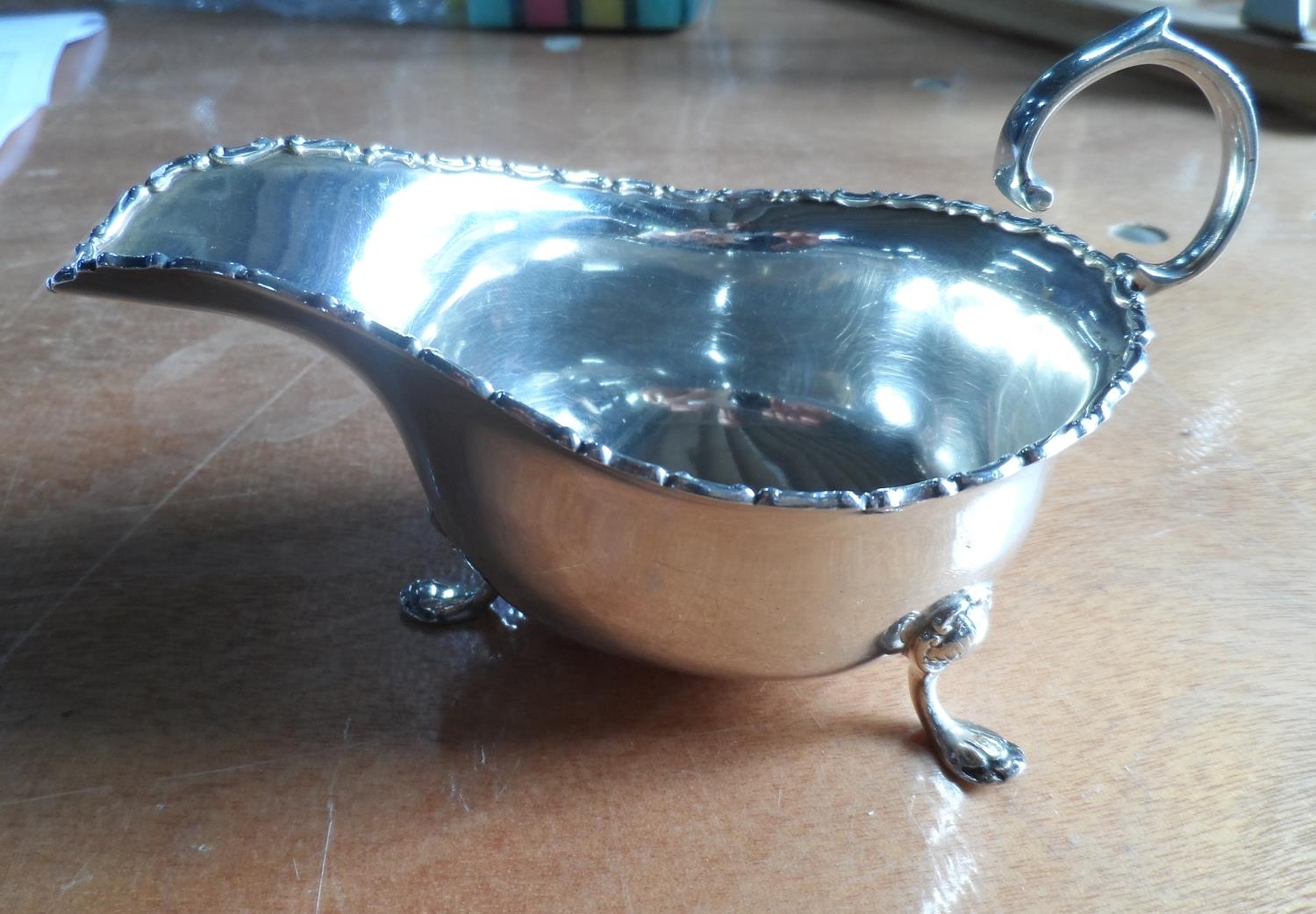 Silver sauce boat on tripod footing, Birmingham 1906,130 grams