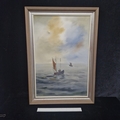 A wonderful original oil on linen canvas painting. Features a maritime scene with fishing boats and dramatic sky in soft blended brush strokes. Signed P. Hennessy lower left and dated 1978. Housed in a wooden frame.