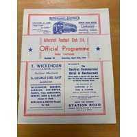 1949/50 Aldershot v Torquay, fold, score noted