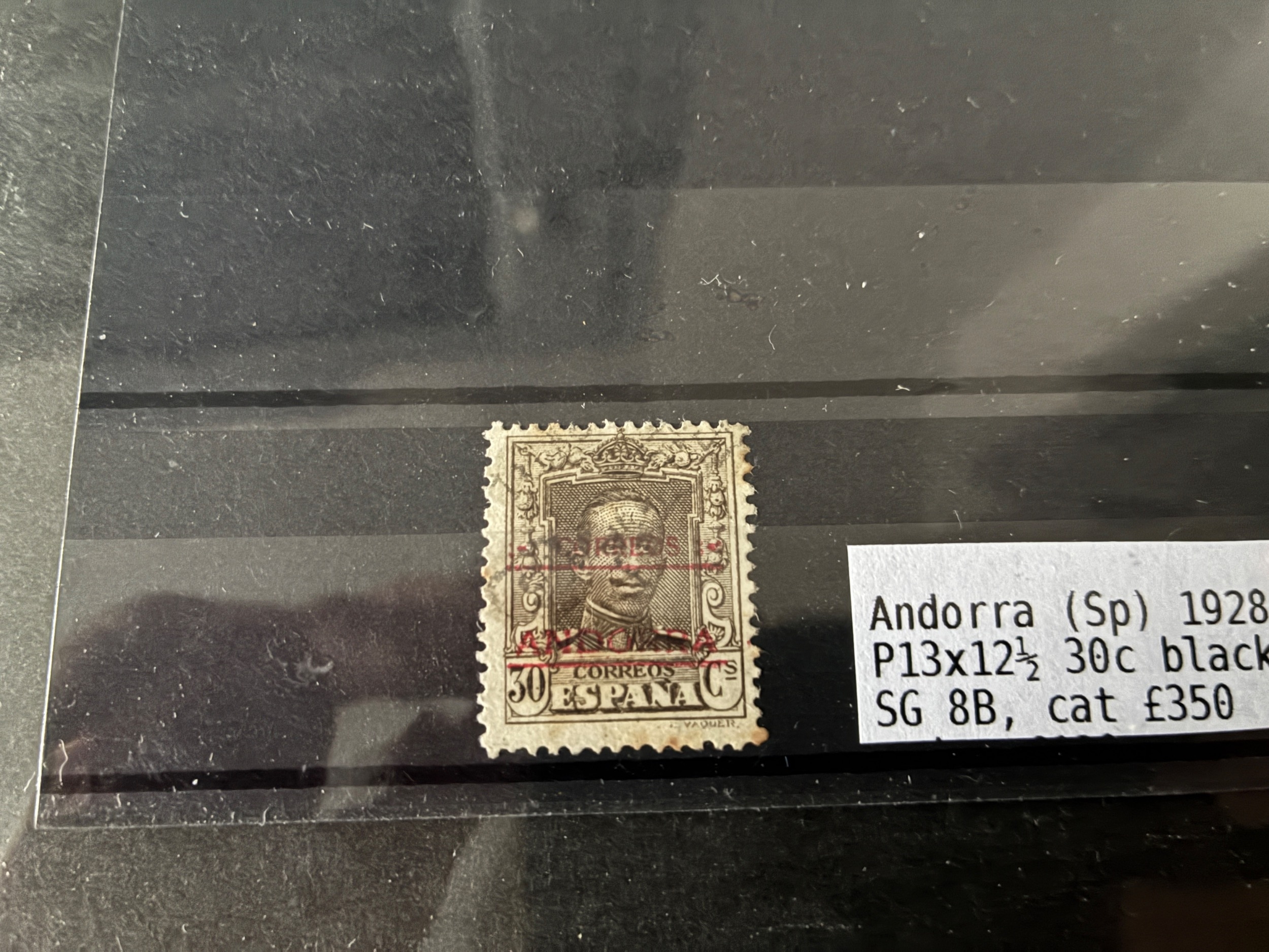 Andorra (Spanish) 1928 30c brown perf 13x12.5, vfu. (SG 8B). Cat £350