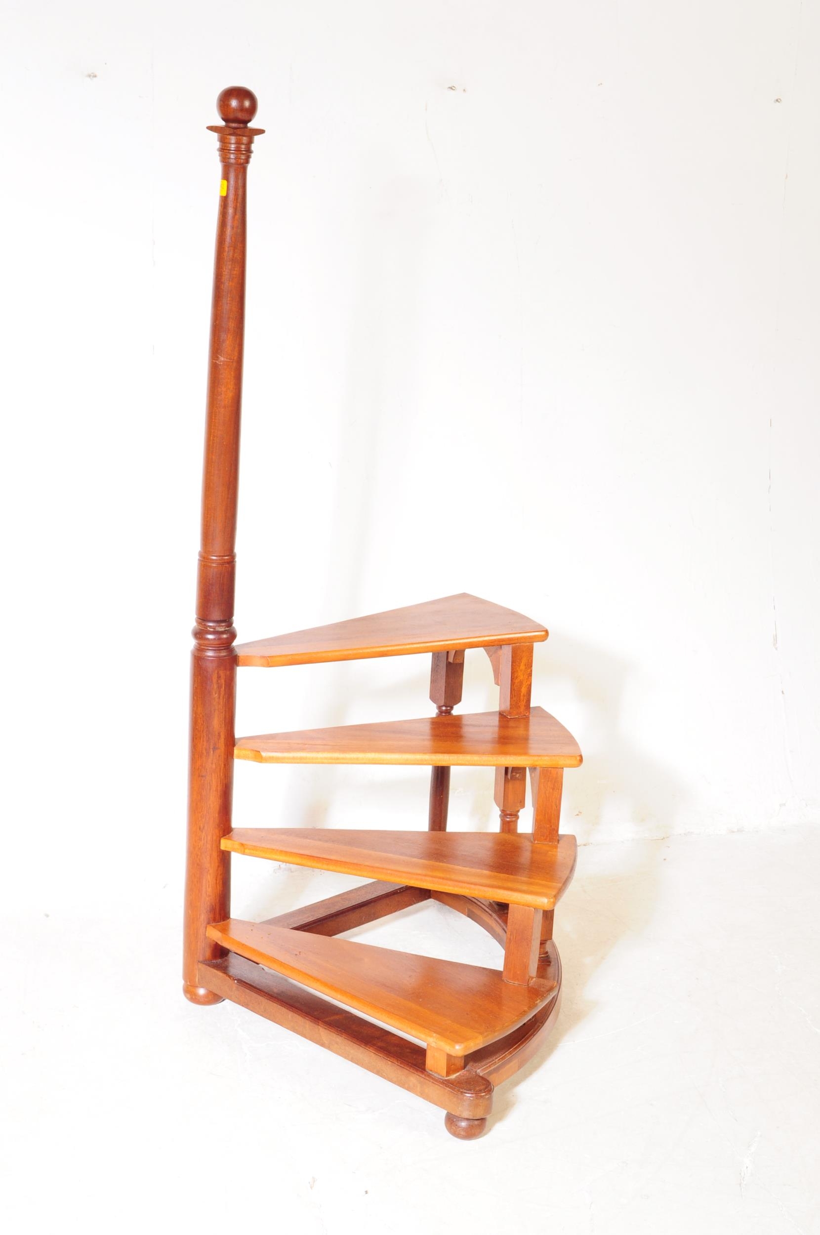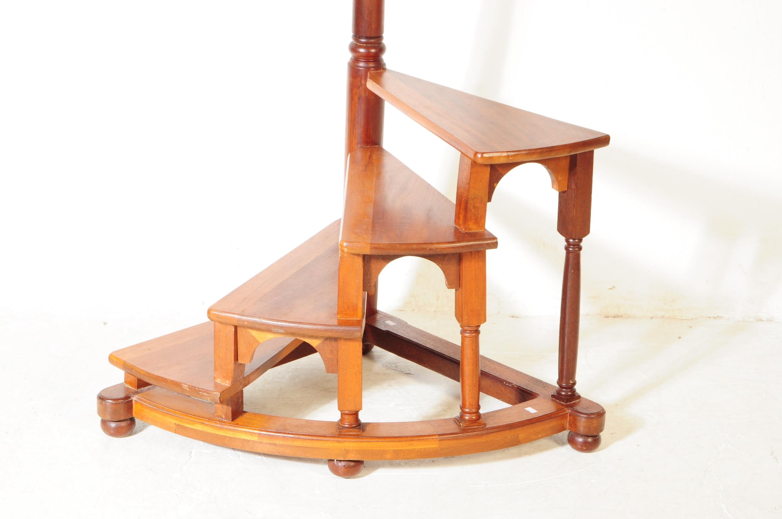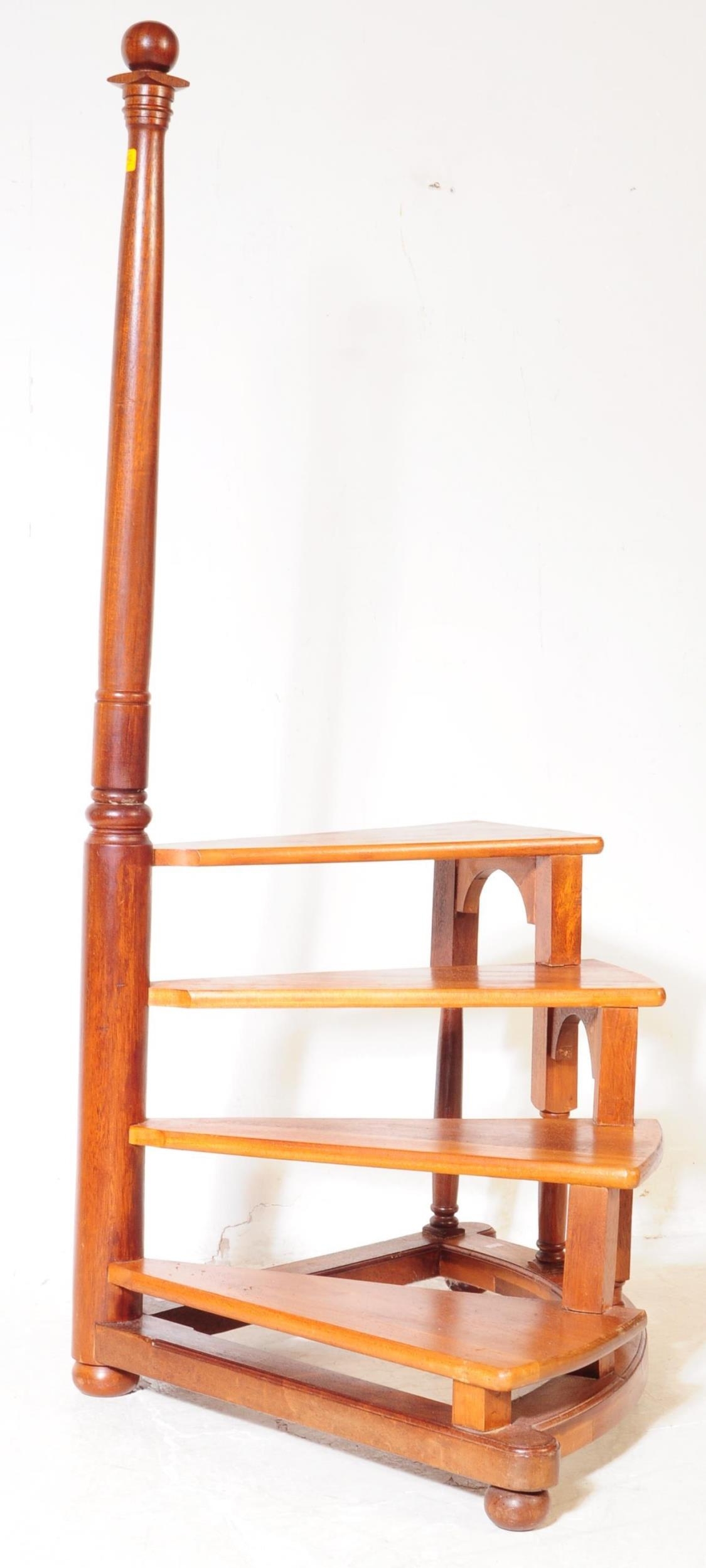 A 19th century revival mahogany set of library steps. Turned column with spindle gallery rails having a series of three steps, final ball handle top. Measures approx. 141cm x 63cm x 63cm