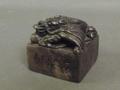 A square Chinese soapstone seal carved with a dragon to top and calligraphy to sides, 2¼' wide
