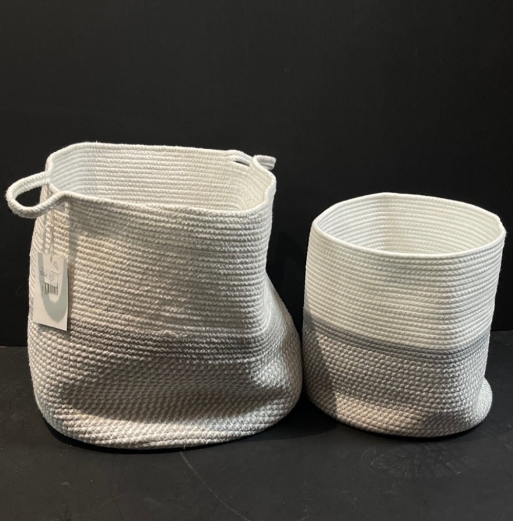 XMAS GIFTING IDEAS! -TWO handmade recycled cotton collection handled laundry bags - largest 40cm tall x 40cm diameter approx