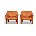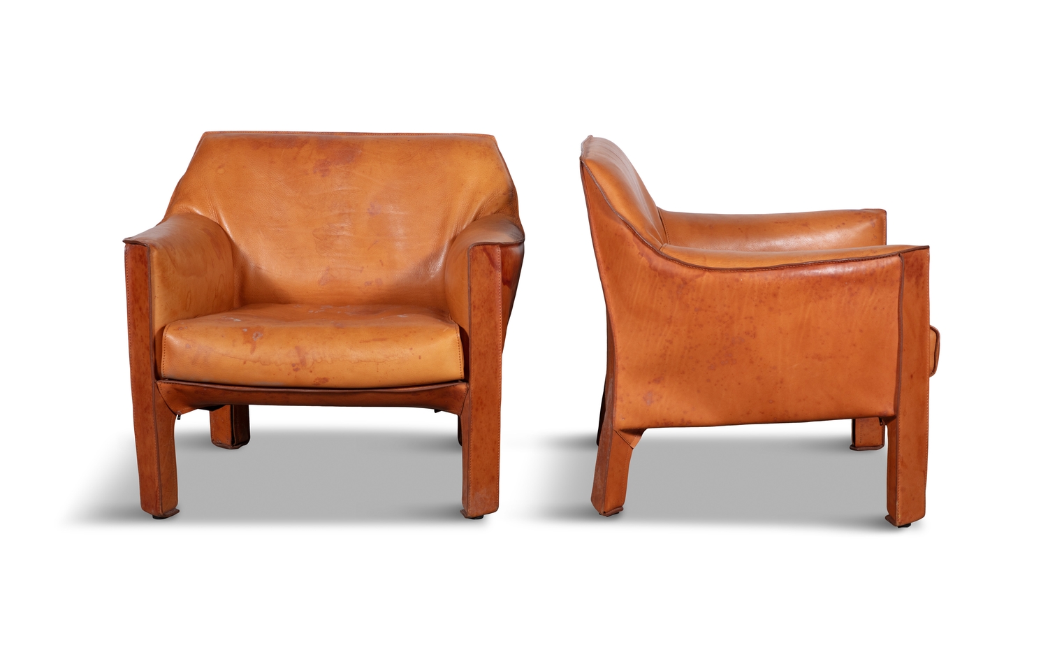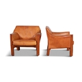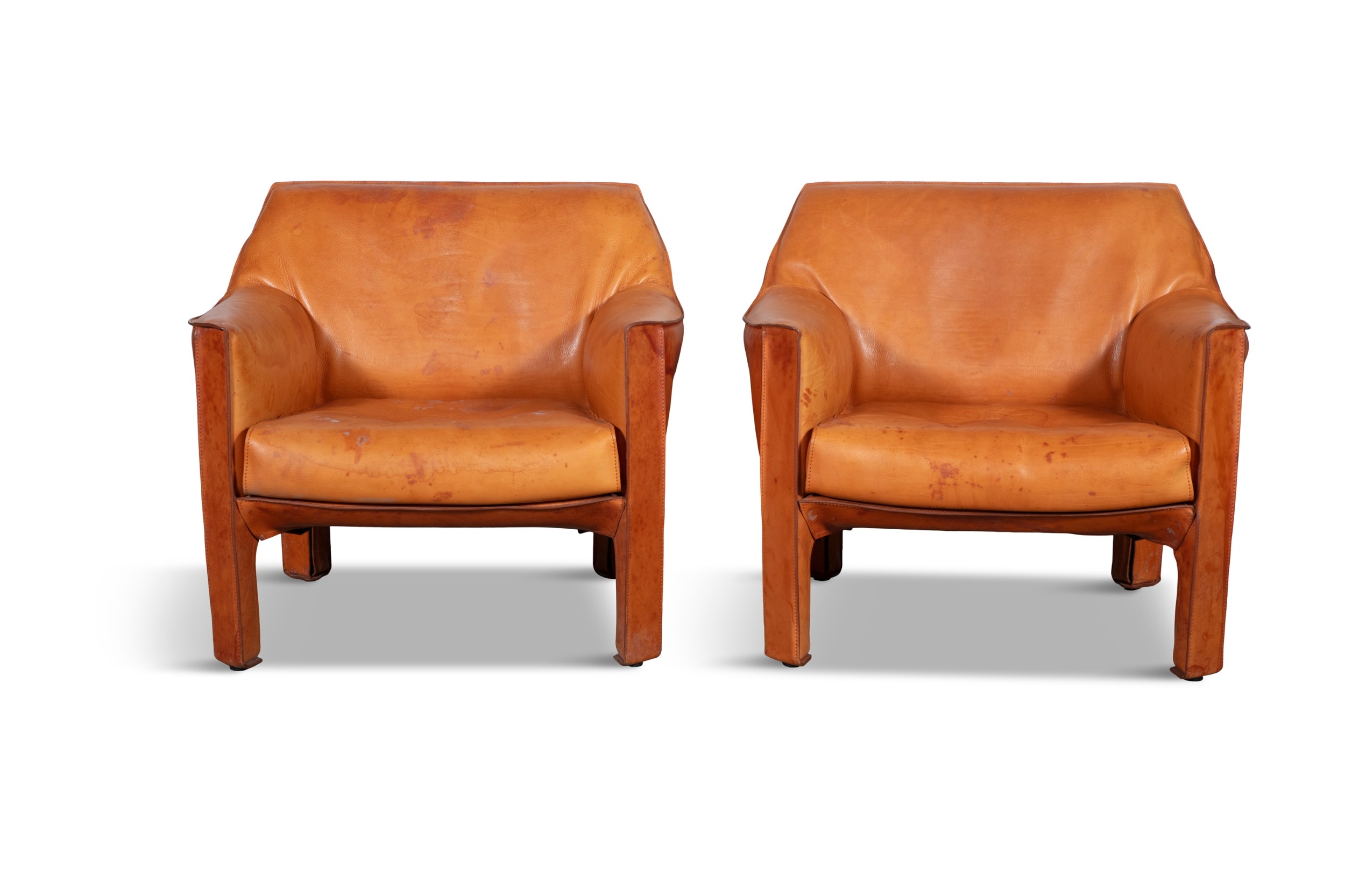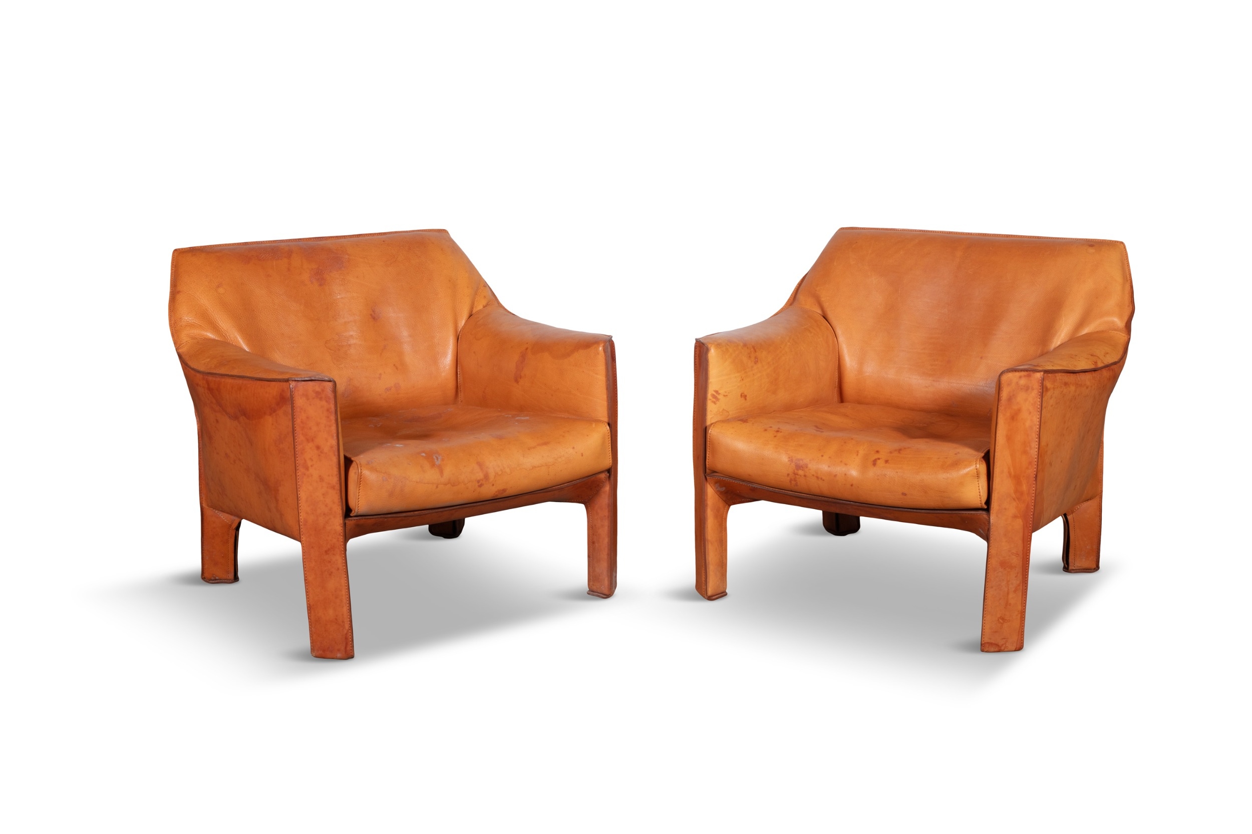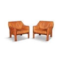 MARIO BELLINI (B.1935) A pair of Cab 415 brown leather armchairs by Mario Bellini for Cassina, 90 x 71 x 80cm (h)