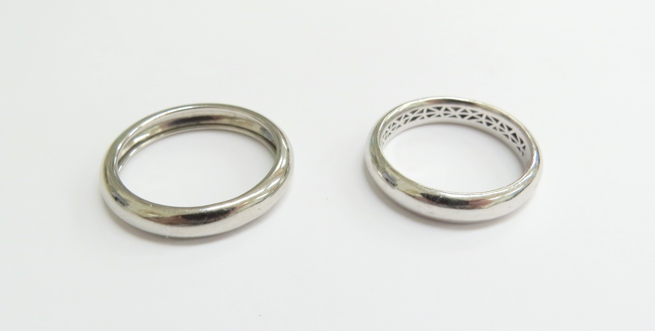 Two platinum bands, sizes Q/R and O, 5g