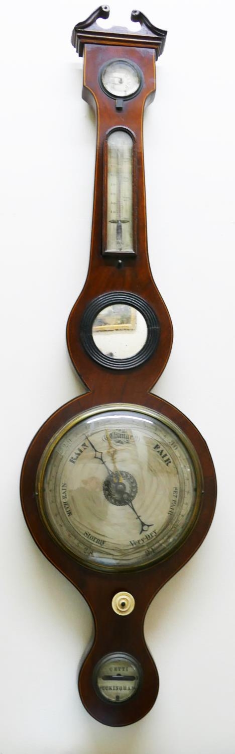 A 19th century mahogany wheel barometer by Cetti of Buckingham, 96.5cm long