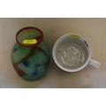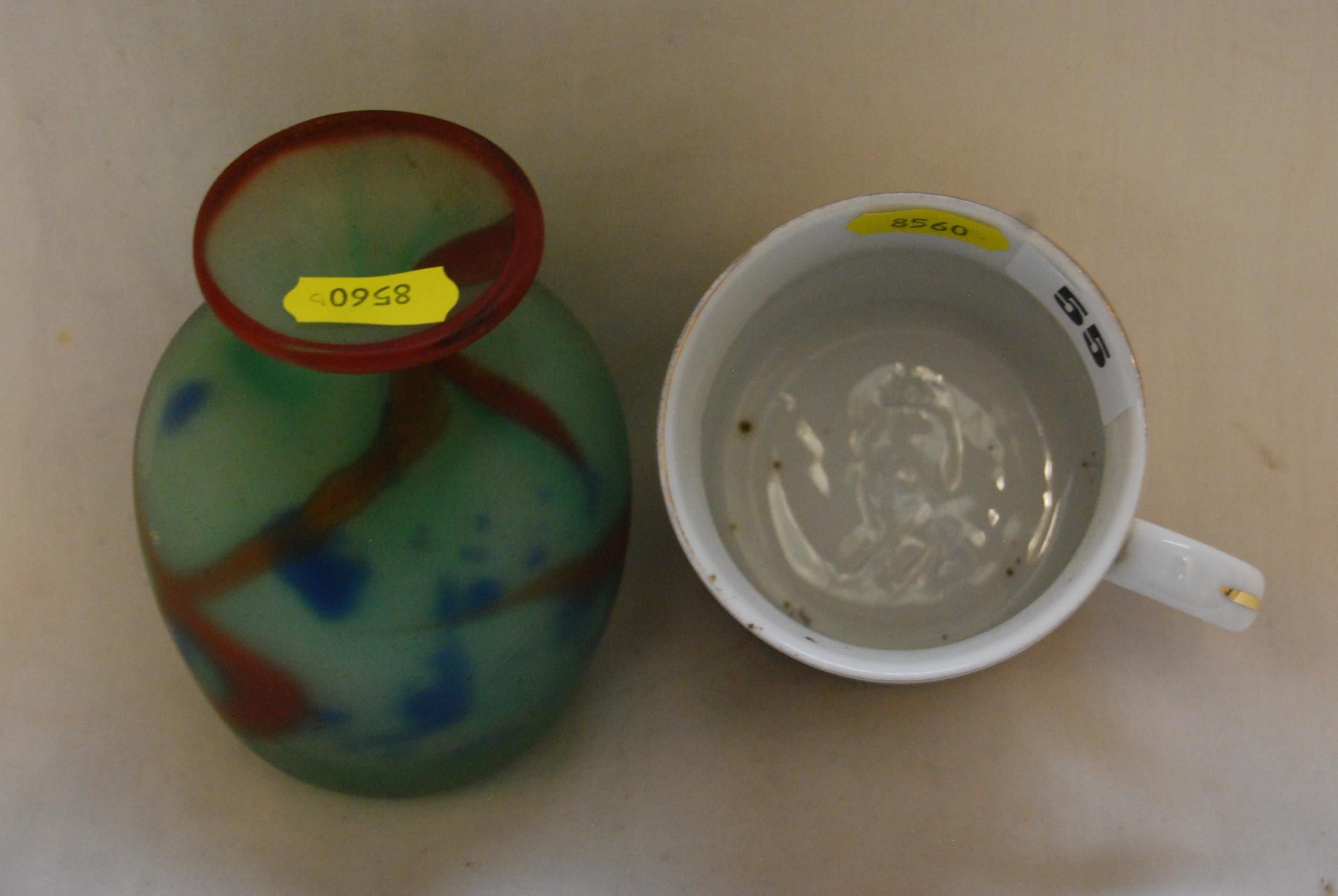 MDINA GLASS BUD VASE, 11CM AND 1902 LITHOPANE ALBERT COMMEMORATIVE MUG