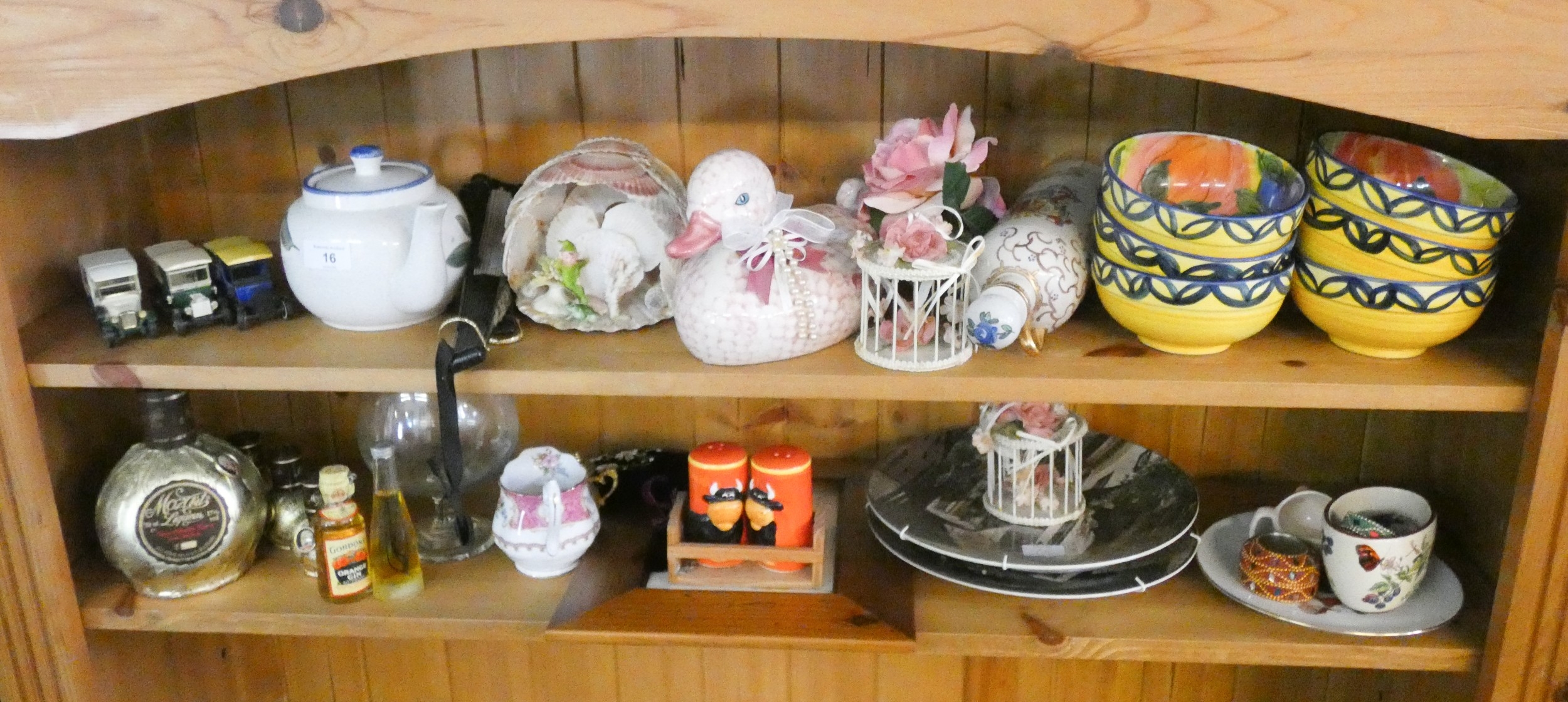 Two Doulton plates together with assorted china, three matchbox toys, a liquor set and other assorted china