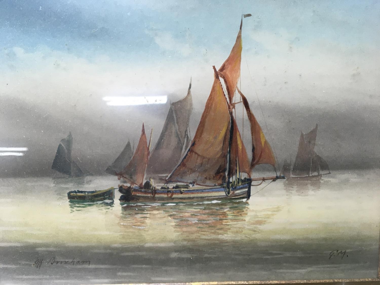 A collection of pictures and prints including a watercolour depicting a sailing boat of Burnham. (a lot) NO RESERVE