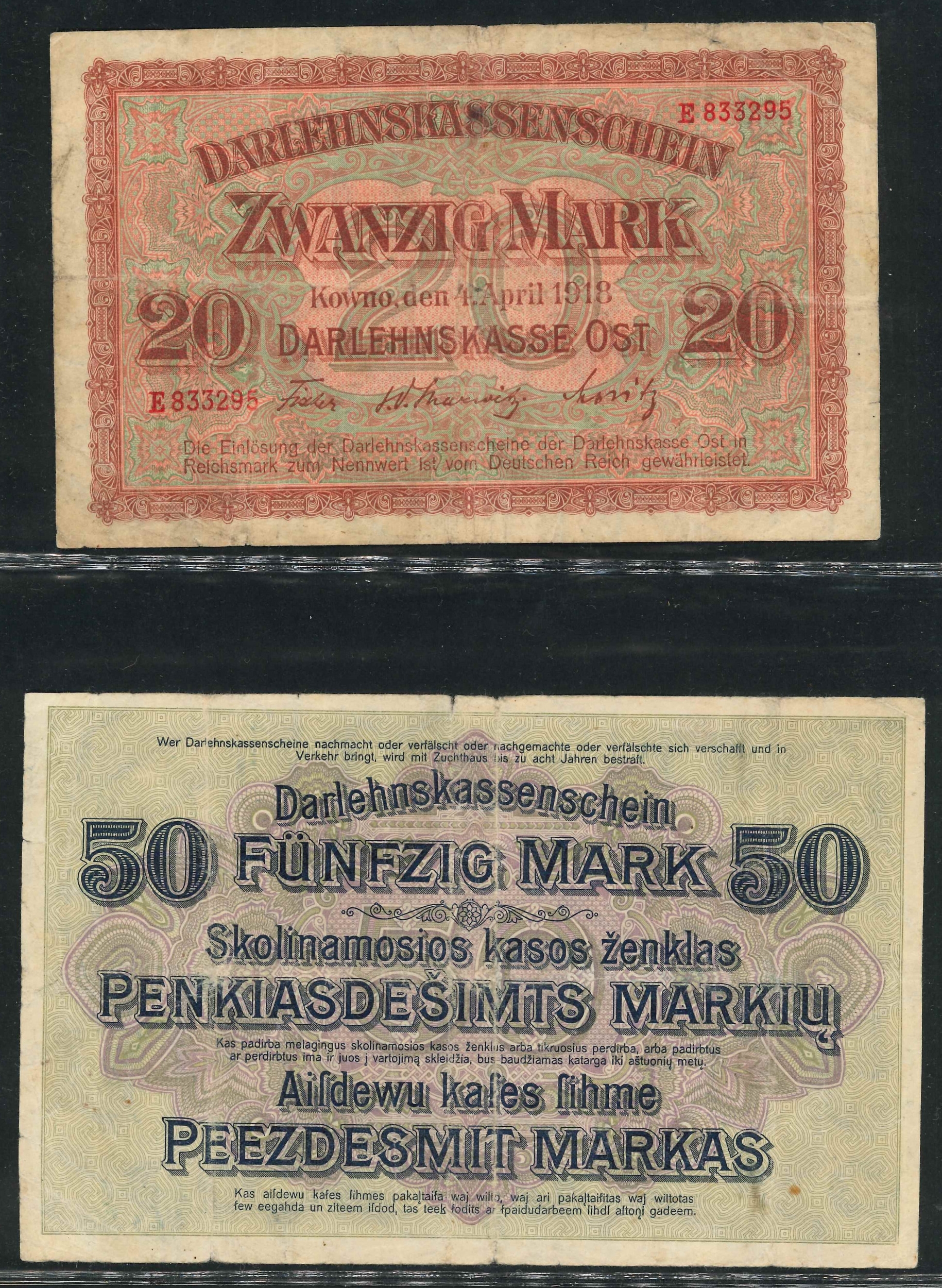 Banknotes; Lithuania (German Occupation); 1918 full set of e...