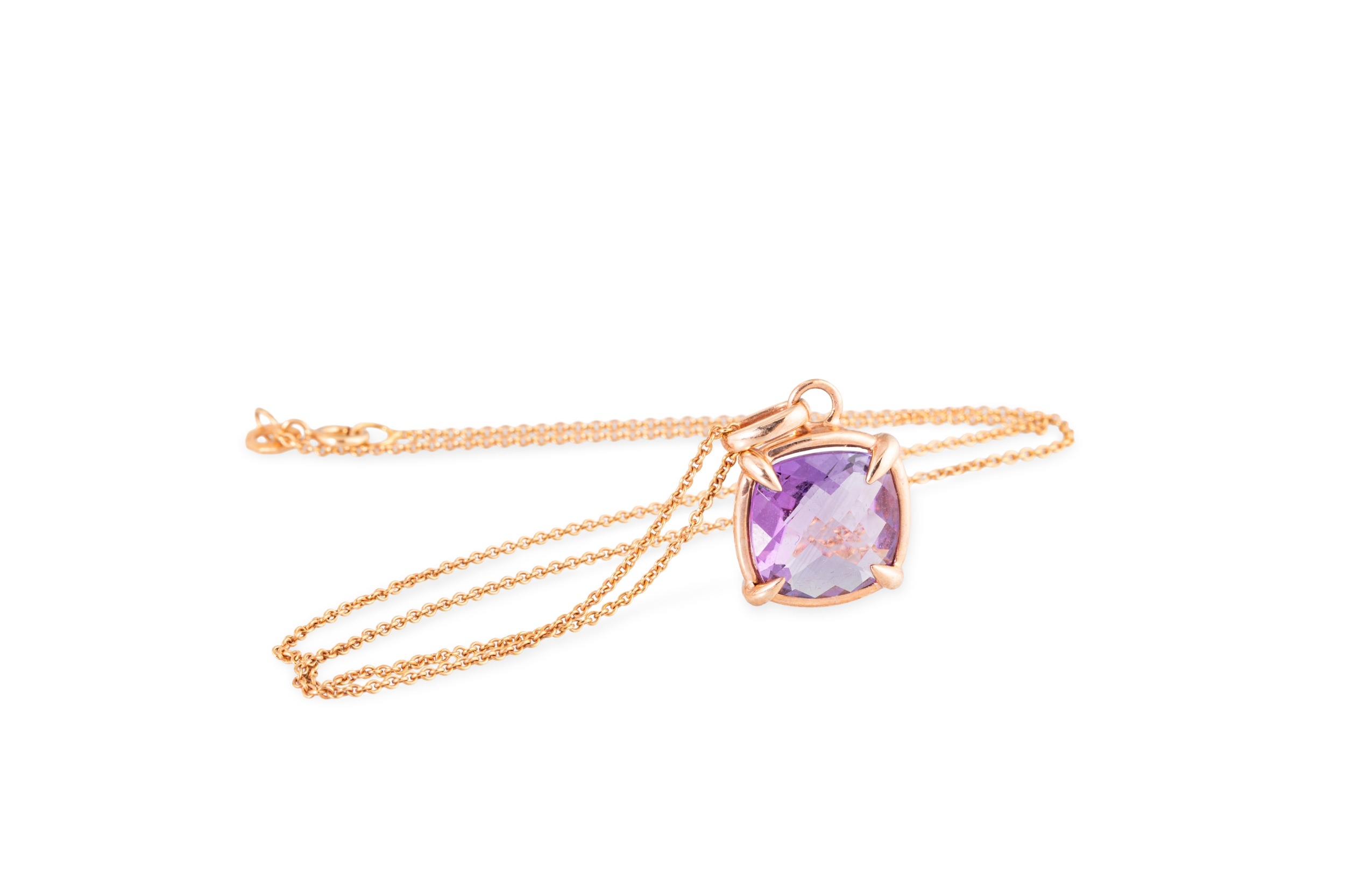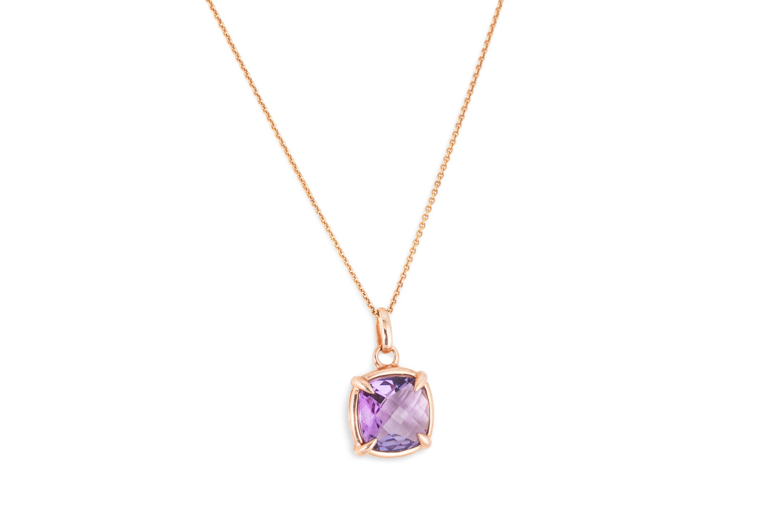 AN AMETHYST SET PENDANT, mounted in 9ct gold