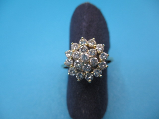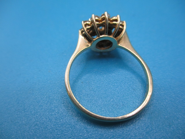 An 18ct yellow gold cluster ring, approx ring size ‘K+’, approx weight 2.6g, in useable pre-owned condition