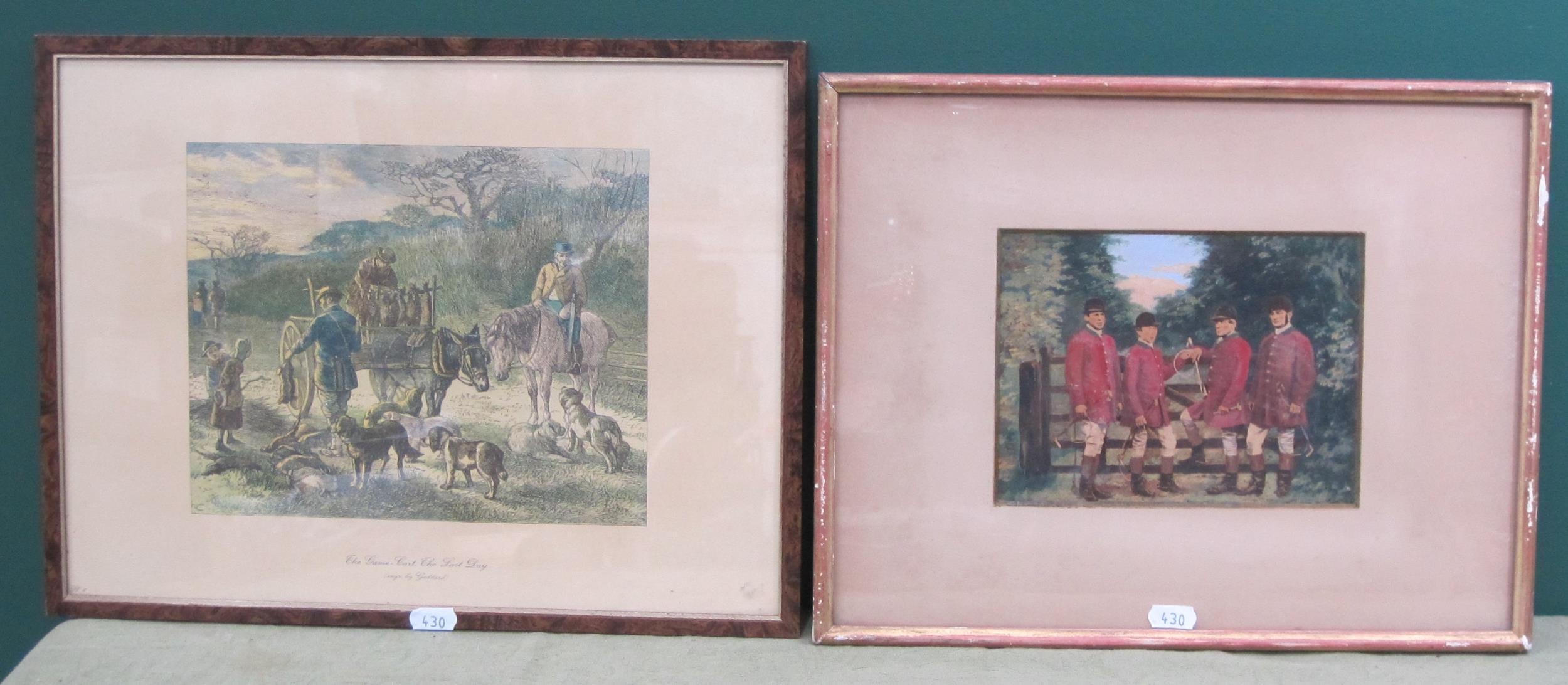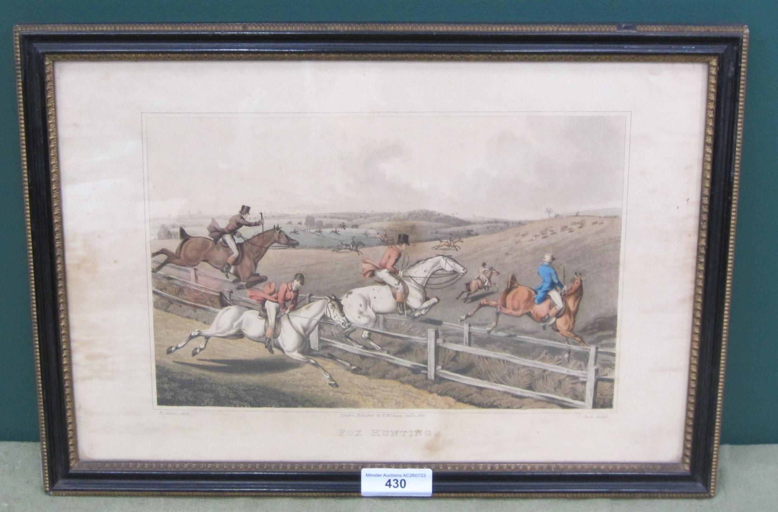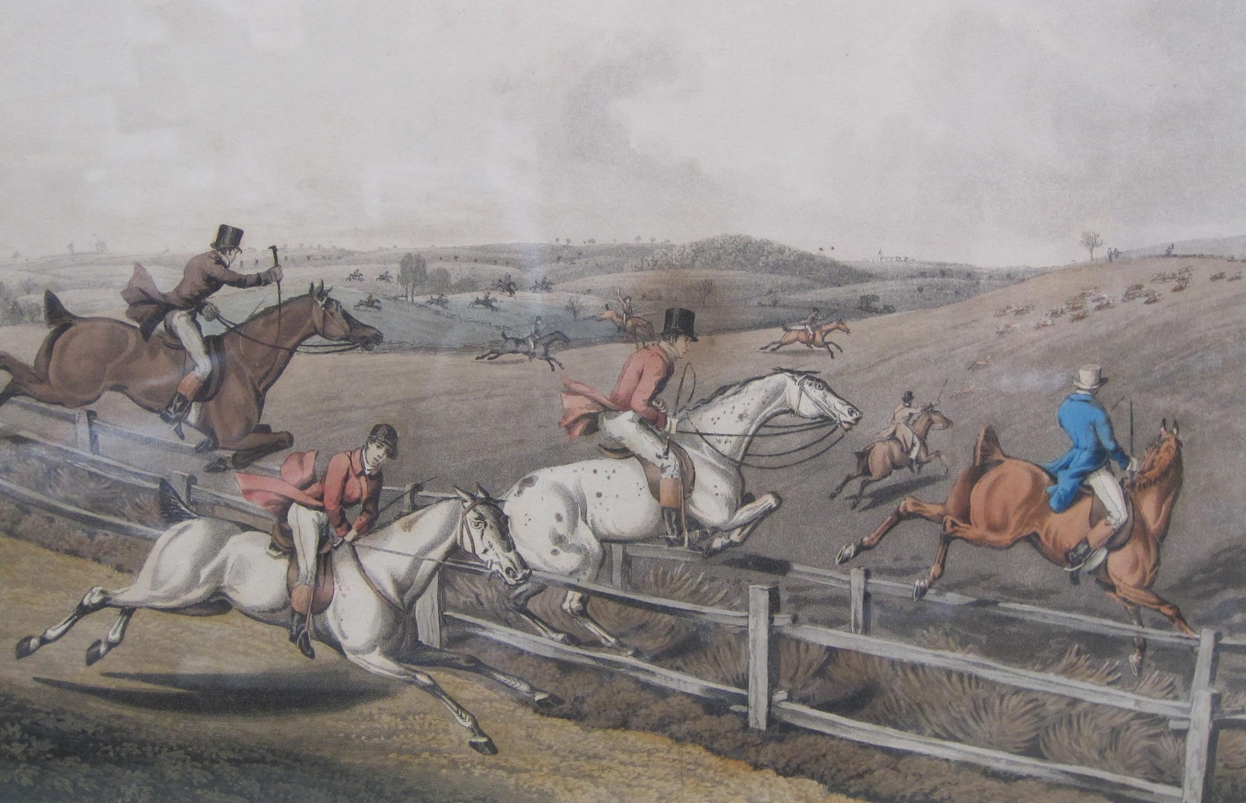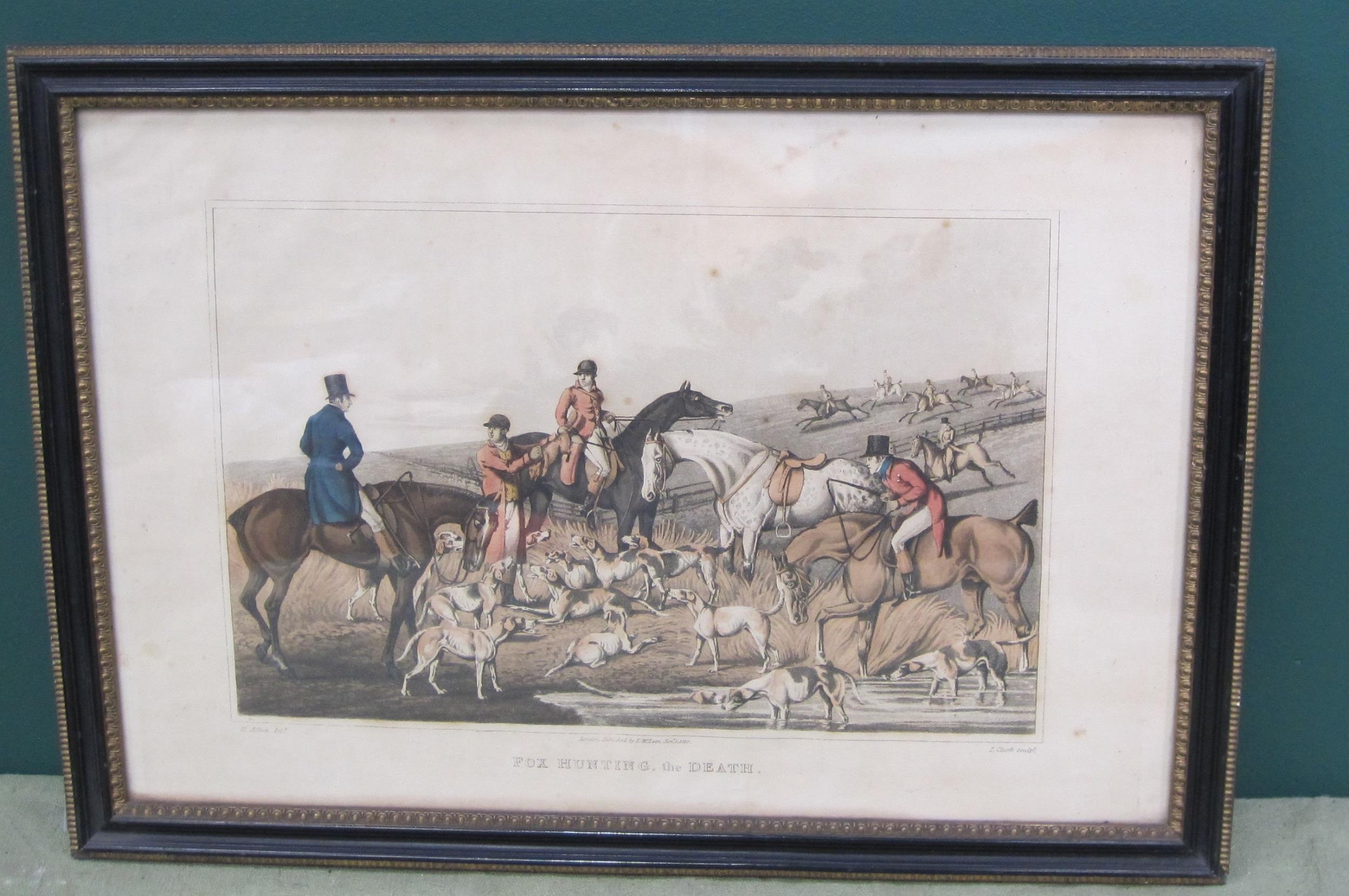 AFTER HENRY ALKEN. 'Fox Hunting'; and 'Fox Hunting, the Death', colour aquatints by J. Clark, 8 x 11½in; two (2); and a selection of prints and reproductions including a number of hunting and sporting subjects; (13)