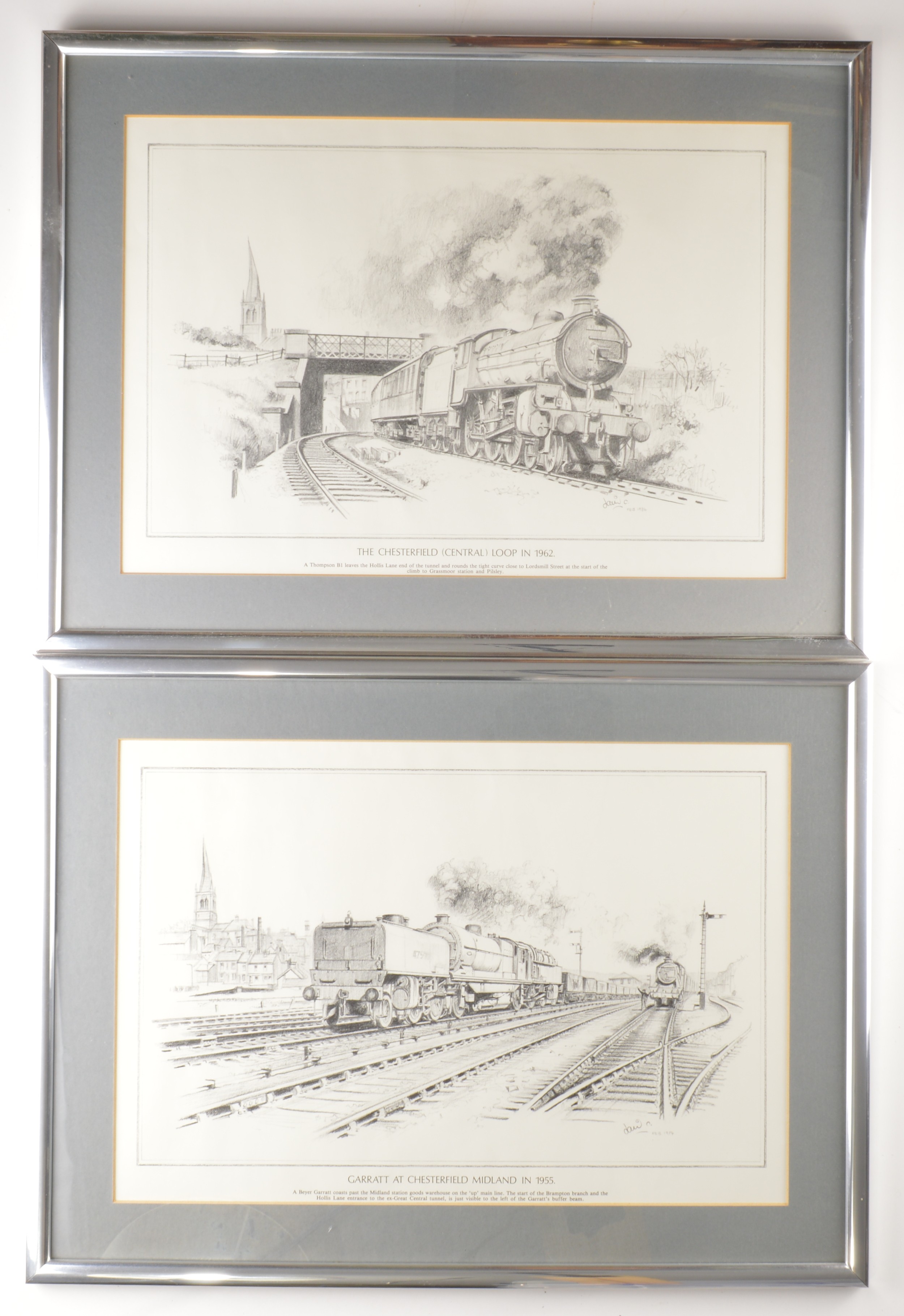 Print, a pair of well executed prints of pencil drawings show a B1 and a Garratt passing Chesterfield, both 19 x 14 1/4 inches. Shipping plan - C.