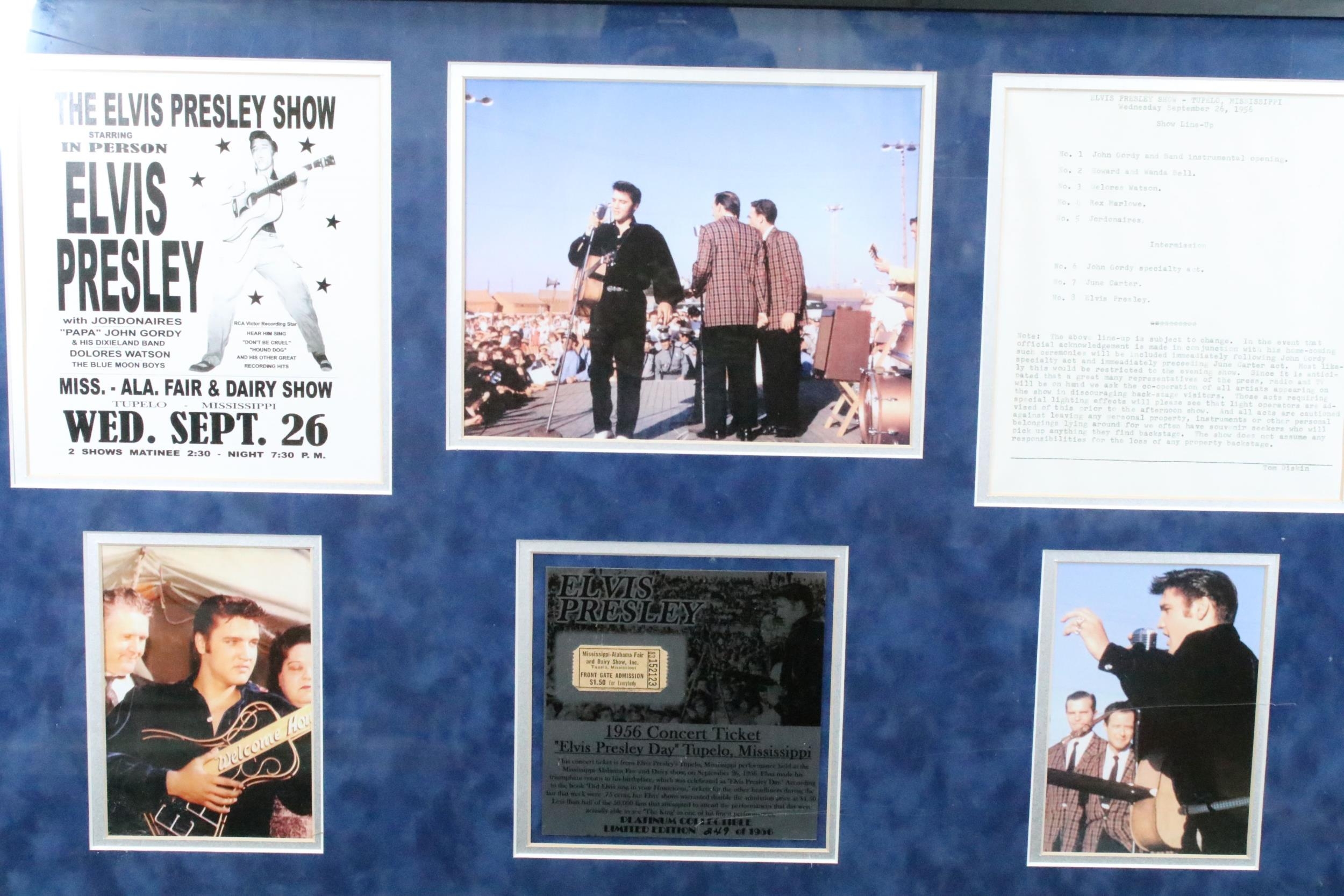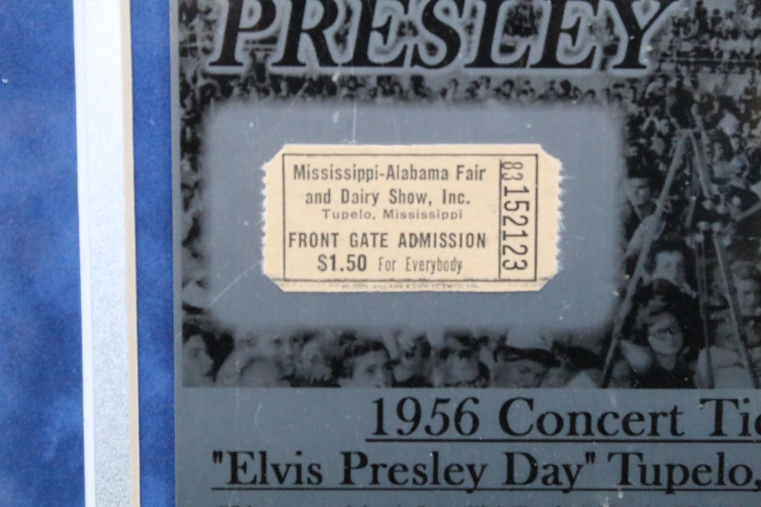 Memorabilia - Framed and glazed Elvis Presley ltd edition display containing an original ticket stub for his performance at the Mississippi Alabama Fair and Dairy Show on September 26th 1956.