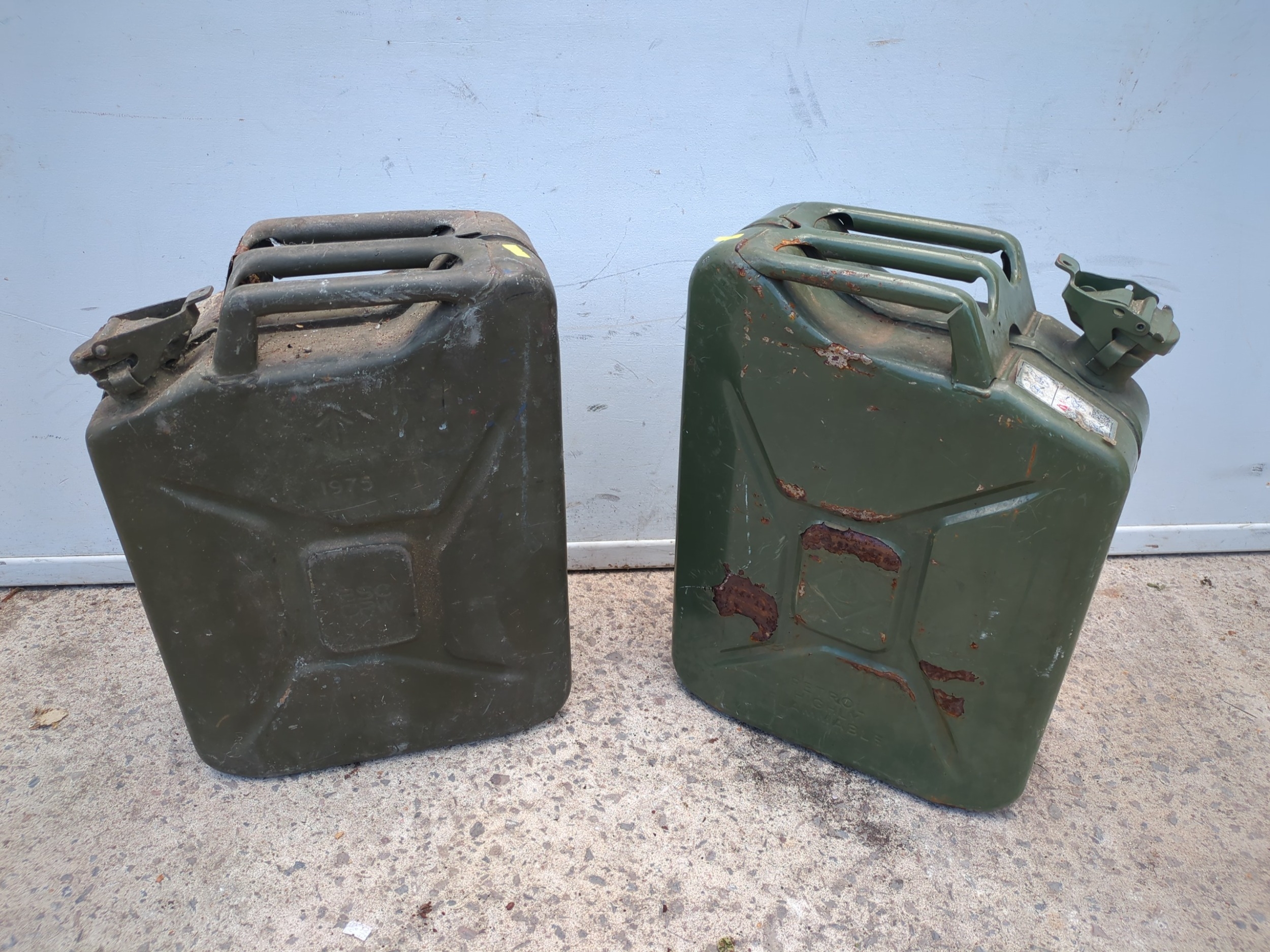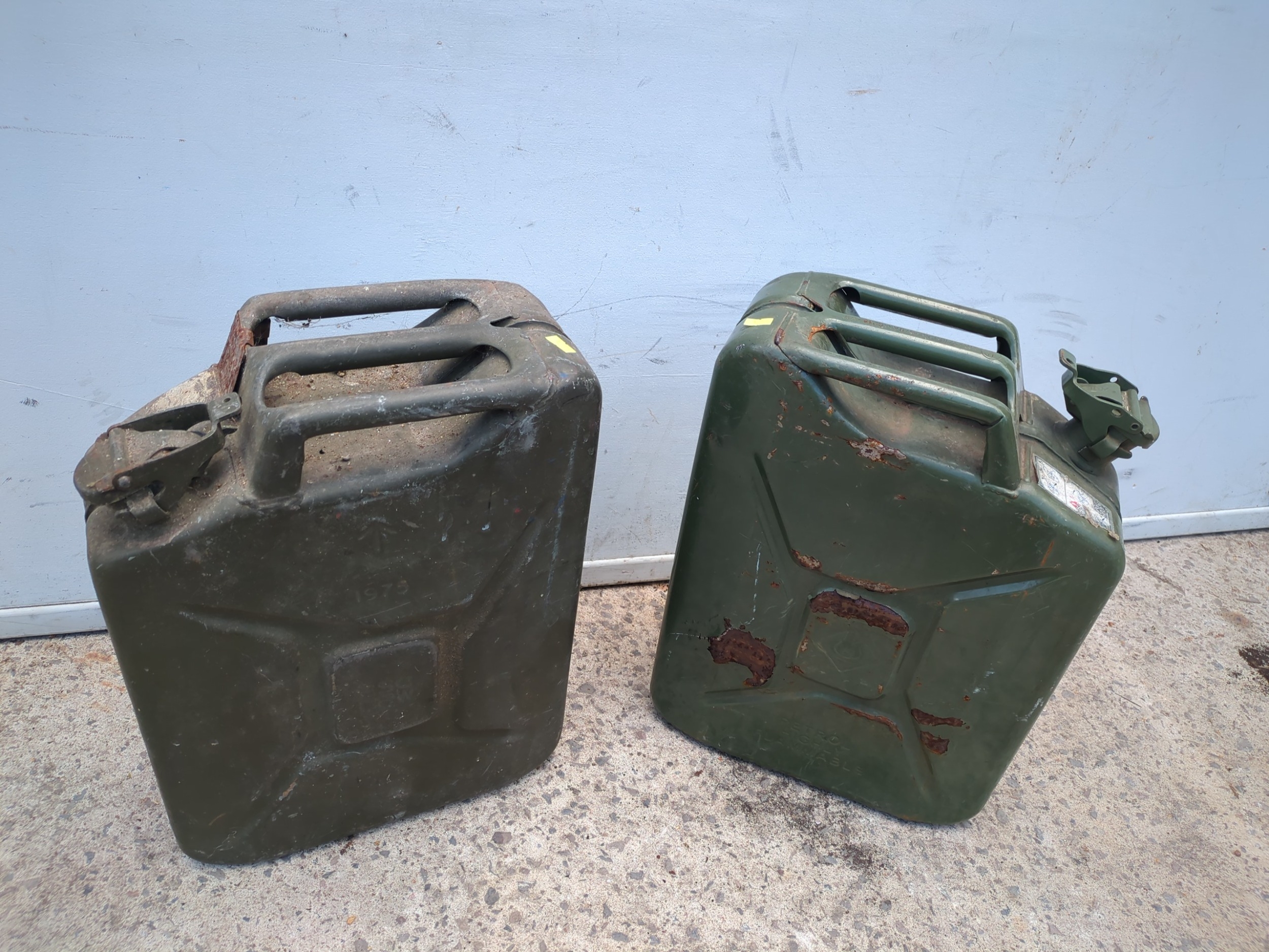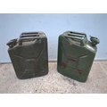 A pair of metal Jerry cans