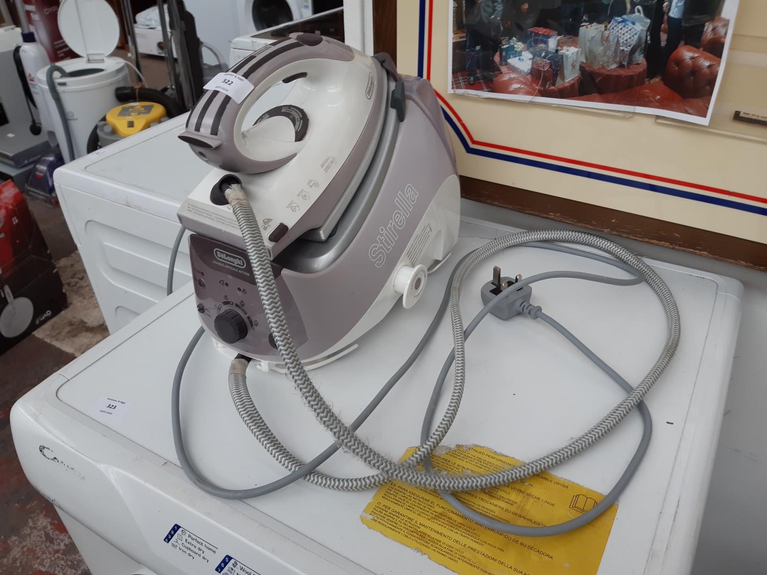 A PURPLE AND WHITE DELONGHI STIRELLA STEAM IRON STATION