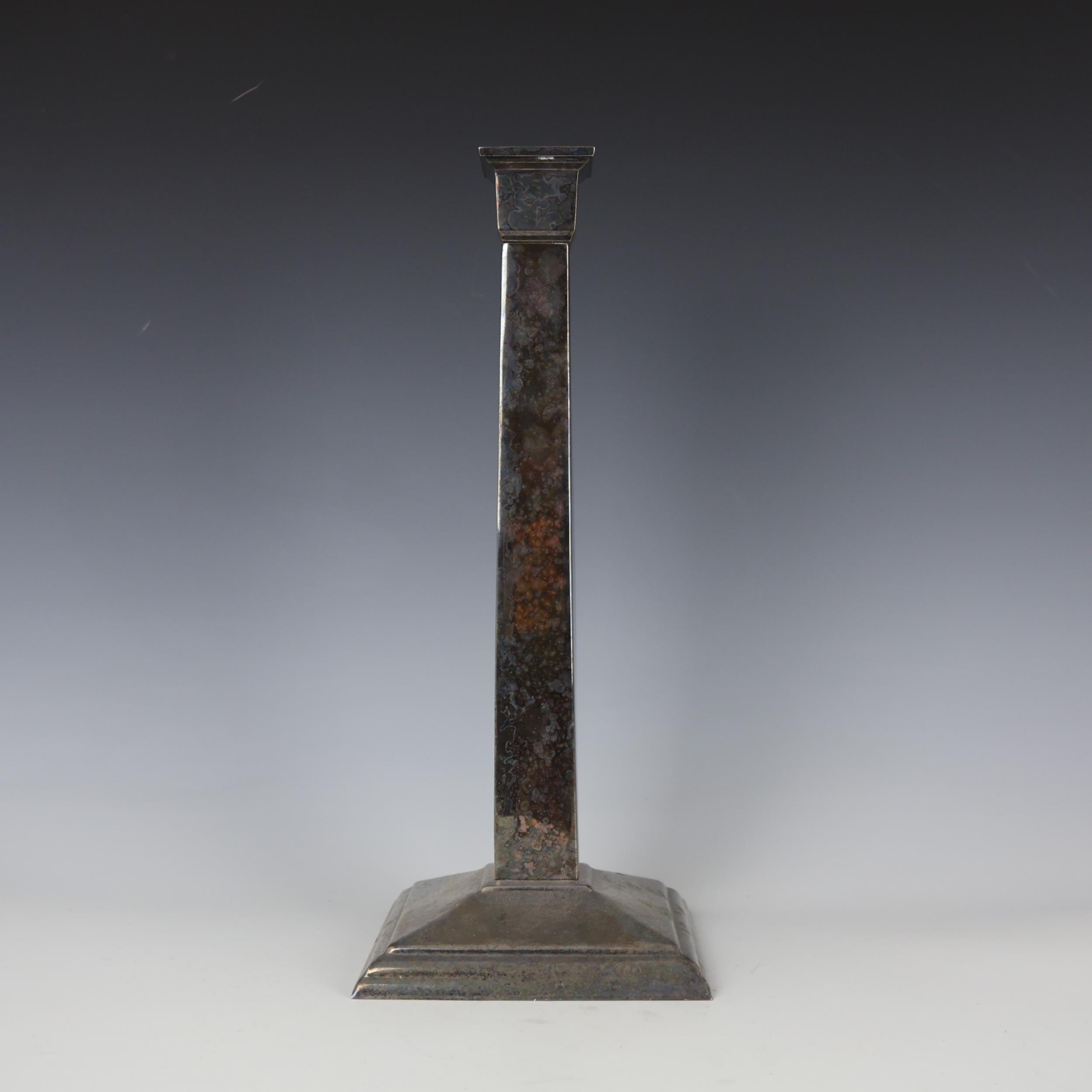 An Art Deco style silver plated candlestick, by Gunther Lambert, the squared tapering column above conforming base, with sticker to base, 46cm high