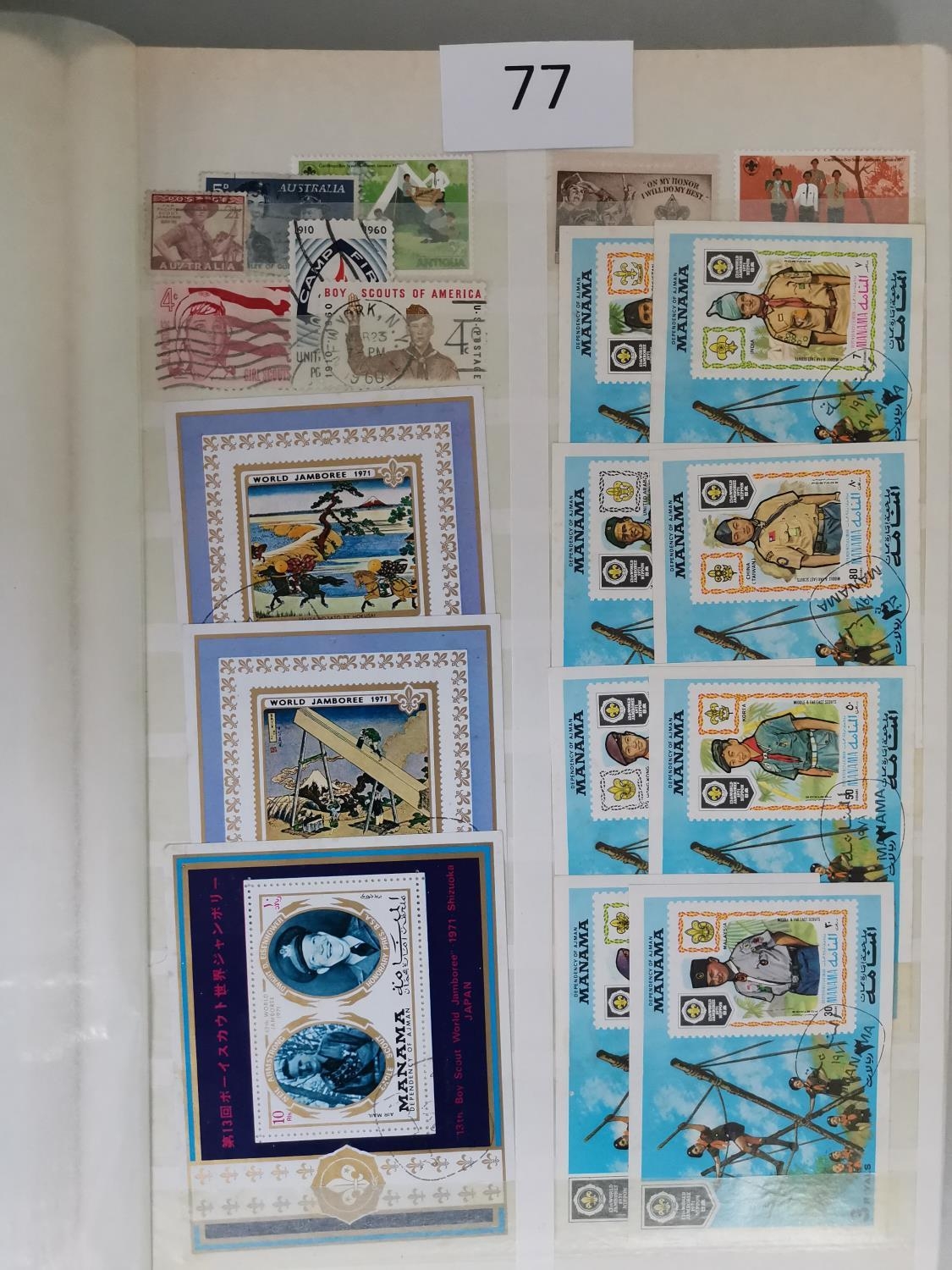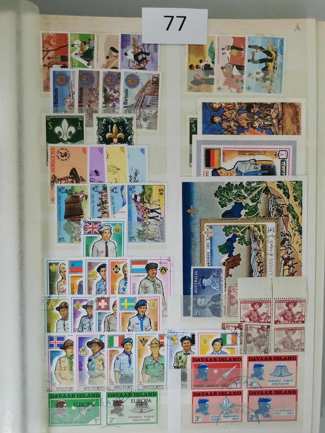 MIXED WORLD. SCOUTS THEMATICS. Mainly M or UM stock in stockbook and a further stockbook of other thematics incl. Space. (many 100's)
