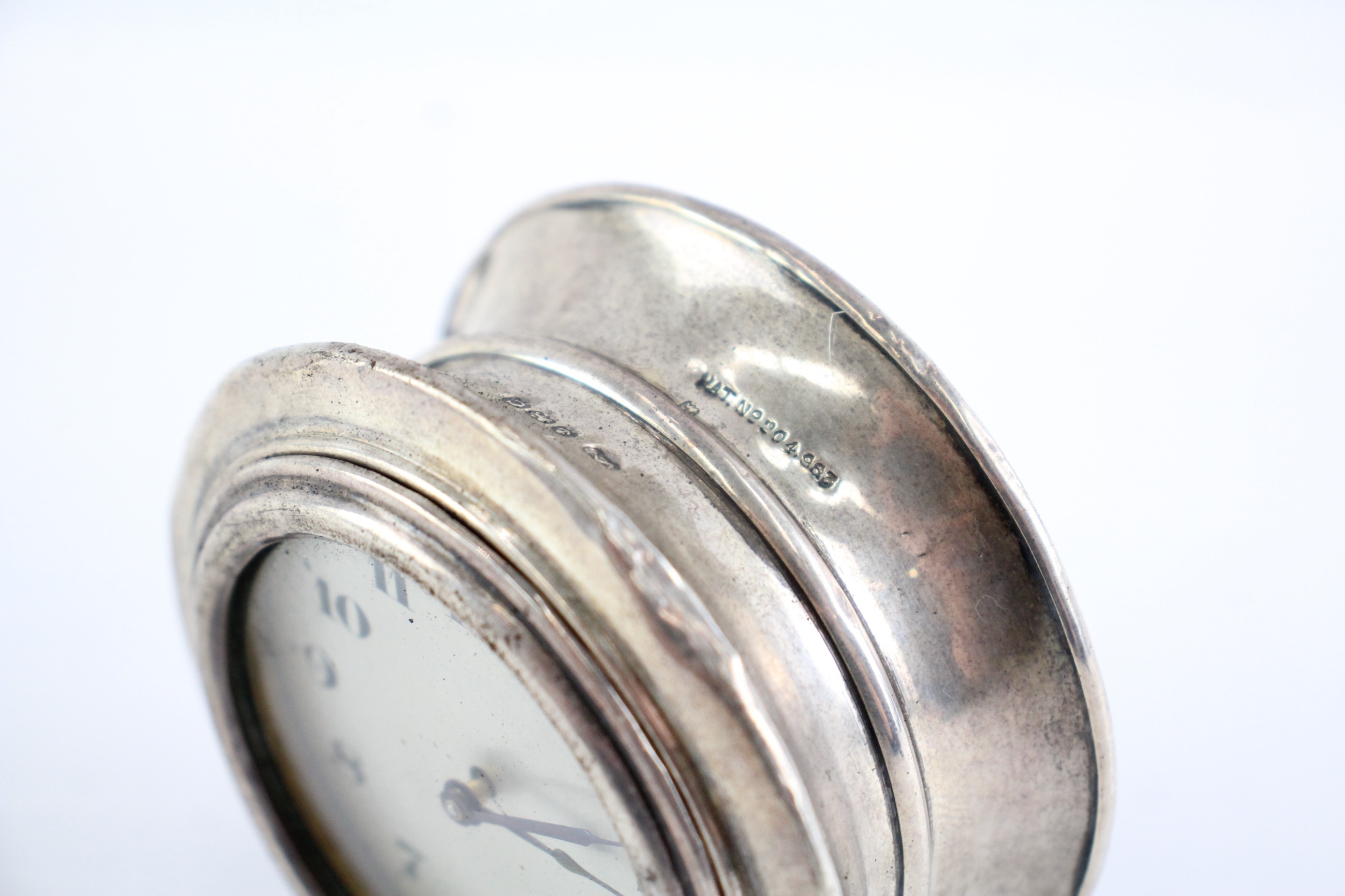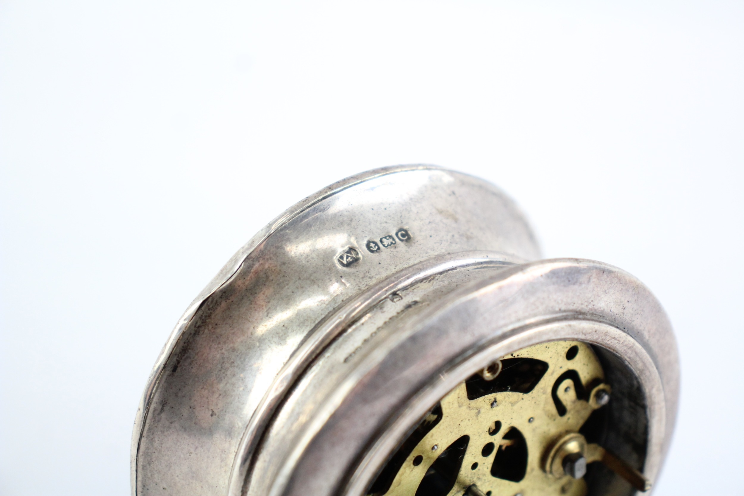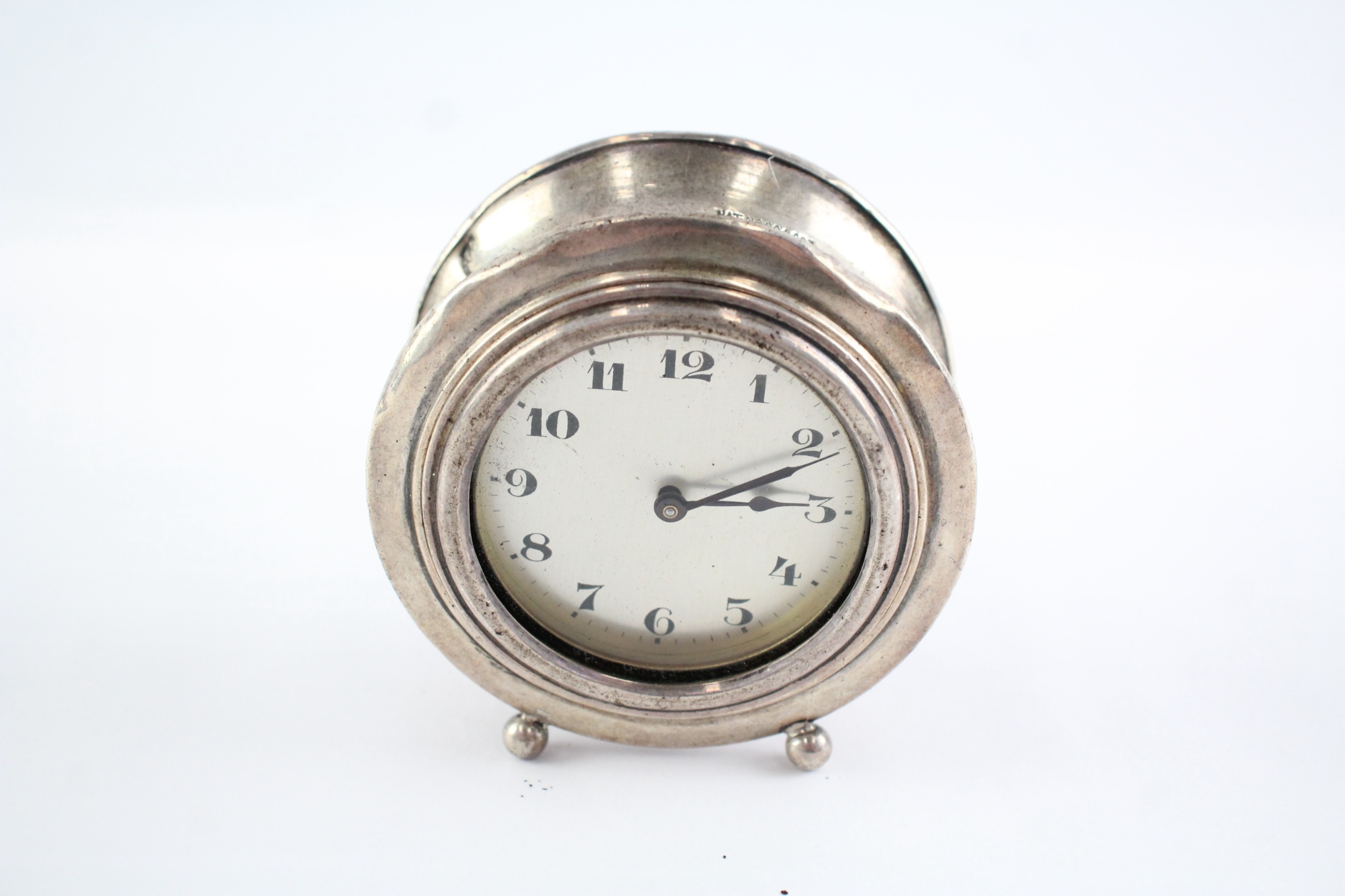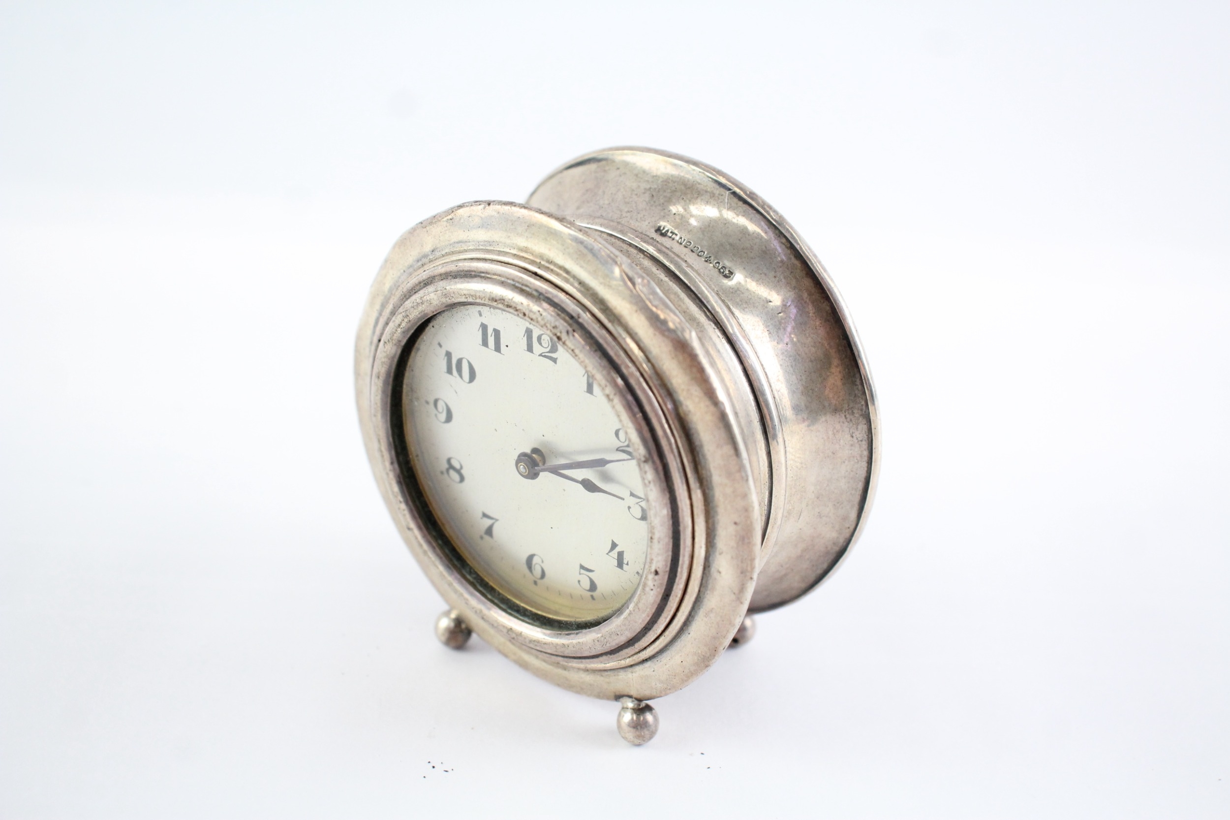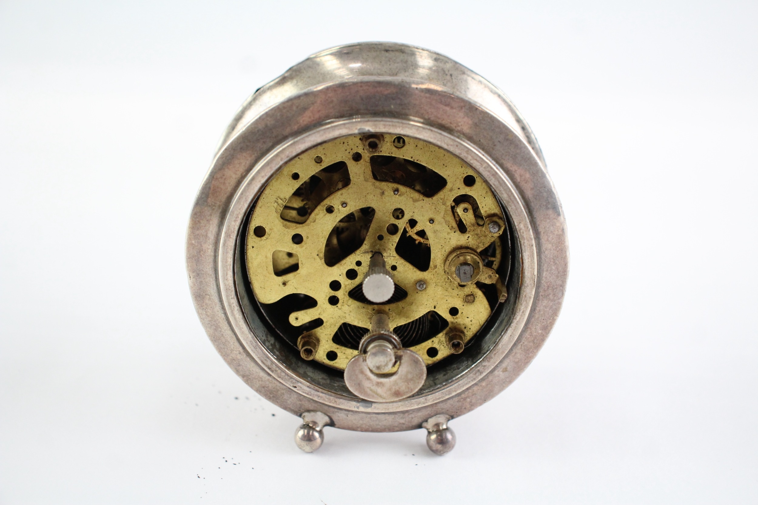 925 Silver Case Mechanical Desk Clock Hand-Wind WATCH RUNS