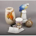 A small group of ceramics, to include Kathausen parrot, Clarice Cliff vase etc.