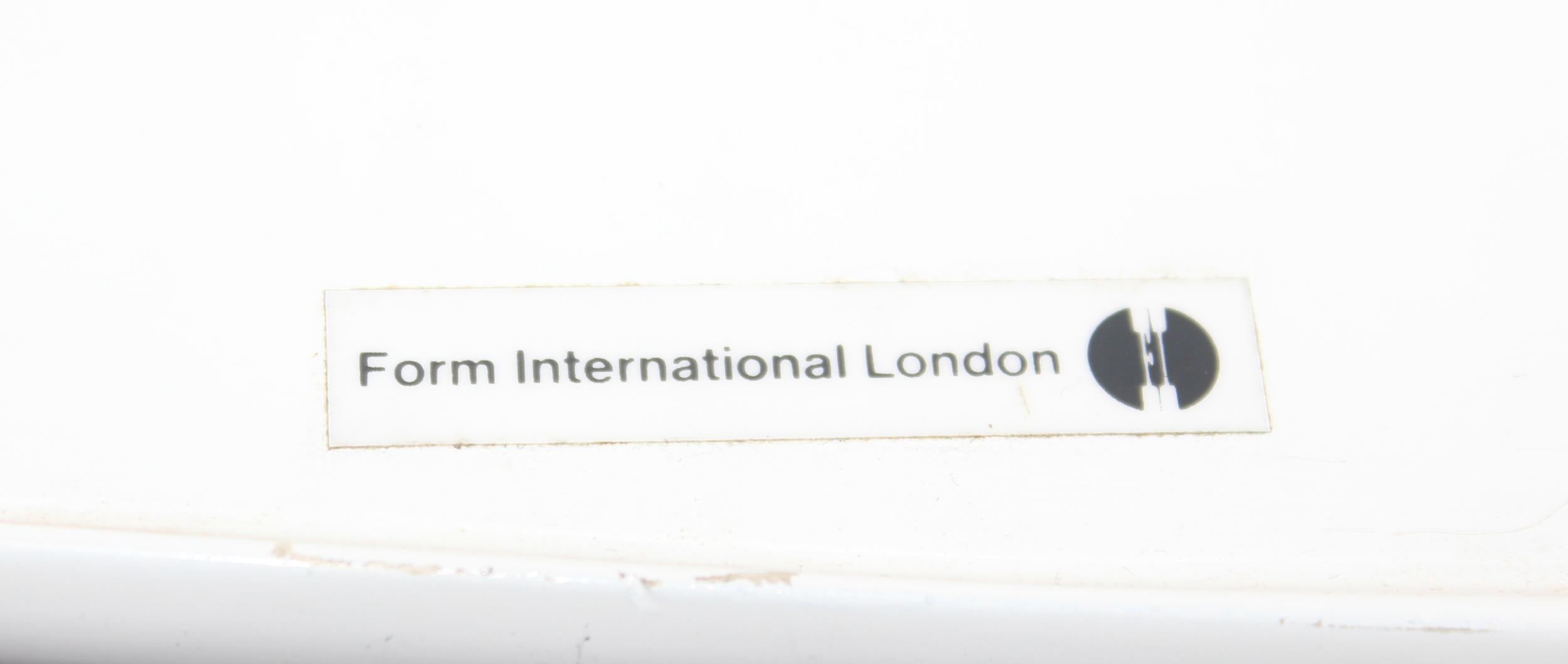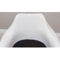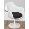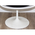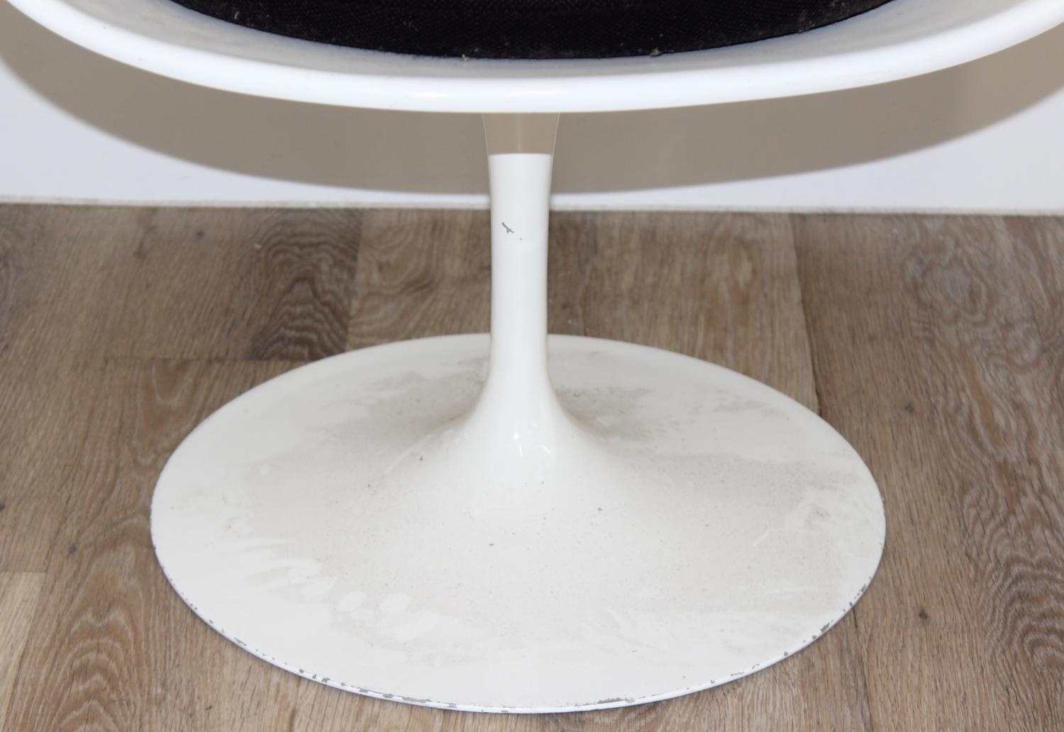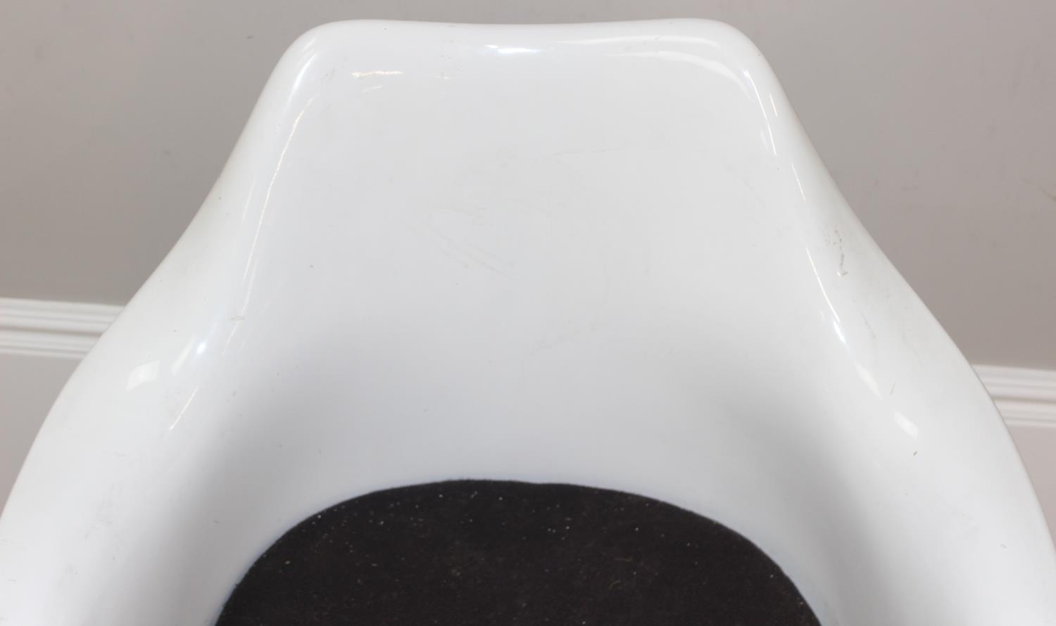 A retro style white tulip plastic moulded chair designed originally by Eero Saarinen, with label for Form International London, approx 64cm wide x 52cm deep x 79cm tall