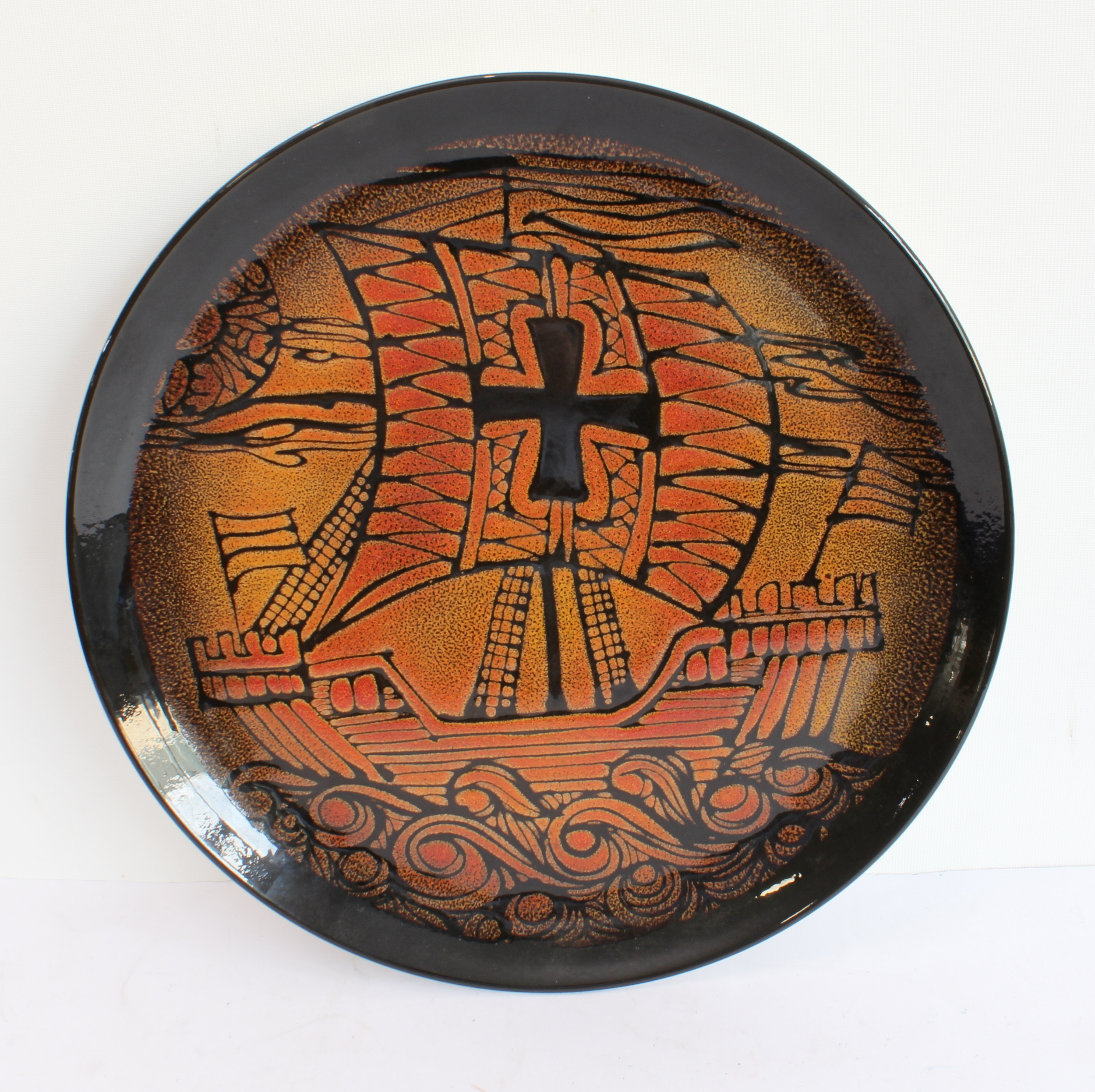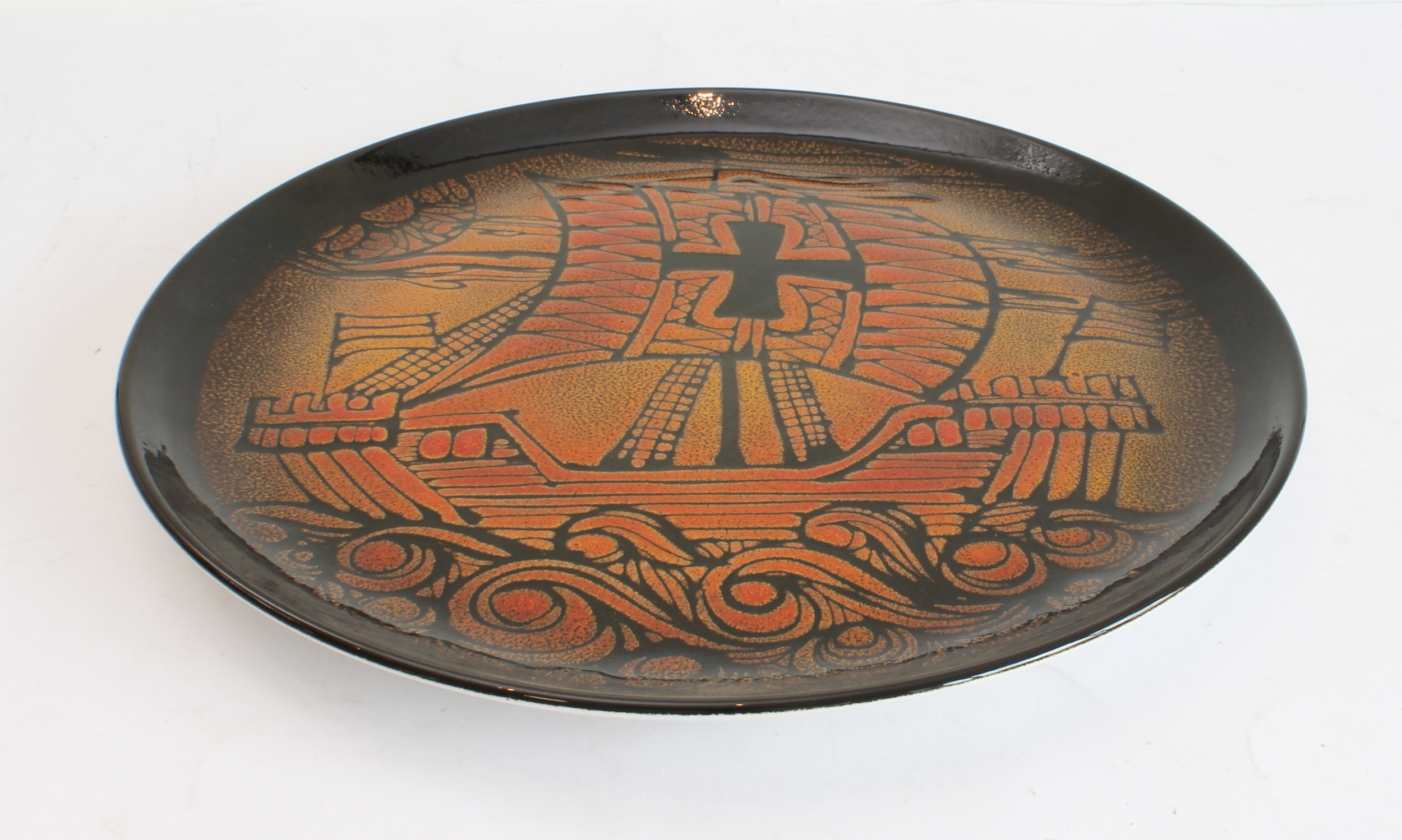 A wall-hanging Poole Pottery charger in the Aegean pattern (32.25 cm in diameter)