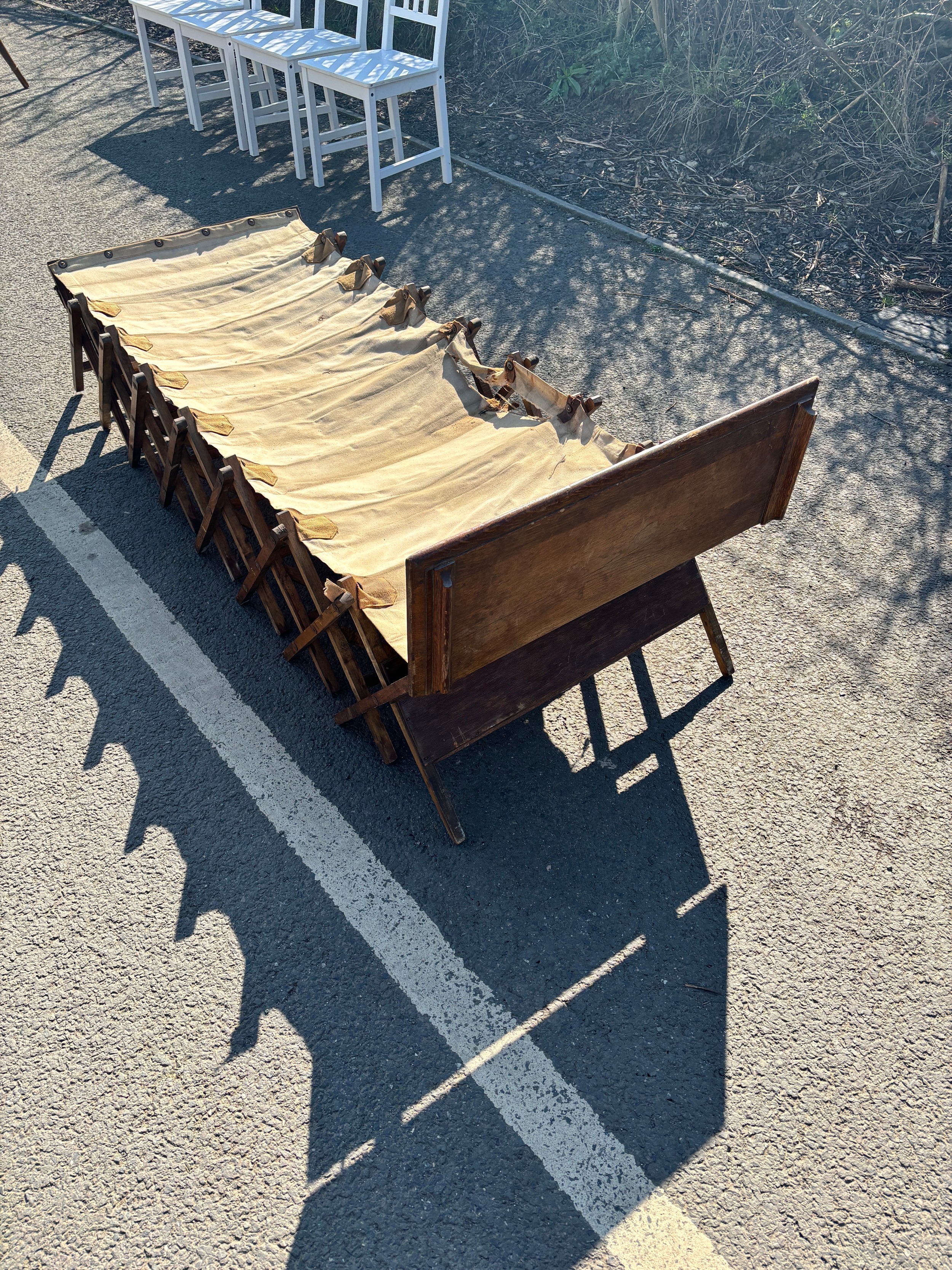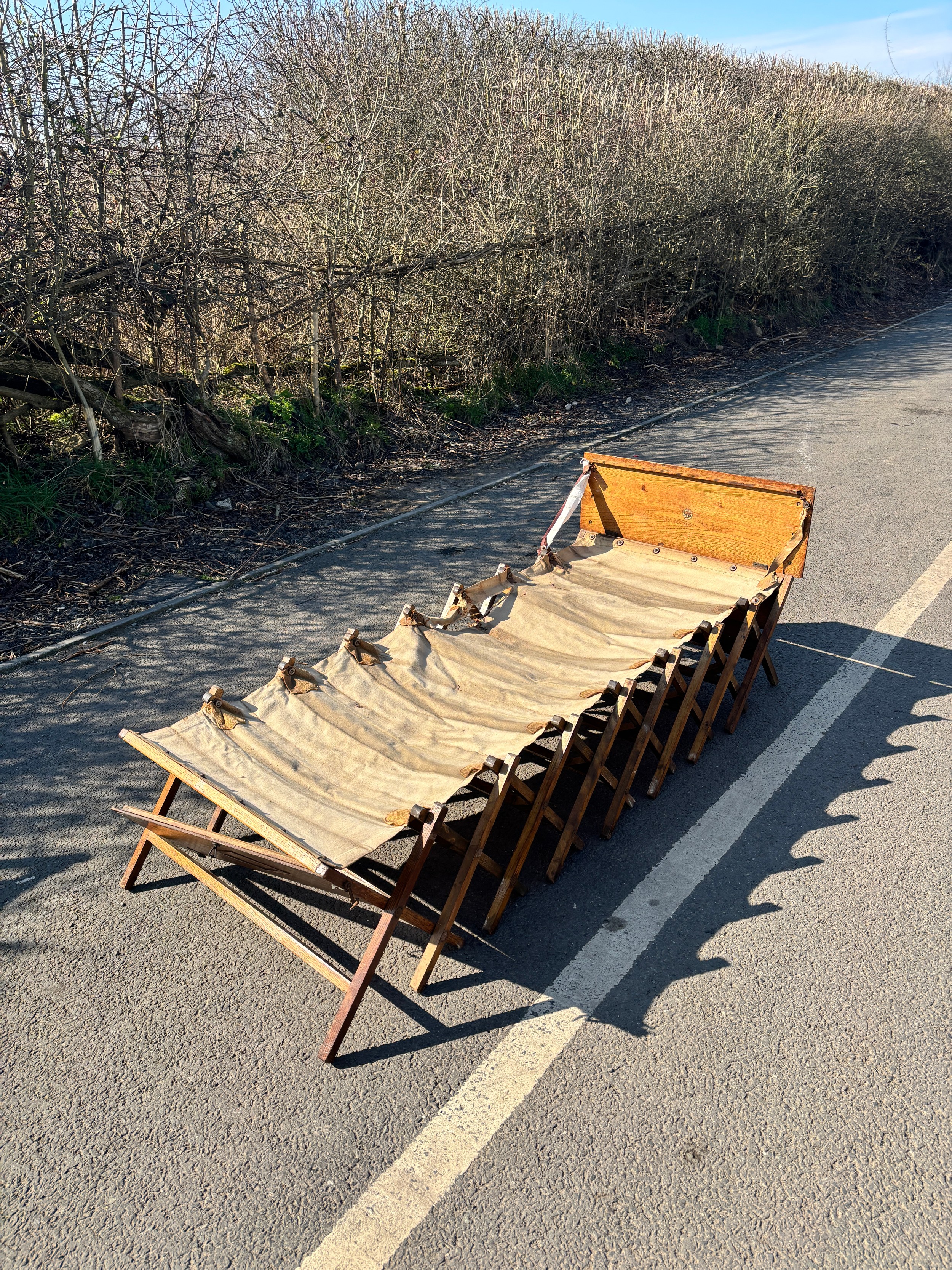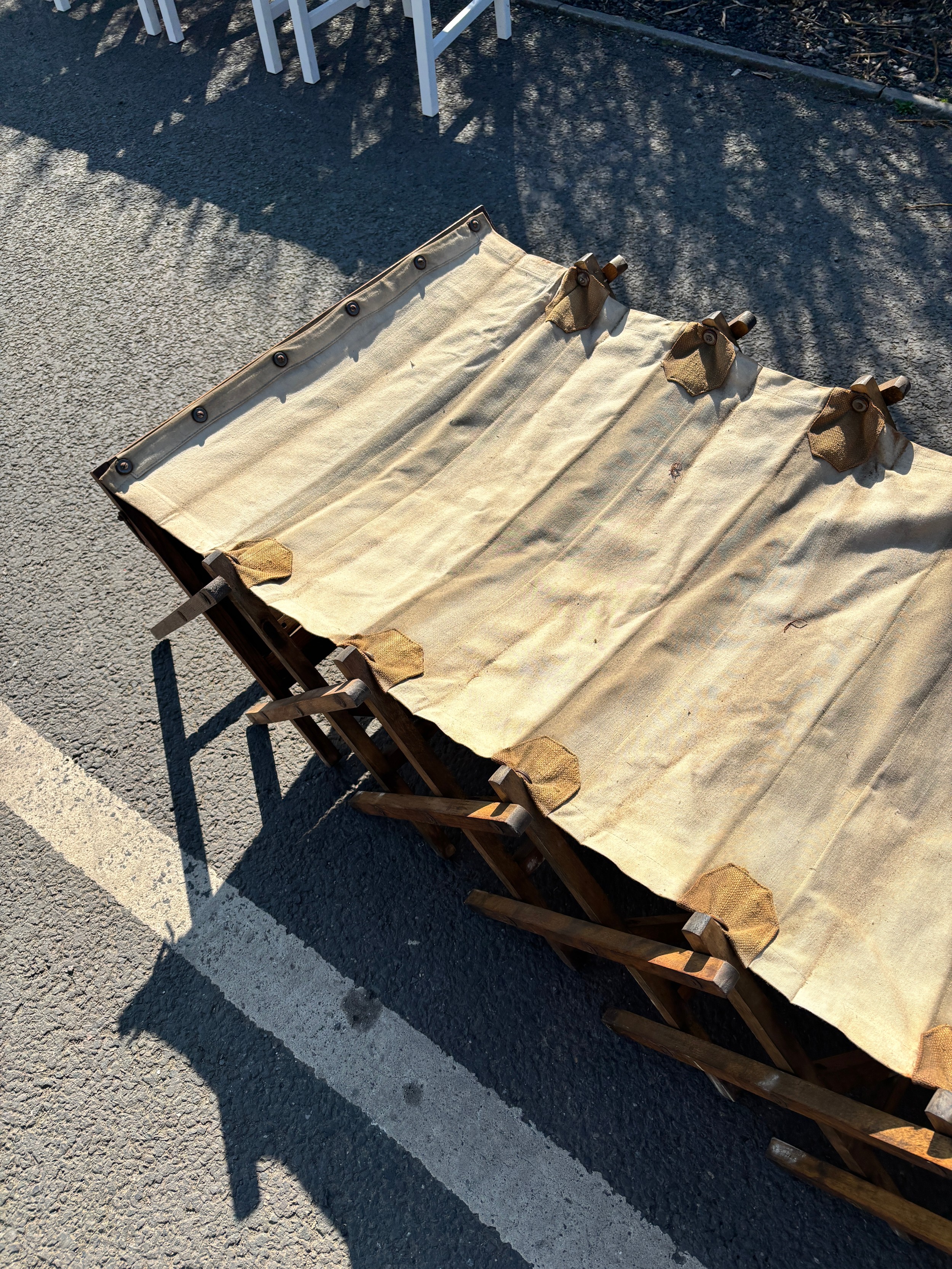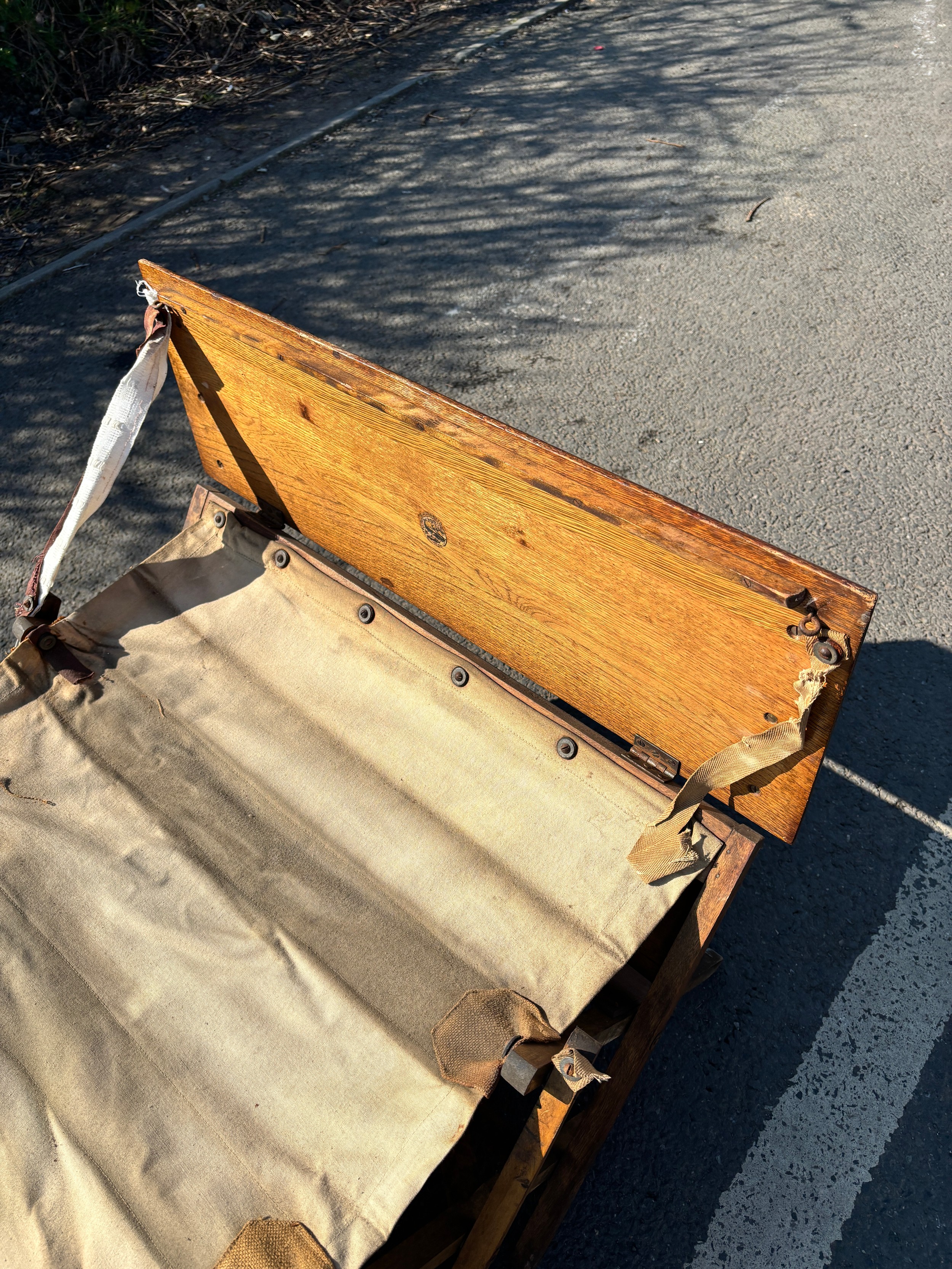 Military WW1 Campaign Officers Folding Bed Camp Bed Table by W&S Cabinetta Oak measures approximately 72 inches long x 29 wide x 22 tall